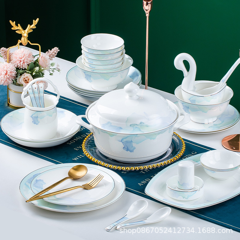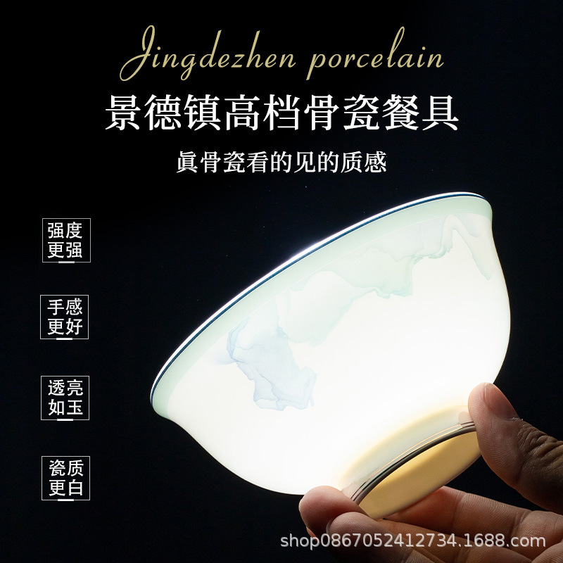 碗碟套装 家用中式高档景德镇骨瓷陶瓷中式餐具套装碗盘家用组合