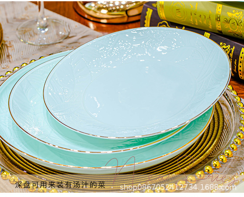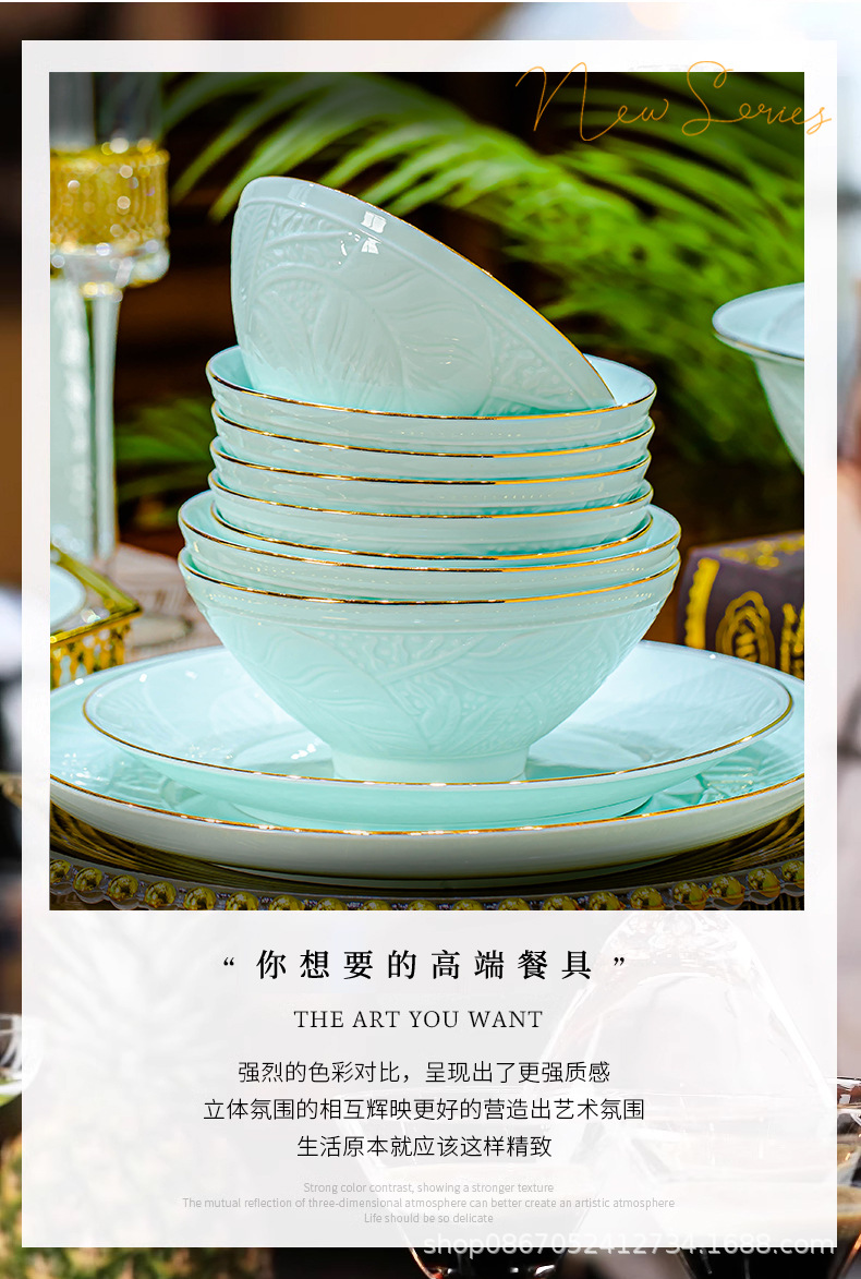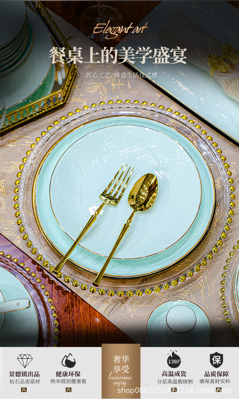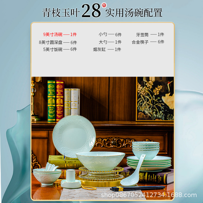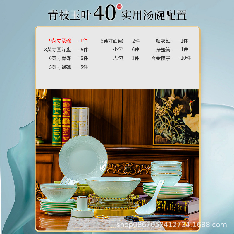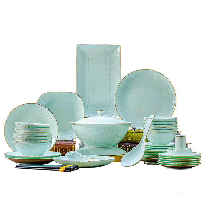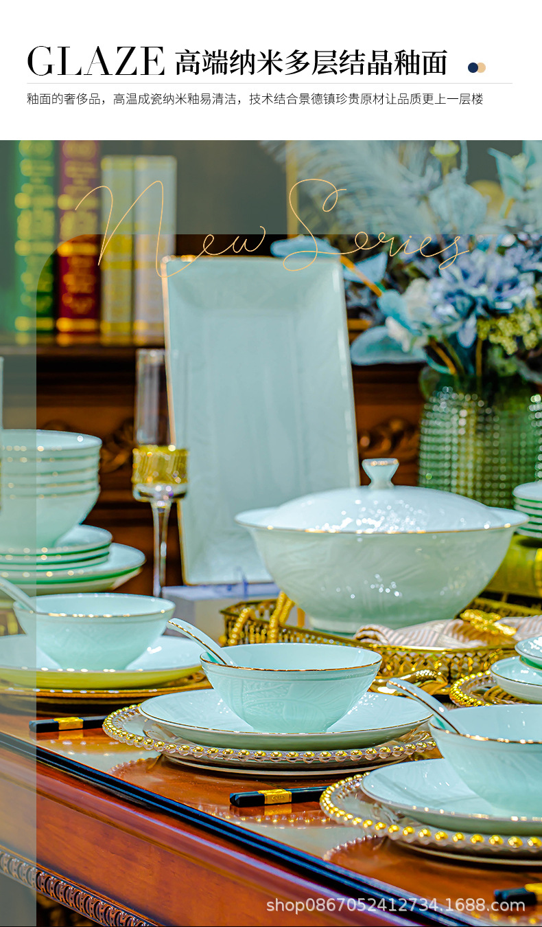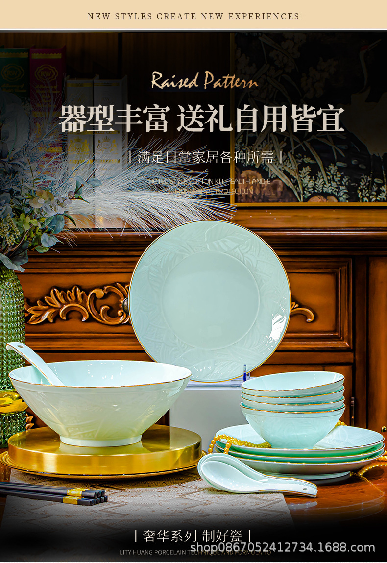 青瓷碗碟套装家用 高档礼品批发景德镇餐具套装陶瓷骨瓷餐具送礼