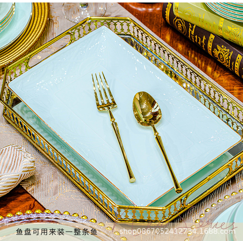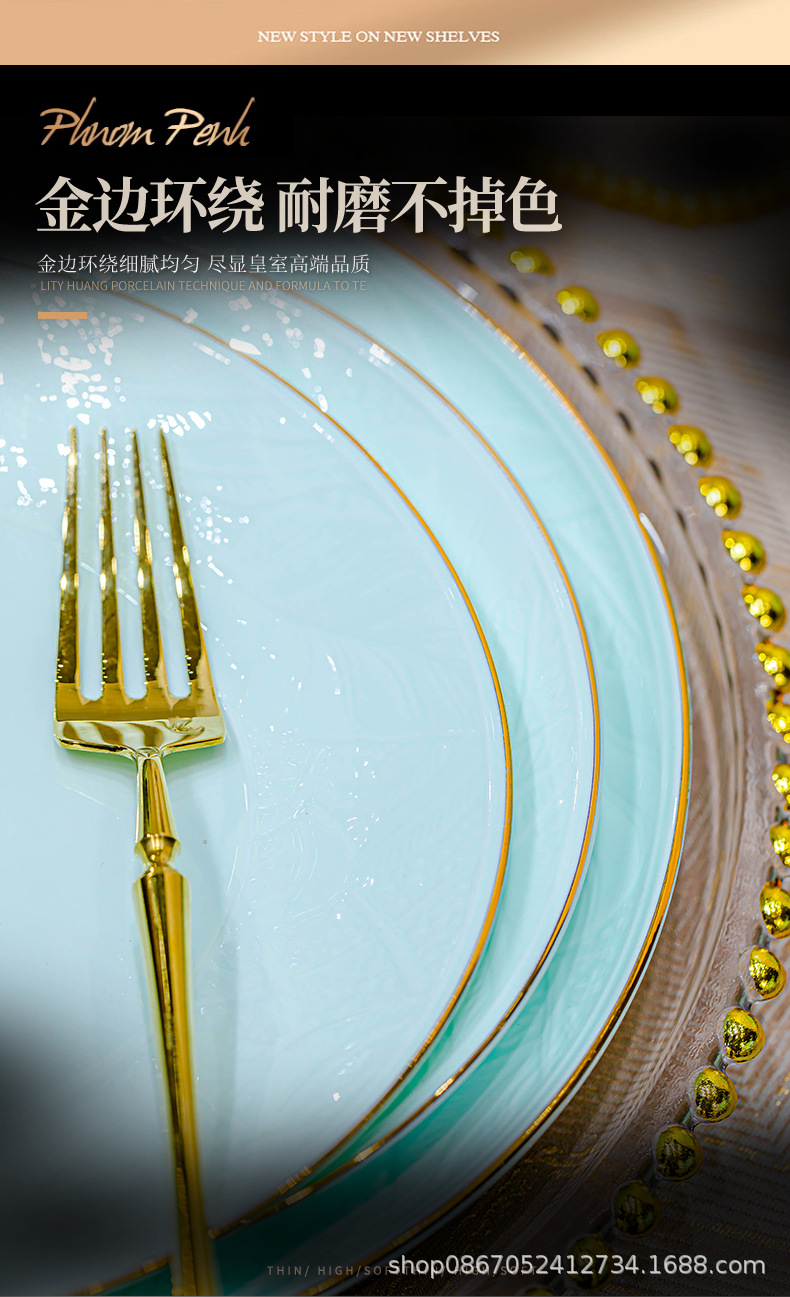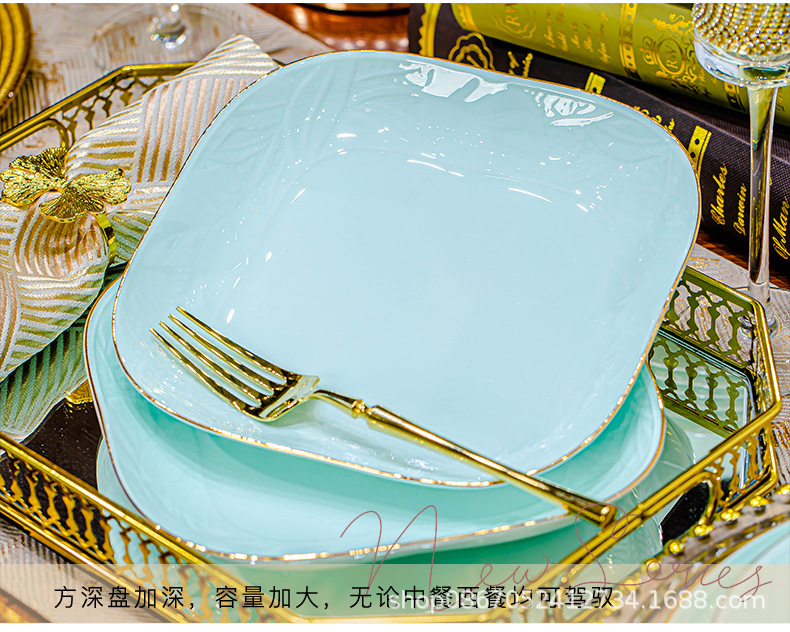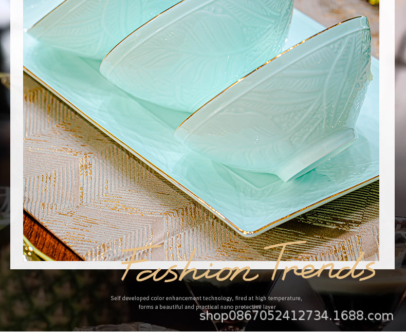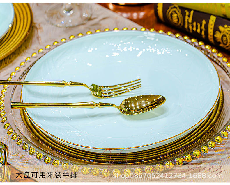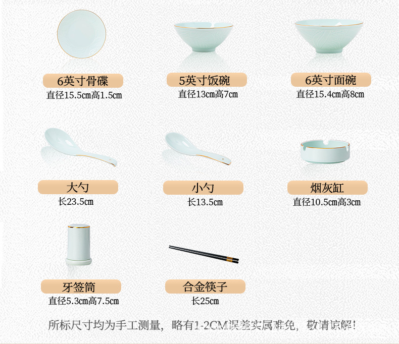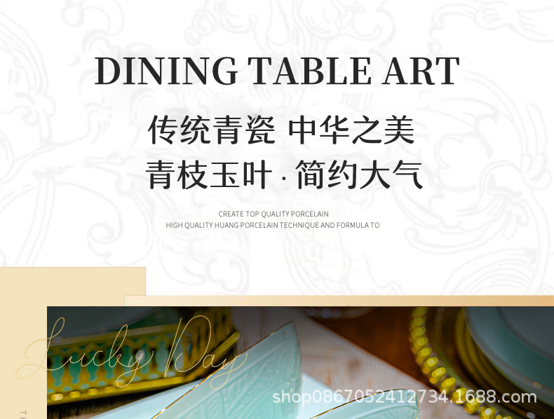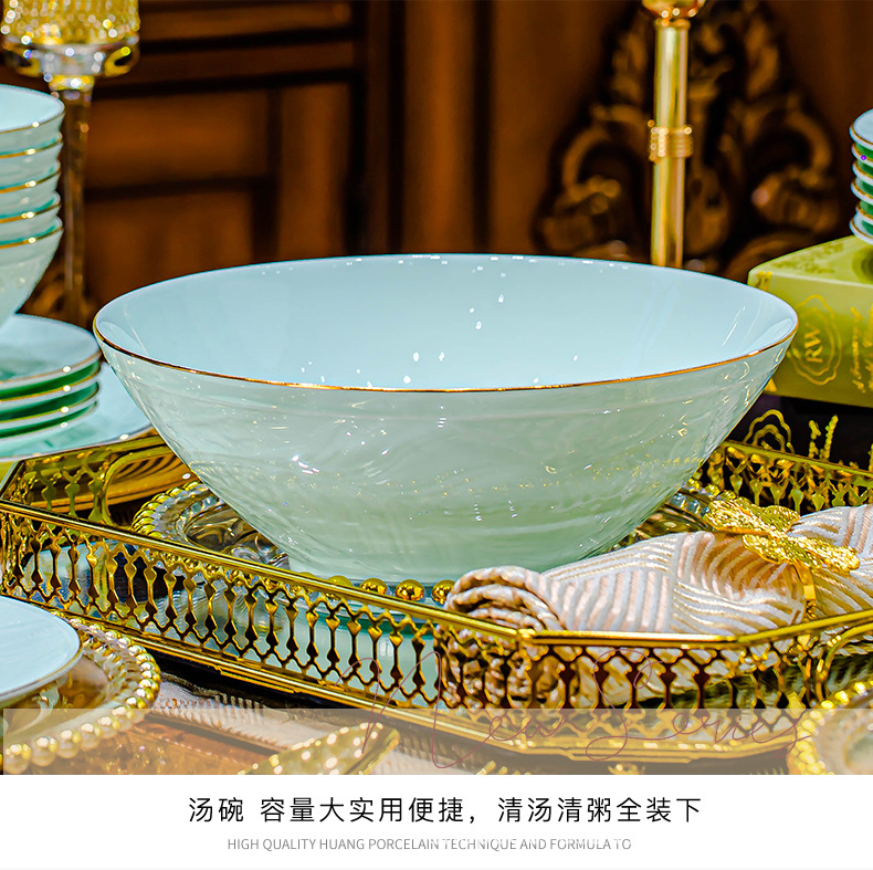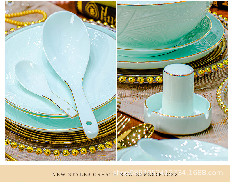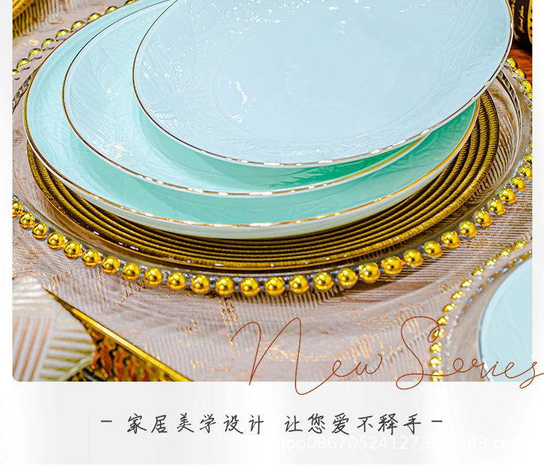 青瓷碗碟套装家用 高档礼品批发景德镇餐具套装陶瓷骨瓷餐具送礼