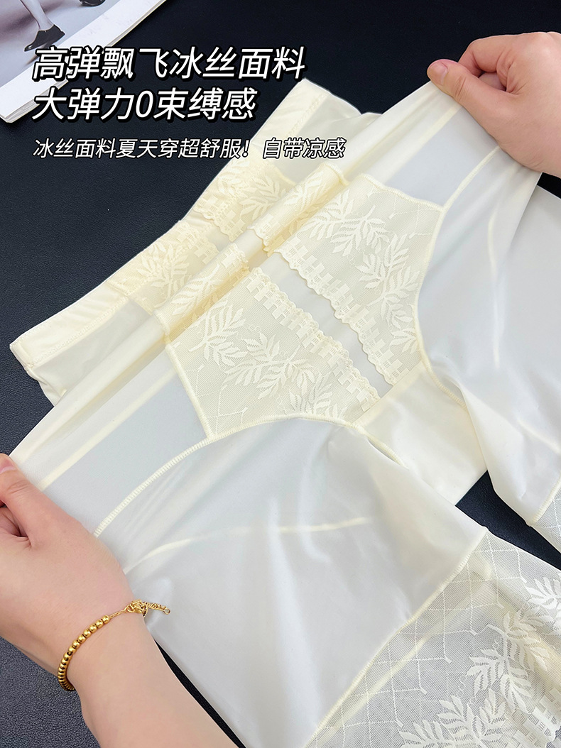 跨境夏季冰丝无痕高腰强效束身不卷边收腹裤 超薄塑性无痕安全裤