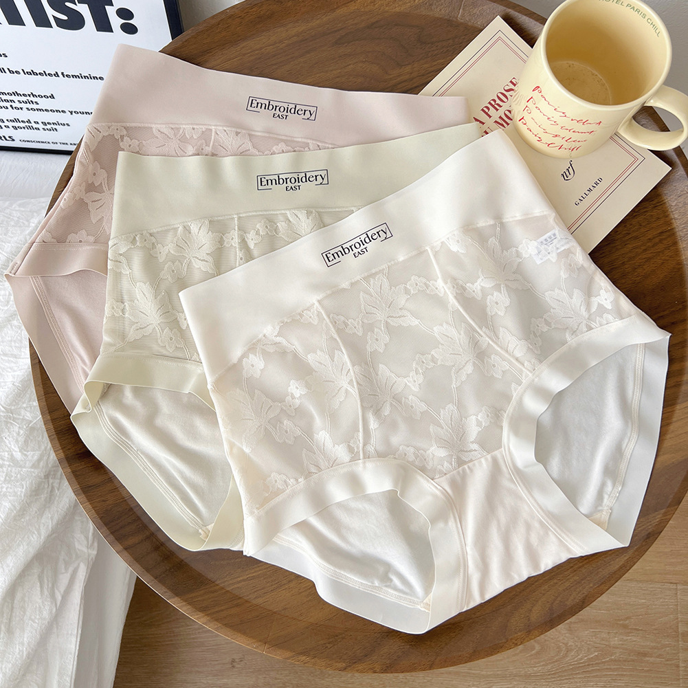 新款专卖店品质ins风超大弹力无痕全包臀提花蕾丝高腰收腹内裤女
