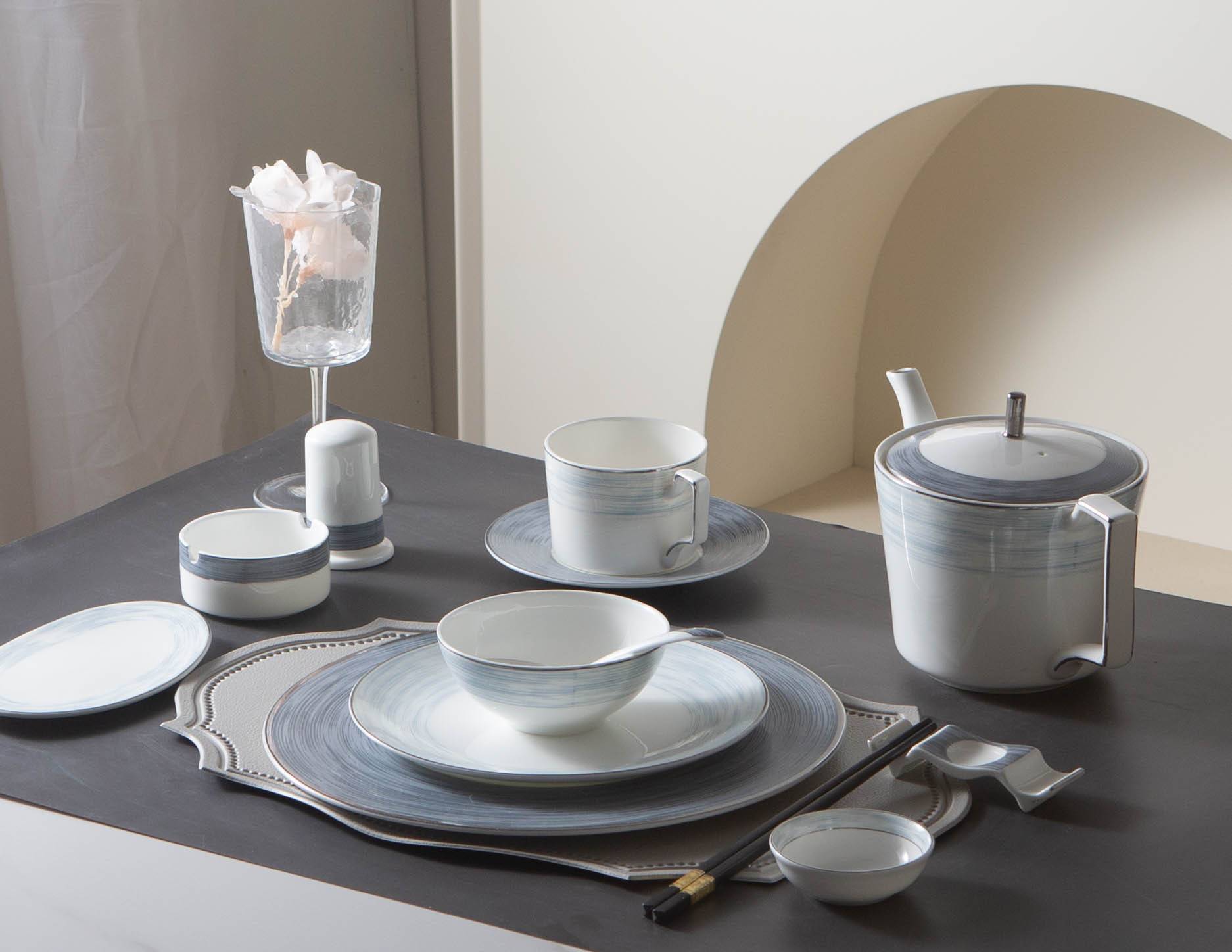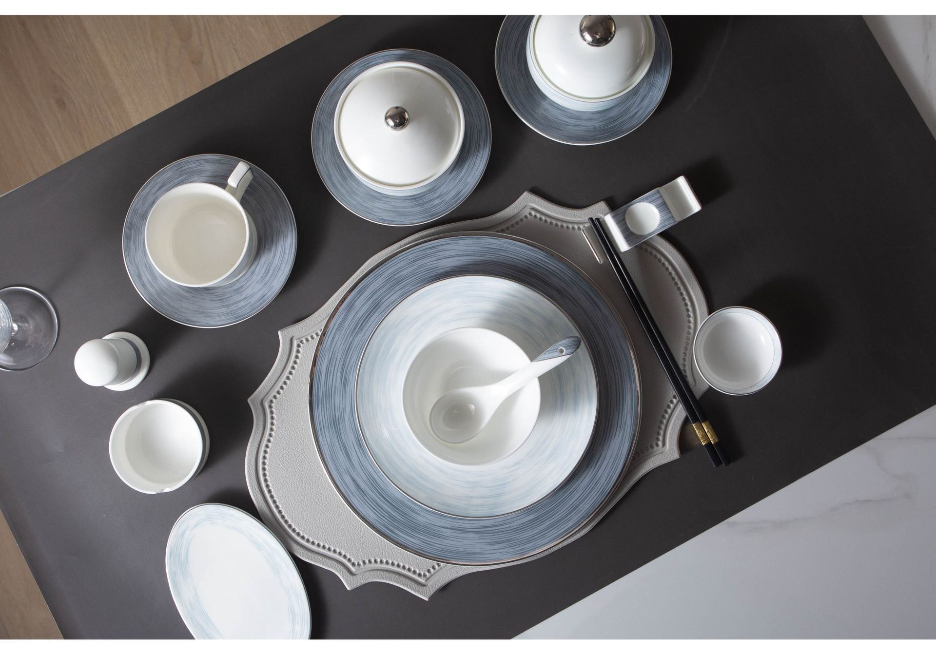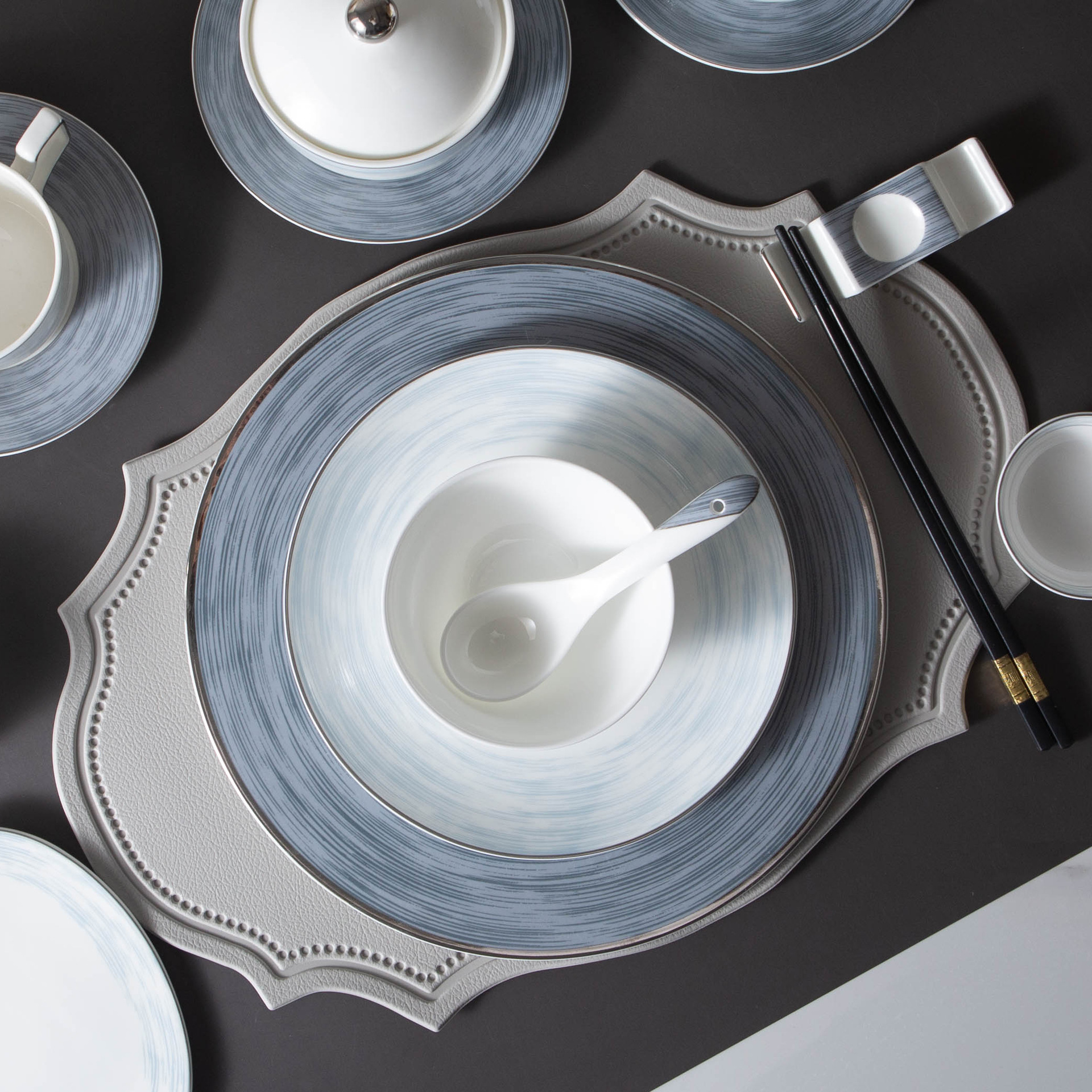 铂金圈酒店餐具哑光铂金碗盘碟高档骨瓷西餐酒店包厢摆台餐具