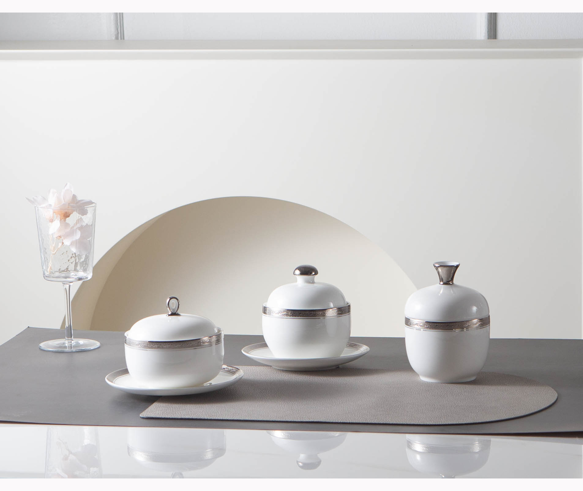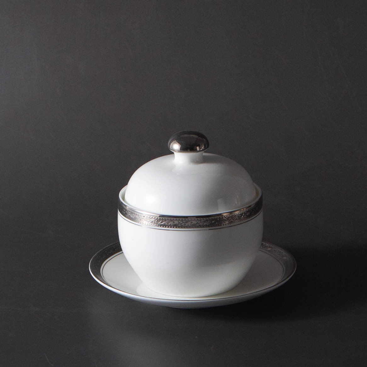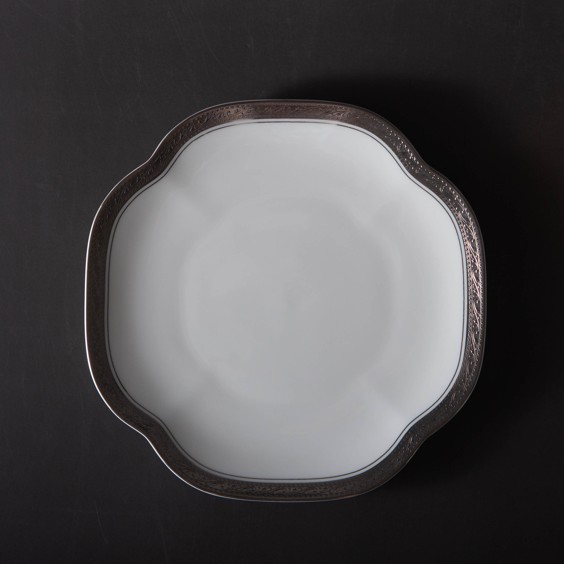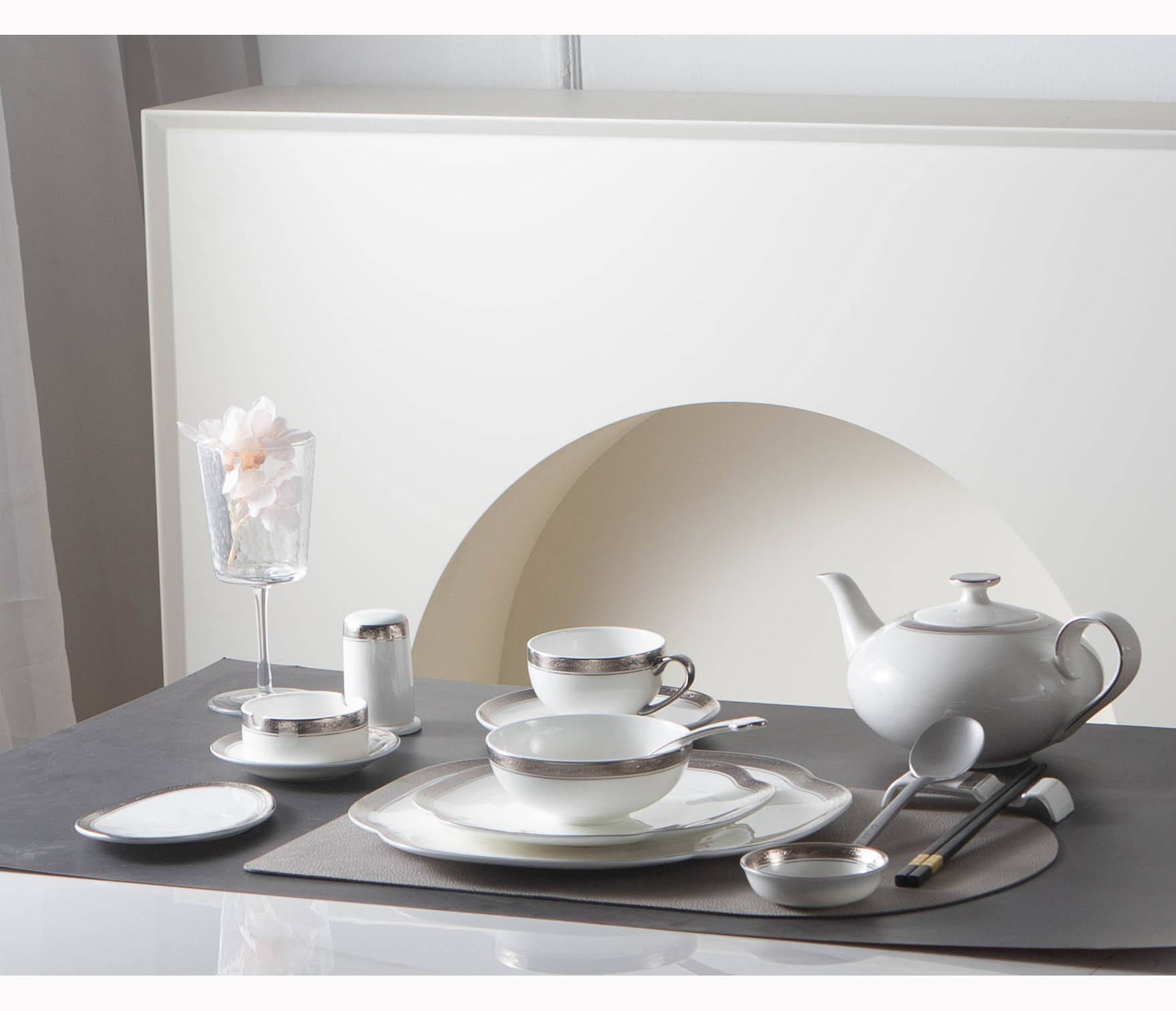 经典银边骨瓷餐具套装新中式会所包厢碗盘碟浮雕五星级酒店摆台