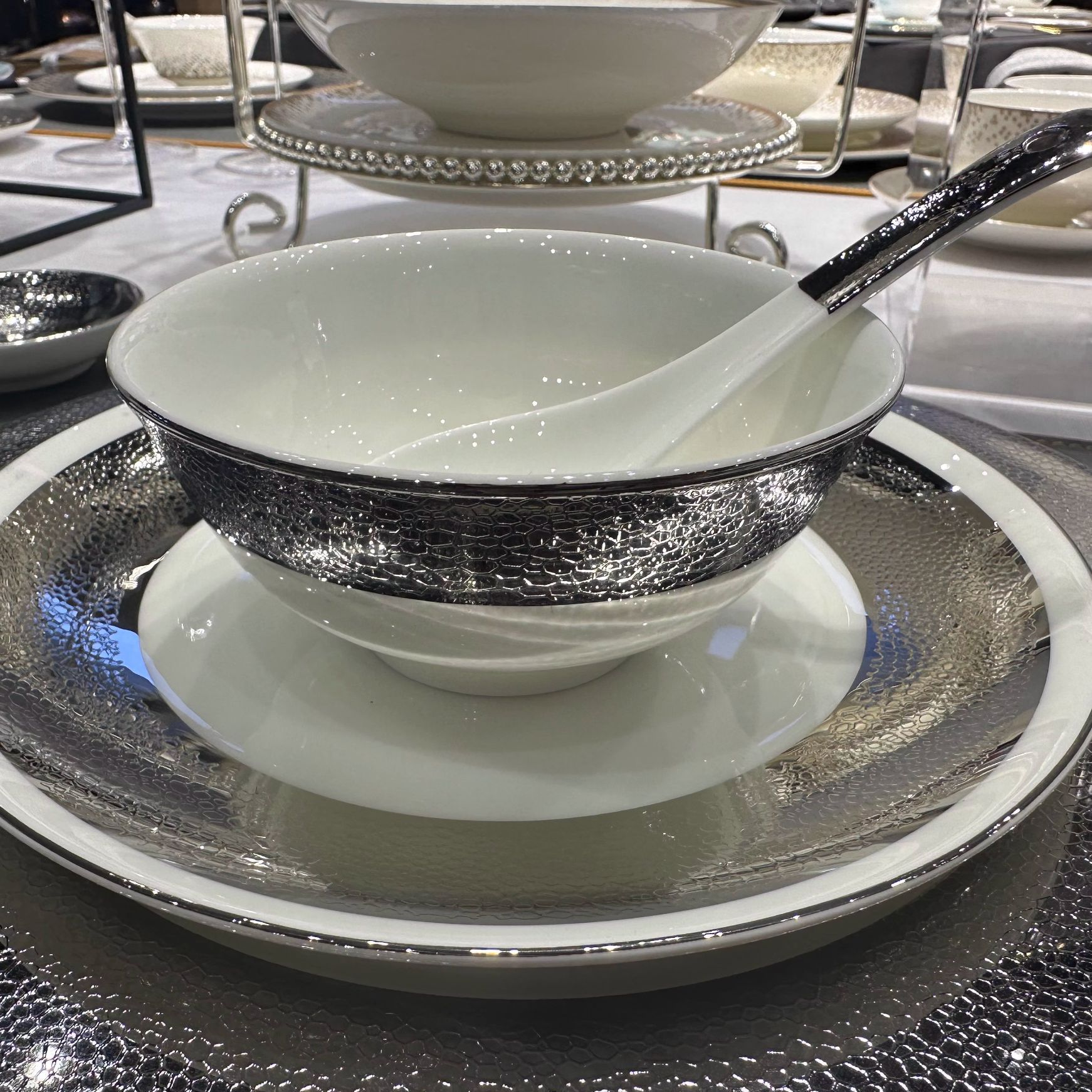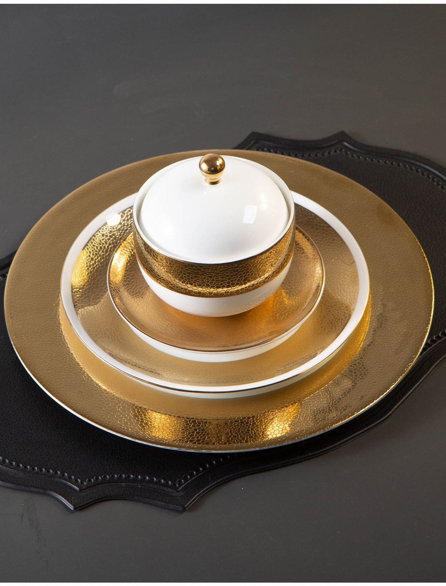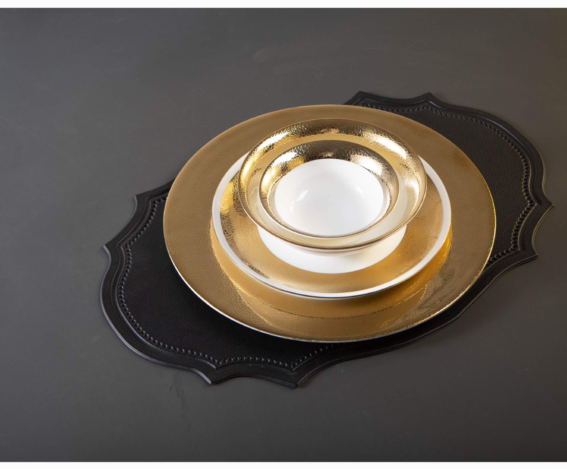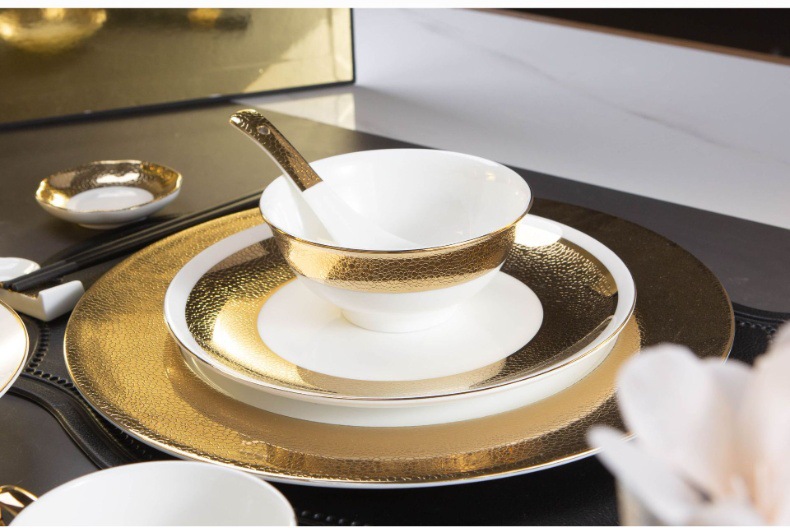 皮纹浮雕金高档会所餐具私房菜碗盘碟五星级酒店摆台