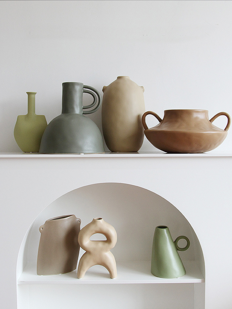 清仓 宅寂风陶罐花瓶样板间民宿摆件莫兰迪手工花瓶艺术设计花器