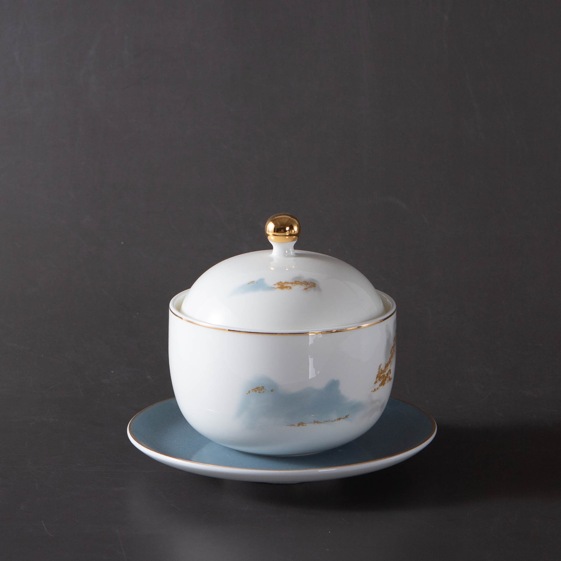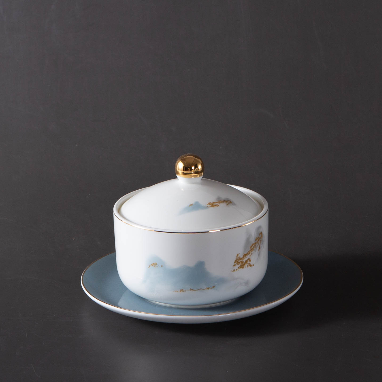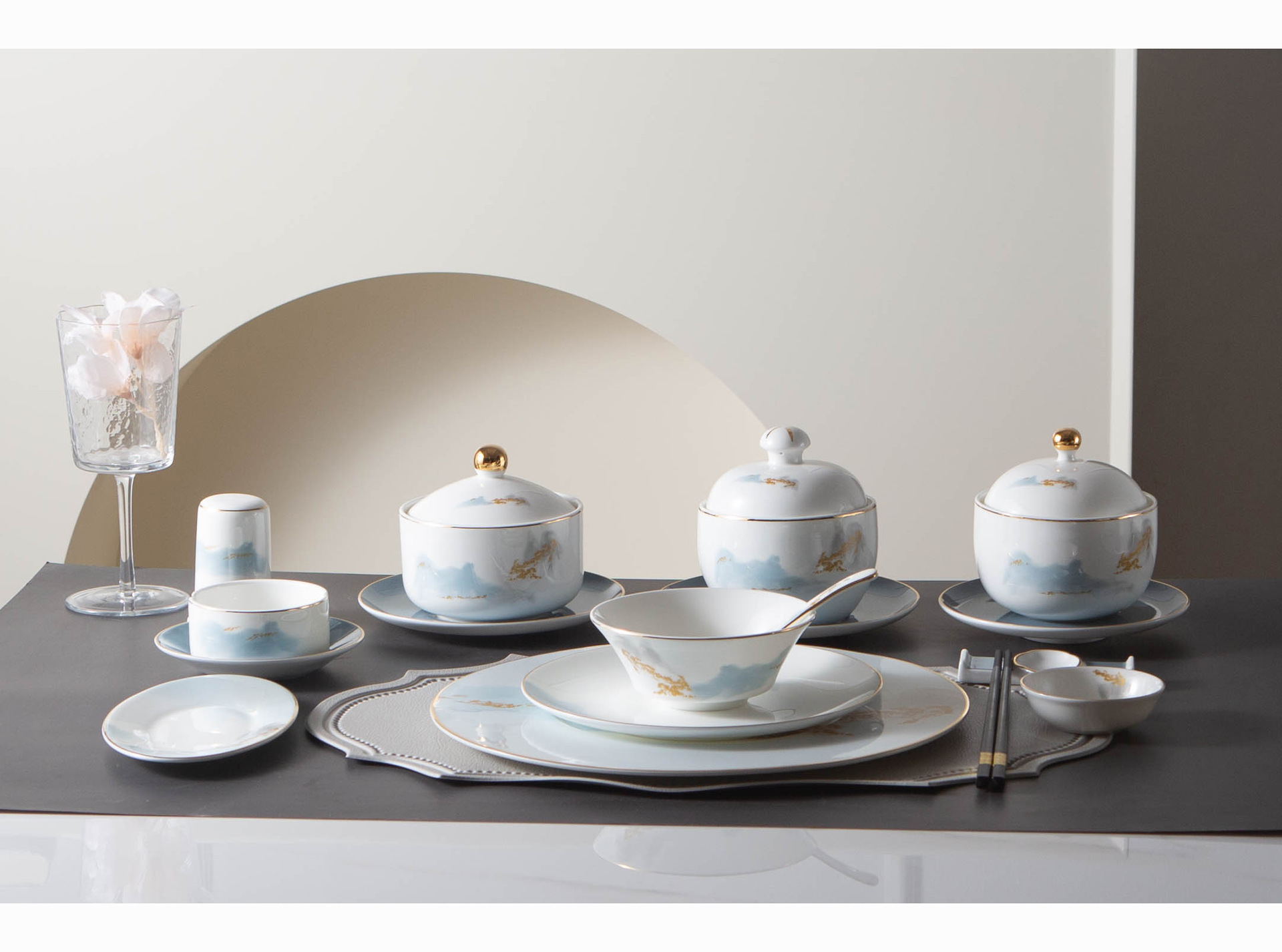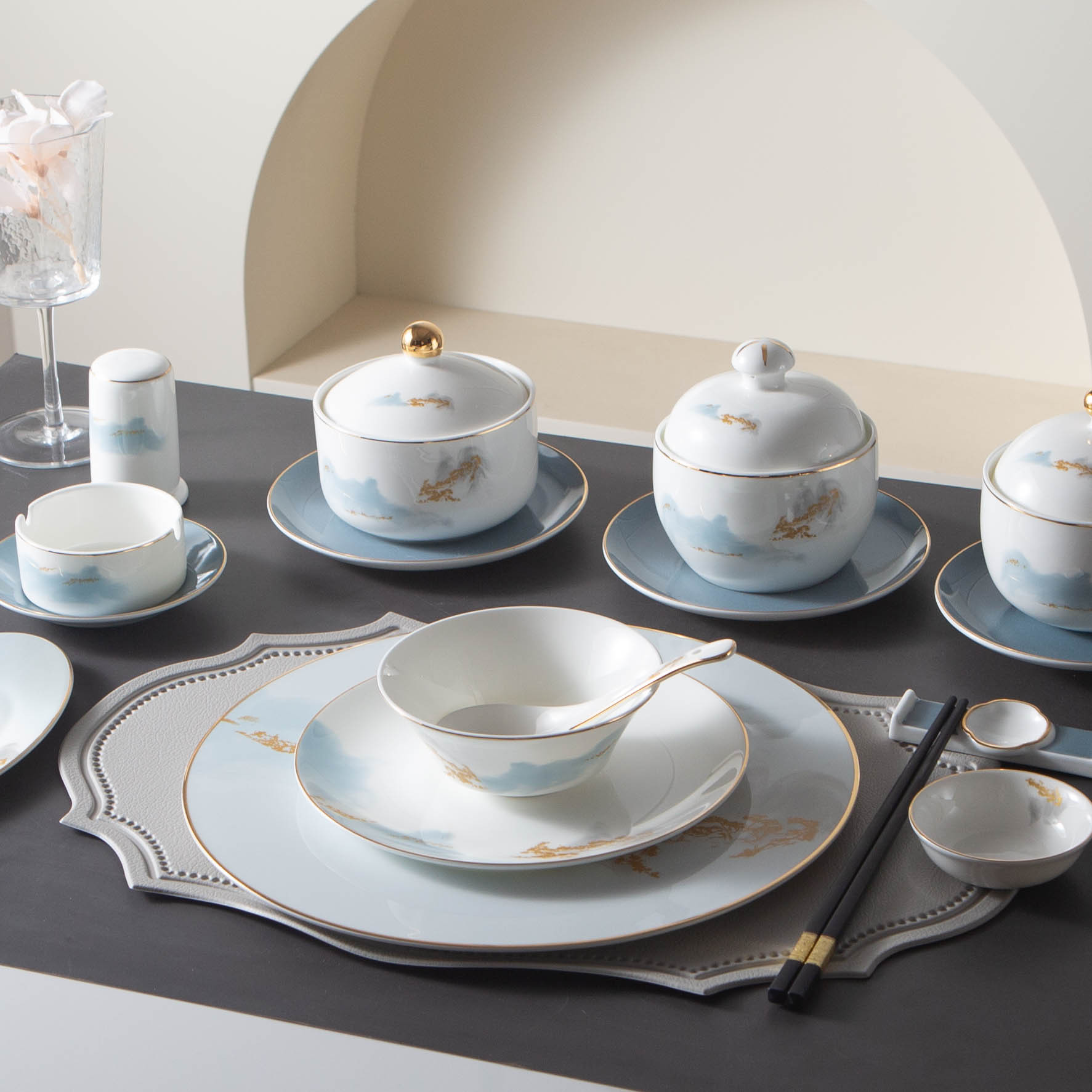 日照金山私人会所高档餐具中式金边陶瓷星级酒店摆台骨瓷餐具套装