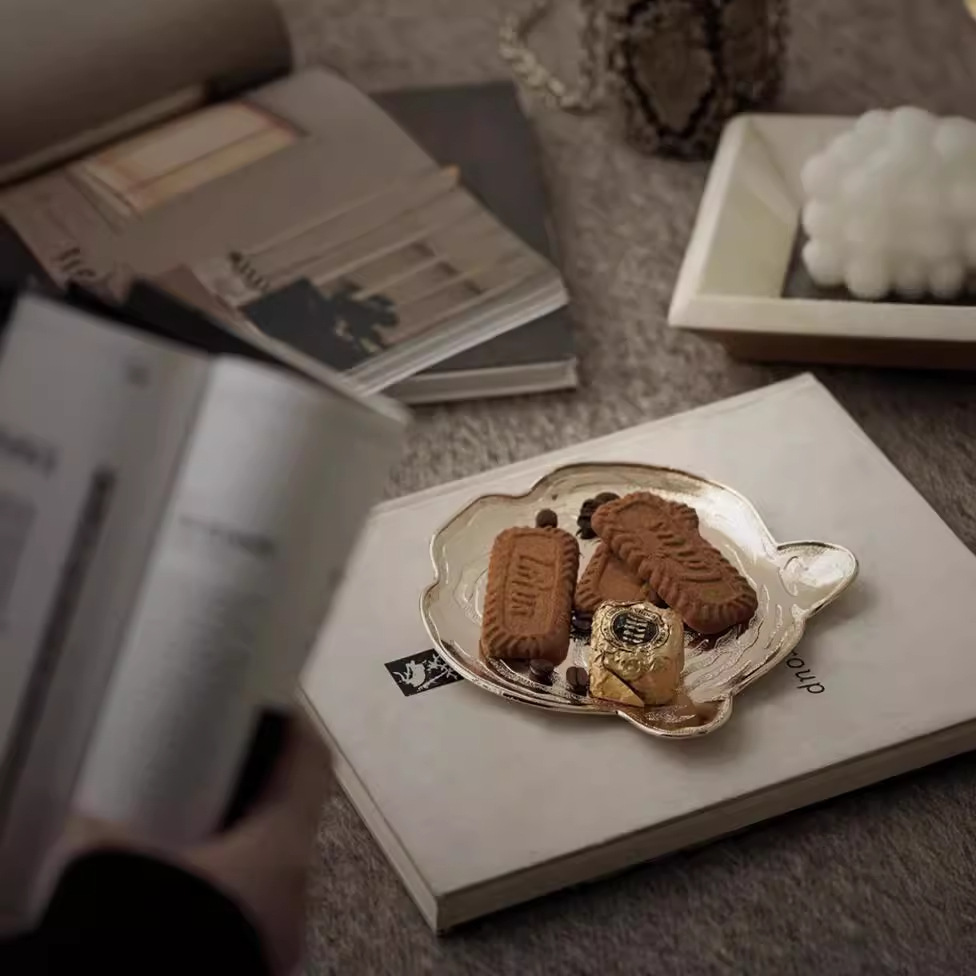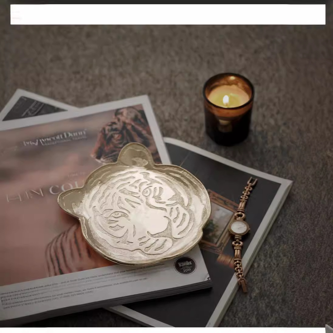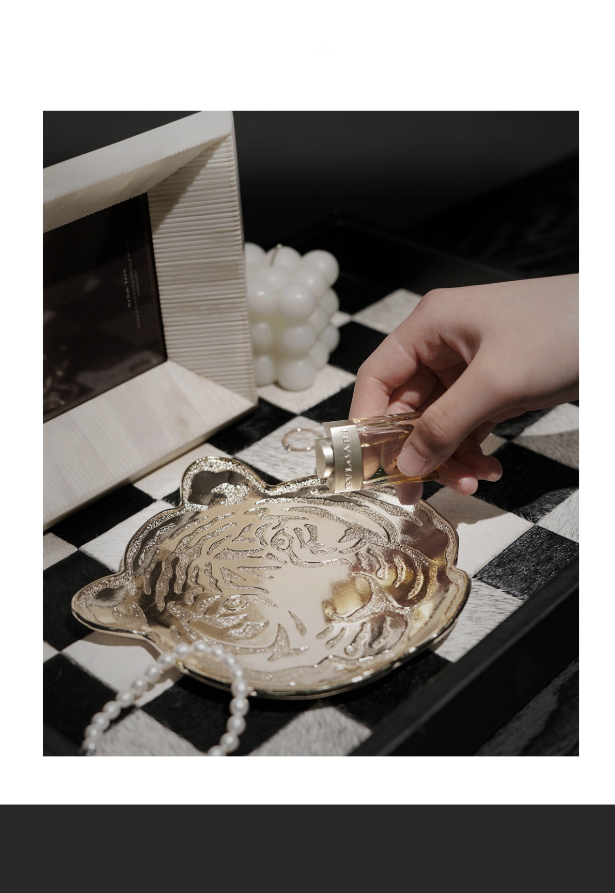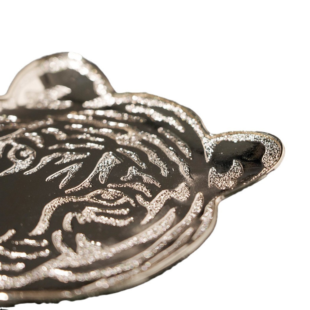跨境中古陶瓷盘可爱老虎桌面收纳金银色轻奢首饰盘玄关托盘