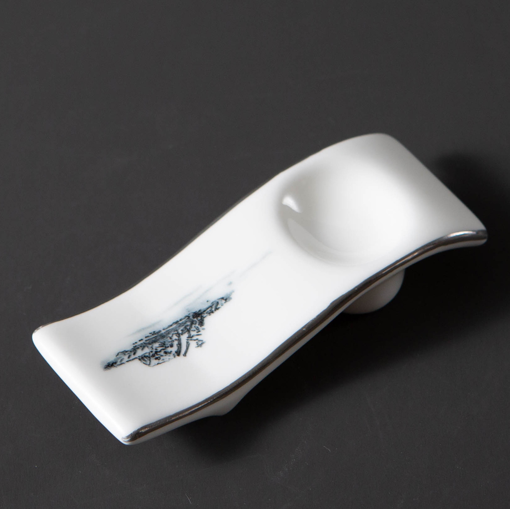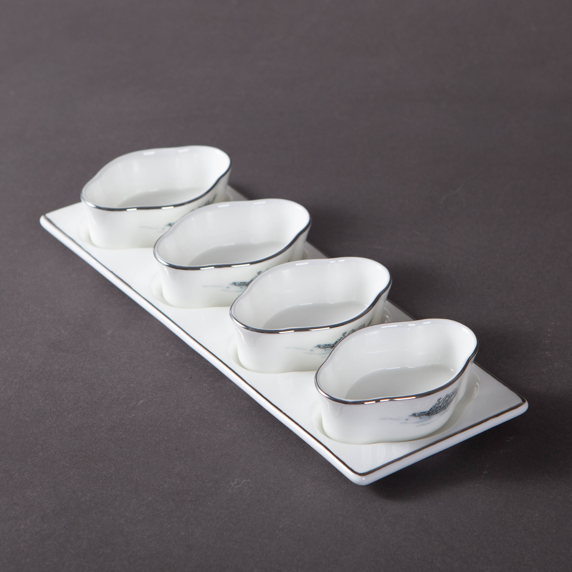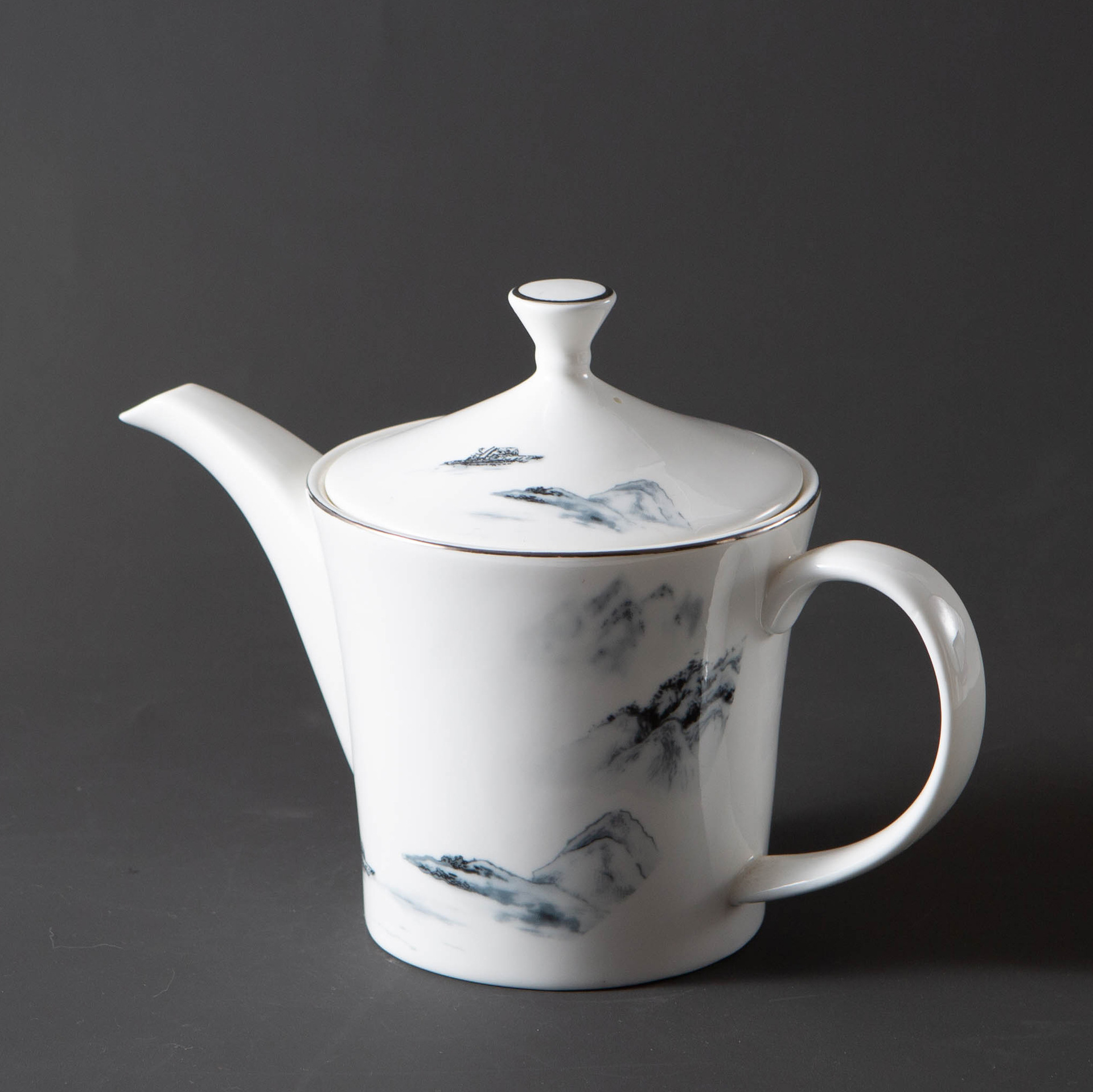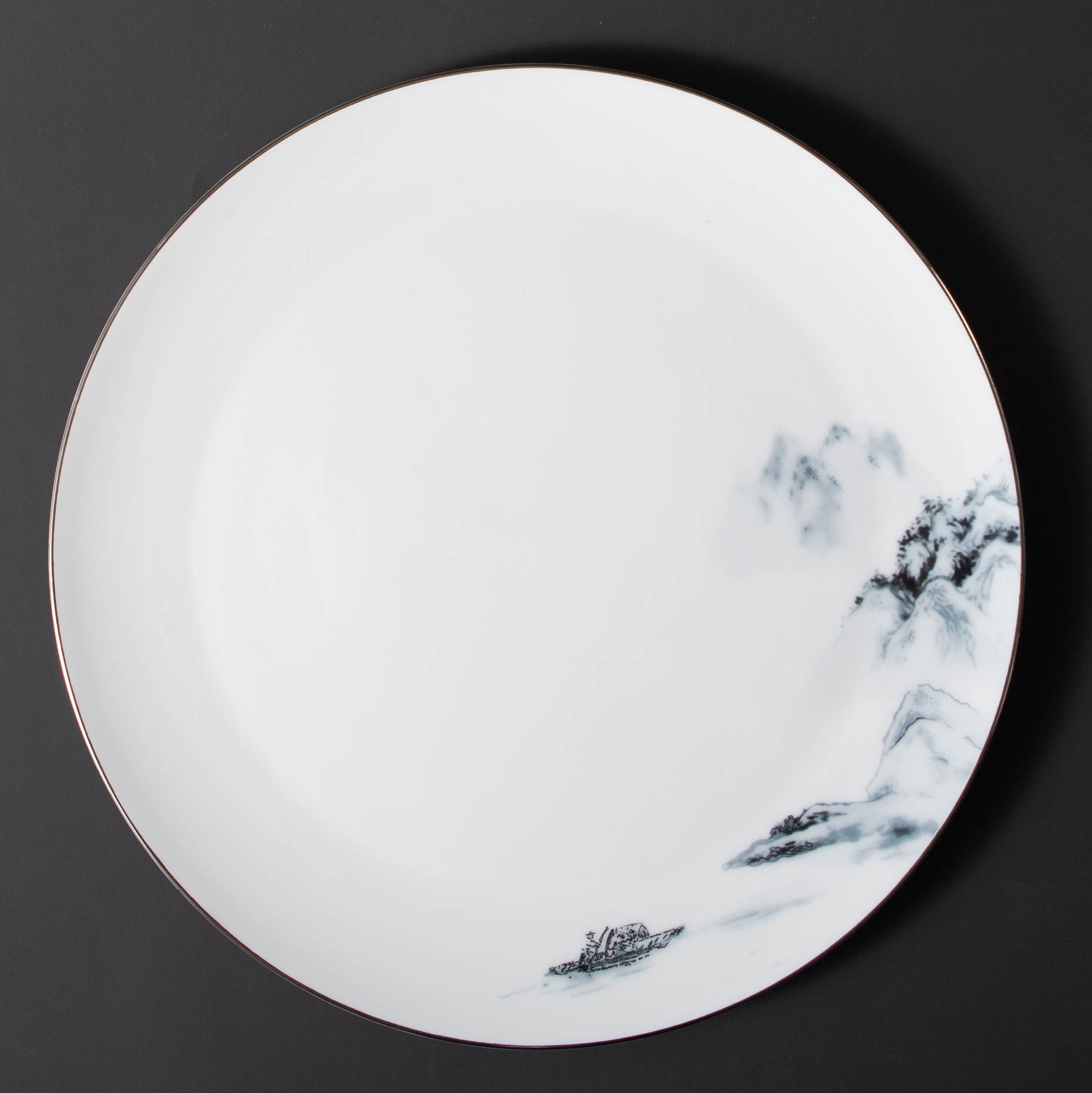 水墨骨瓷餐具金边碗盘碟杯高档中式包厢酒店摆台餐厅四件套可logo