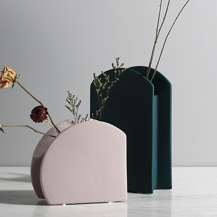 清仓 简约轻奢磨砂釉陶瓷花瓶民宿酒店茶几餐桌玄关摆件软装饰品