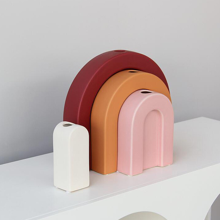清仓 ins创意彩虹陶瓷花瓶家居装饰艺术品酒店婚礼餐厅桌面摆件