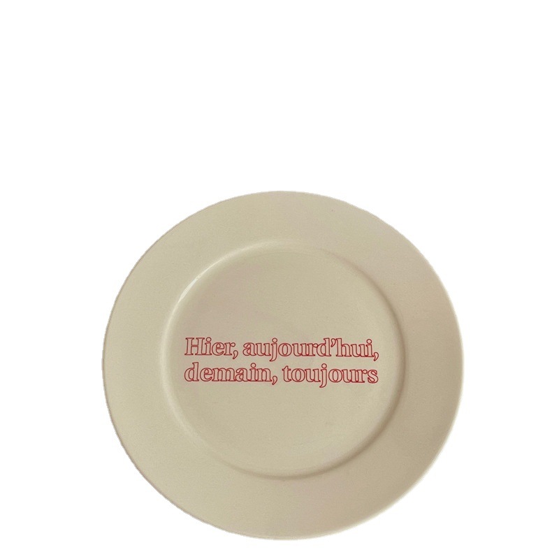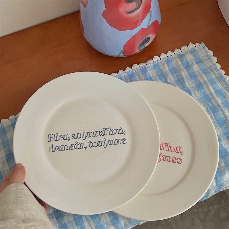 ins韩国风红蓝英文字母陶瓷盘甜点盘餐厅餐盘牛排盘8寸菜盘碟子
