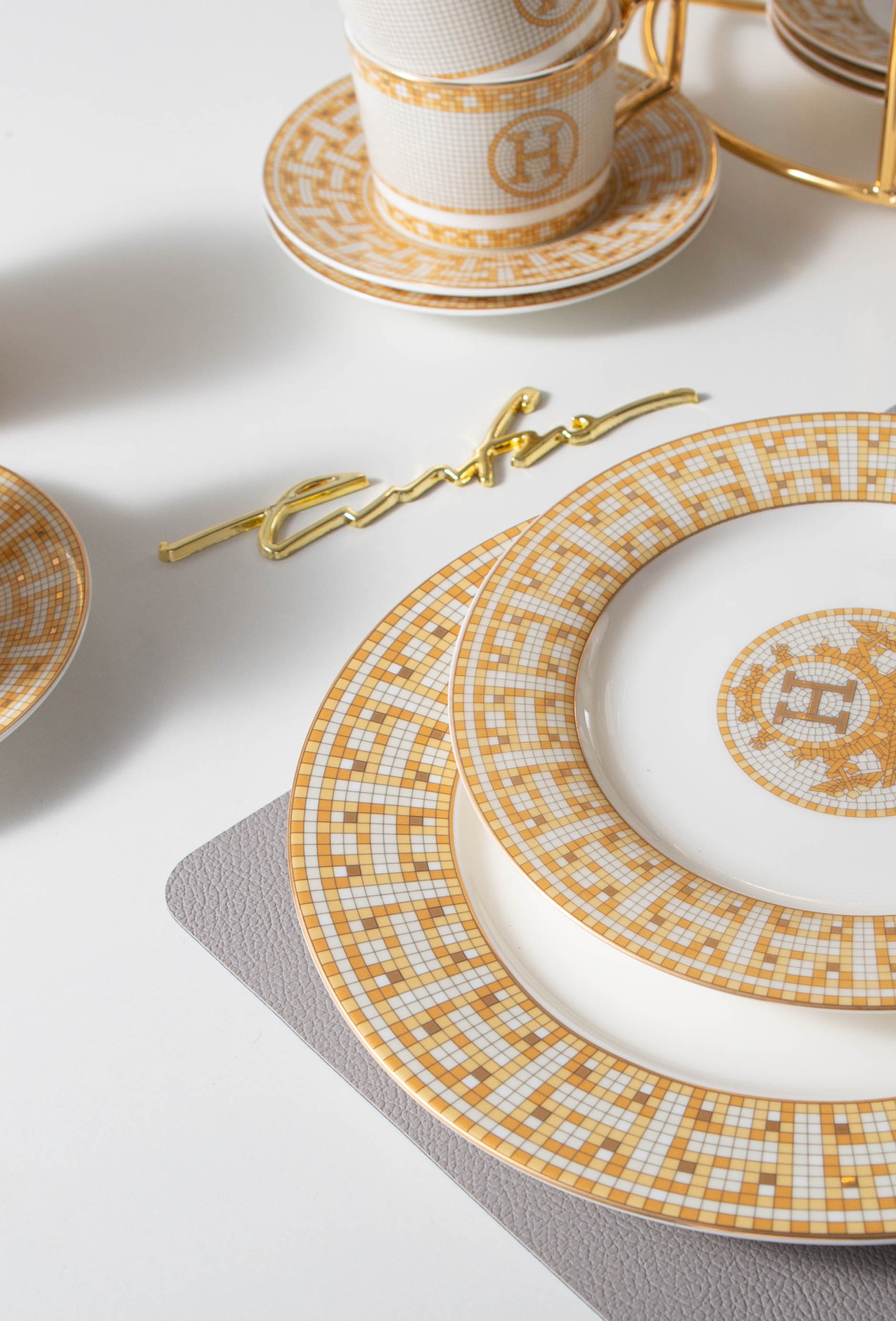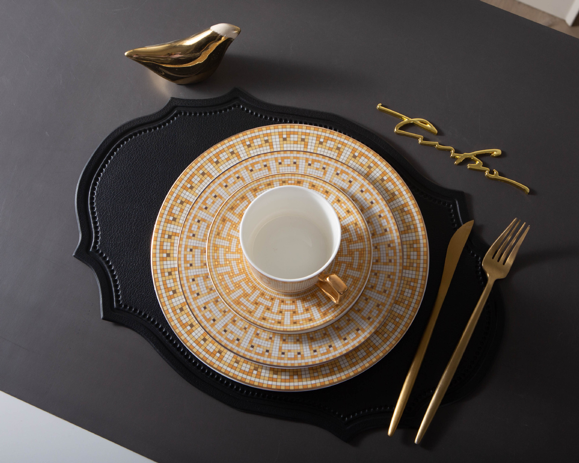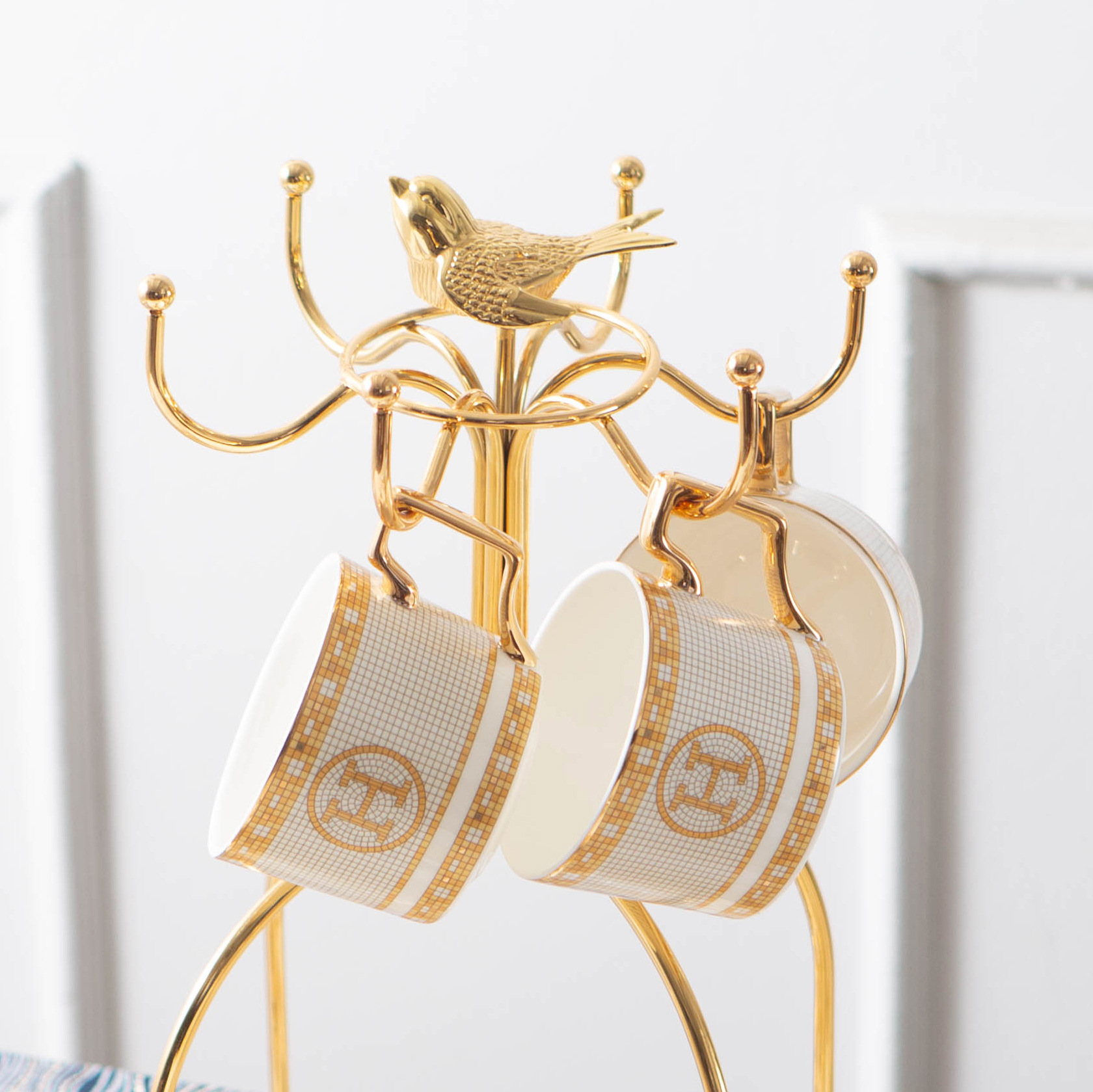 跨境马赛克系列花茶杯复古轻奢骨瓷杯套装样板房摆件金把手咖啡杯