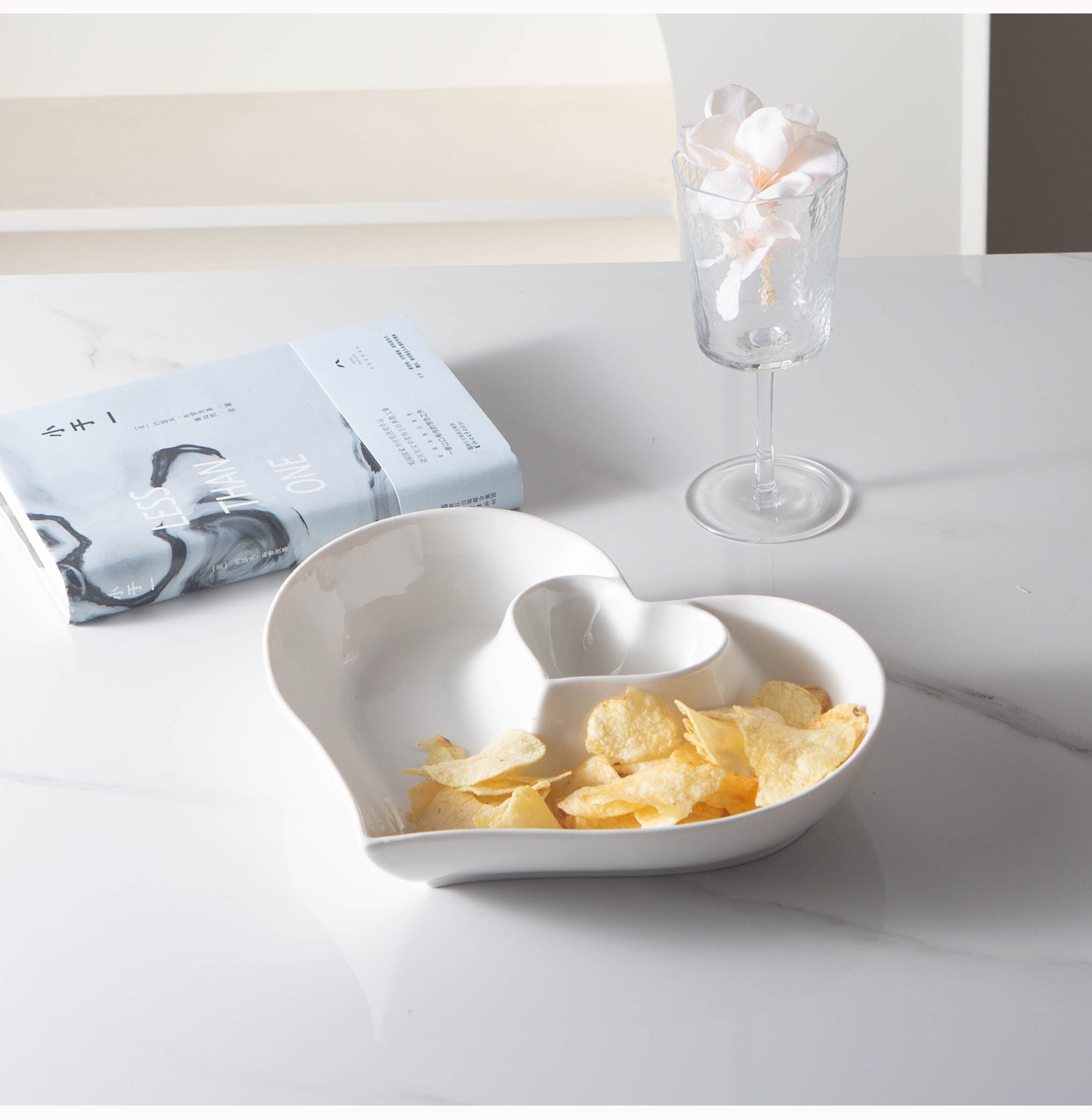 现货心型薯片碗亚马逊外销陶瓷碗冷餐托盘简约坚果碗水果沙拉碗
