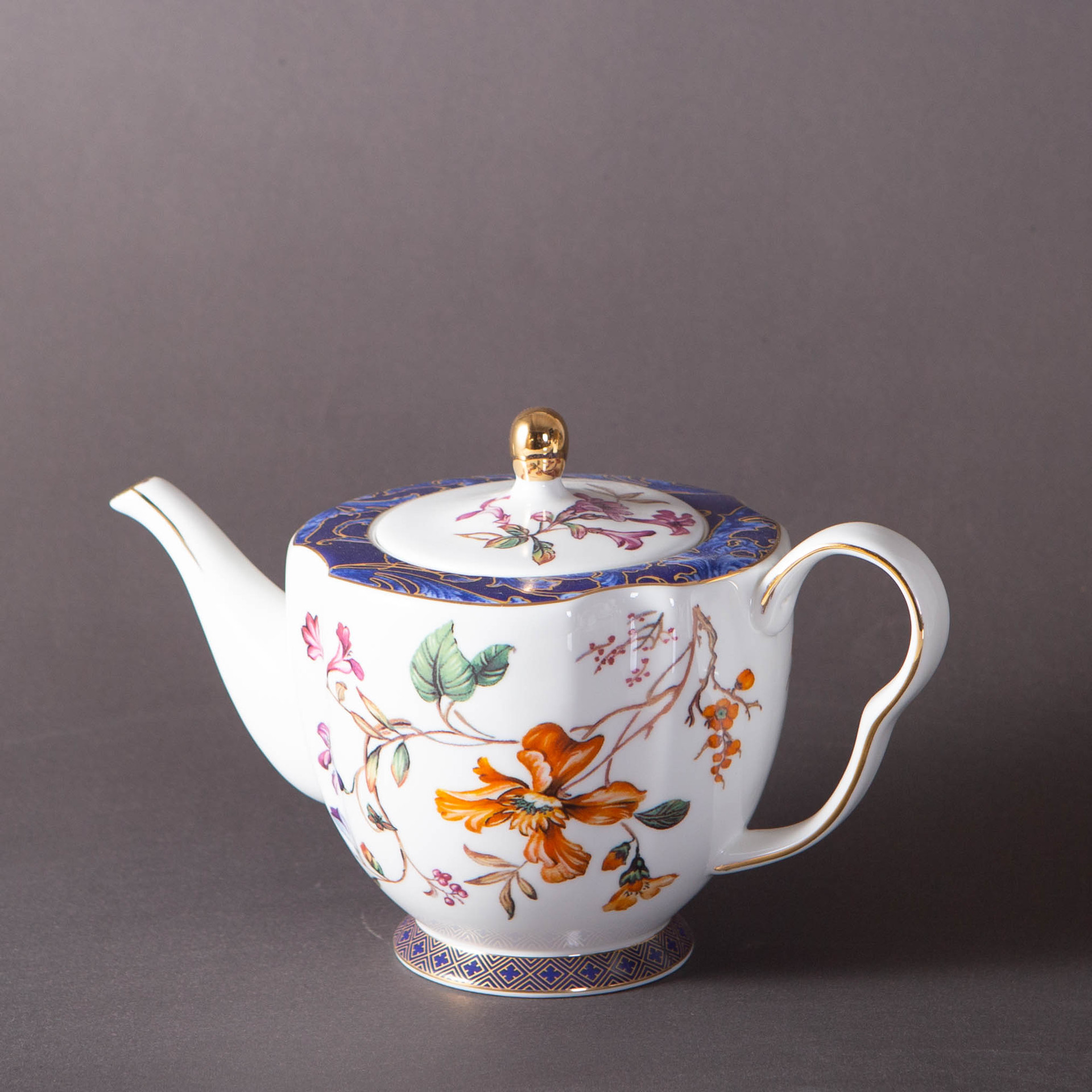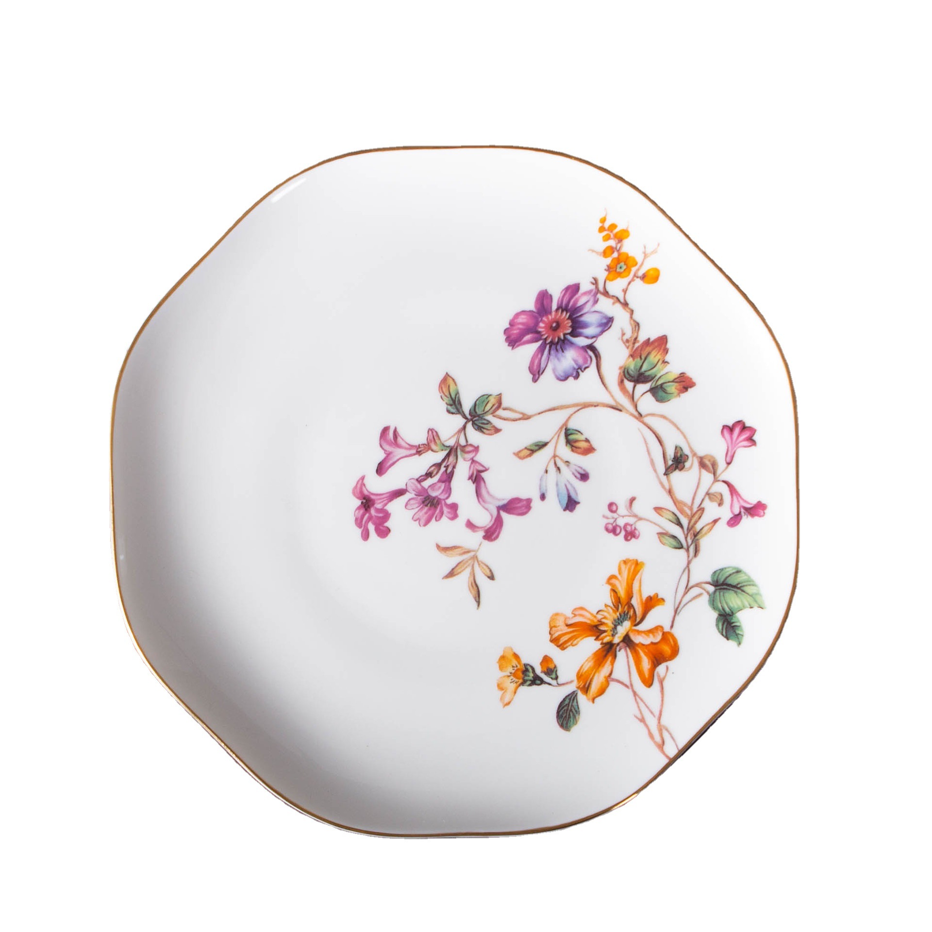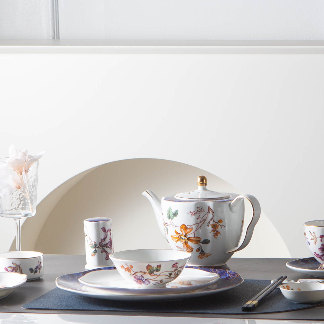 高档酒店摆台骨瓷餐具手描金边花卉碗盘碟会所包厢餐具可加印LOGO