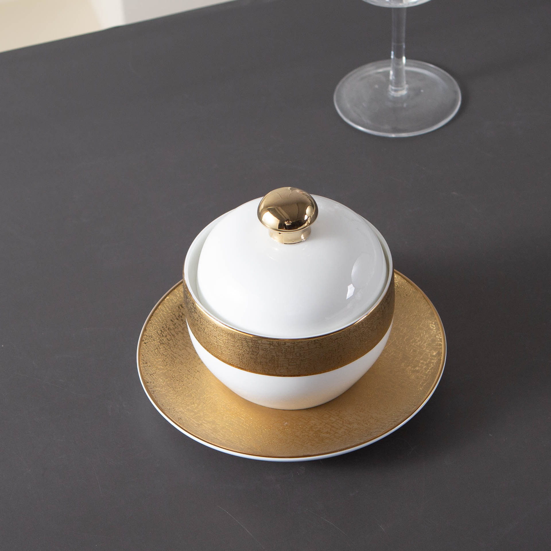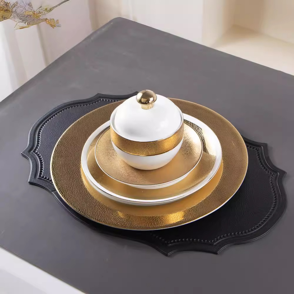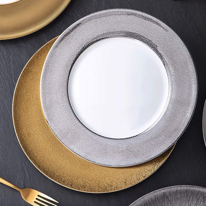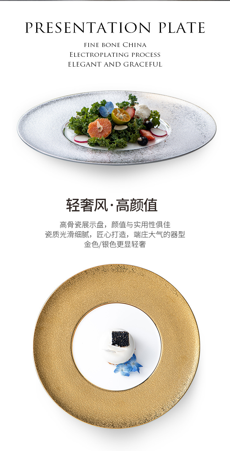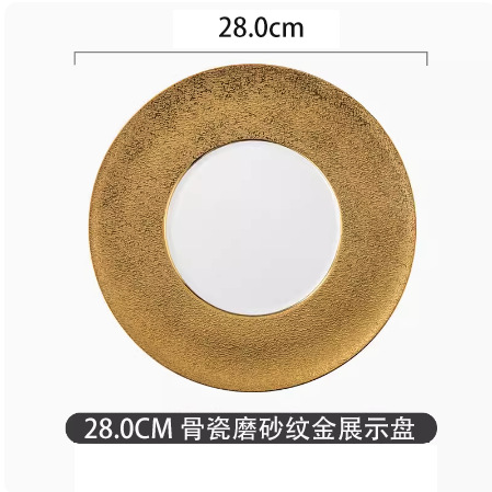 磨砂纹浮雕金餐具私房菜碗盘碟米其林黑珍珠餐厅摆台展盘位上碟