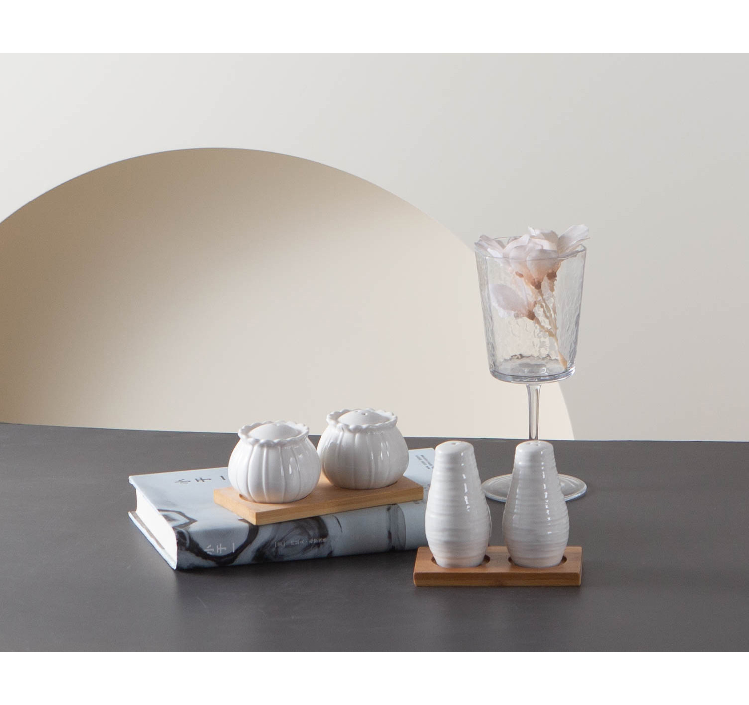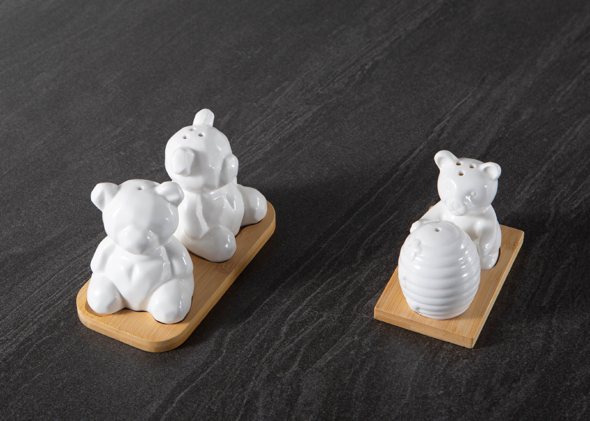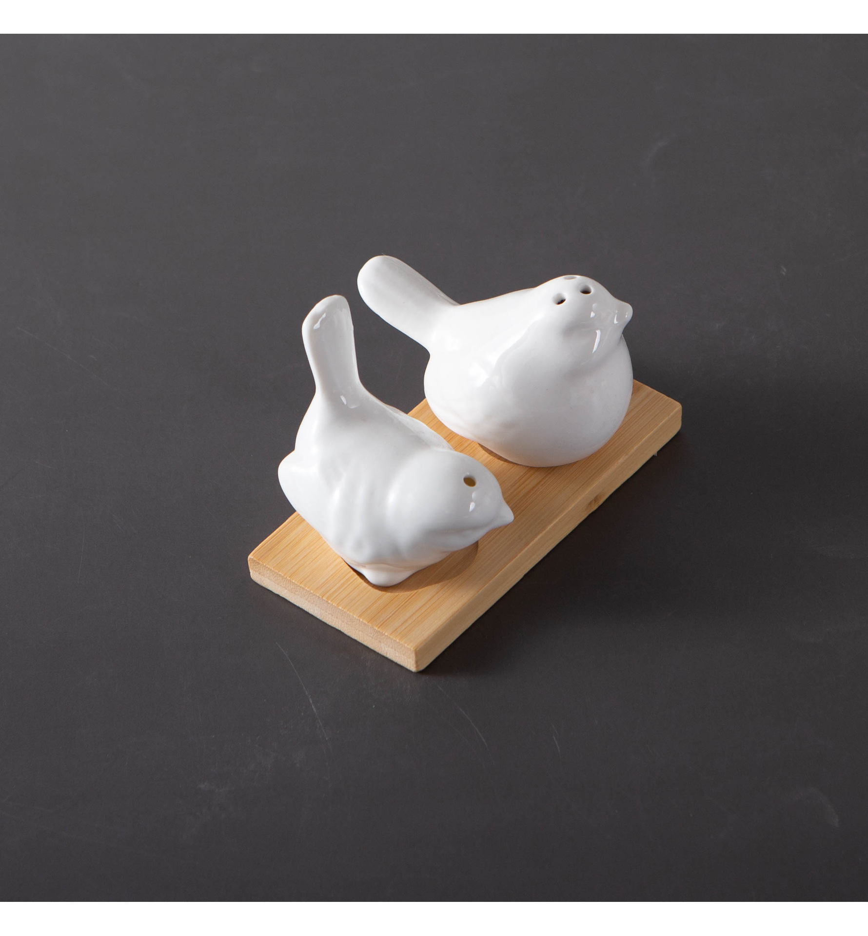 跨境 小鸟胡椒罐盐罐配竹木底盘纯白小熊糖罐桌面调味罐