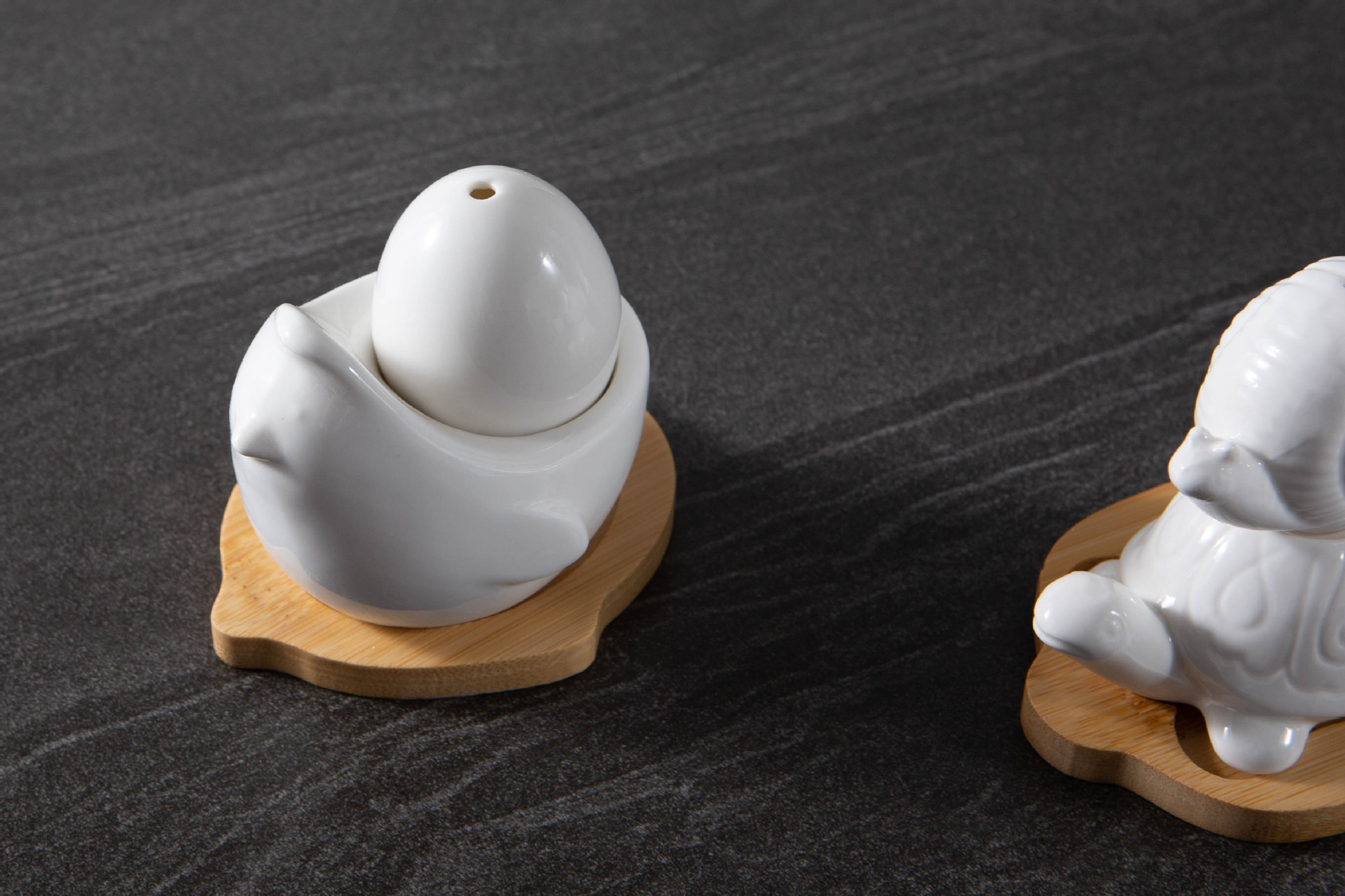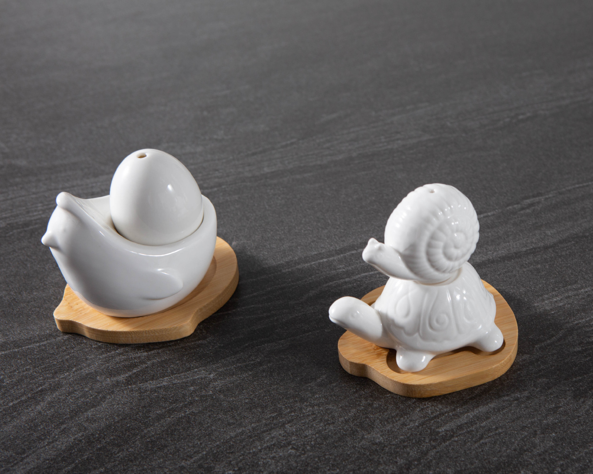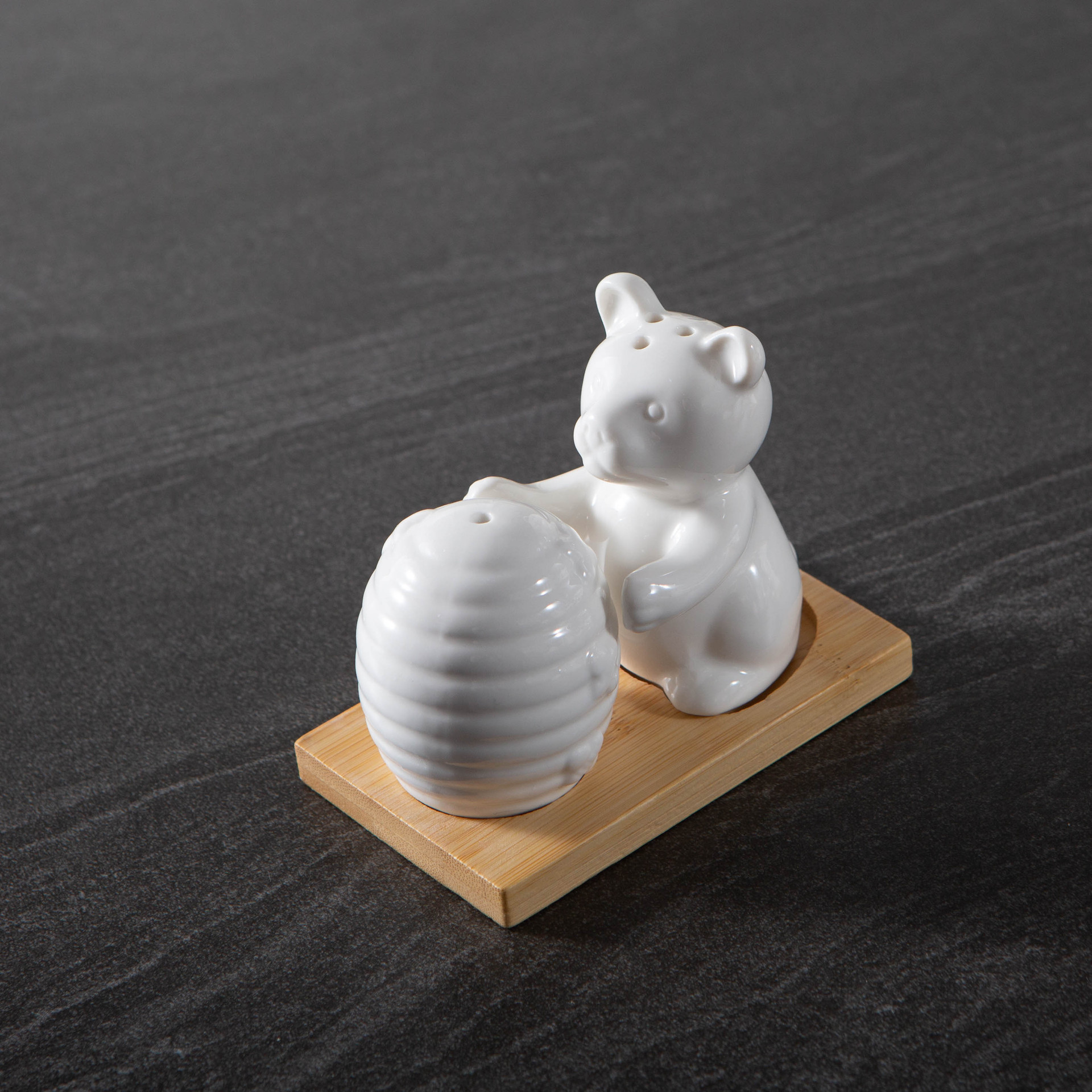 跨境 小鸟胡椒罐盐罐配竹木底盘纯白小熊糖罐桌面调味罐