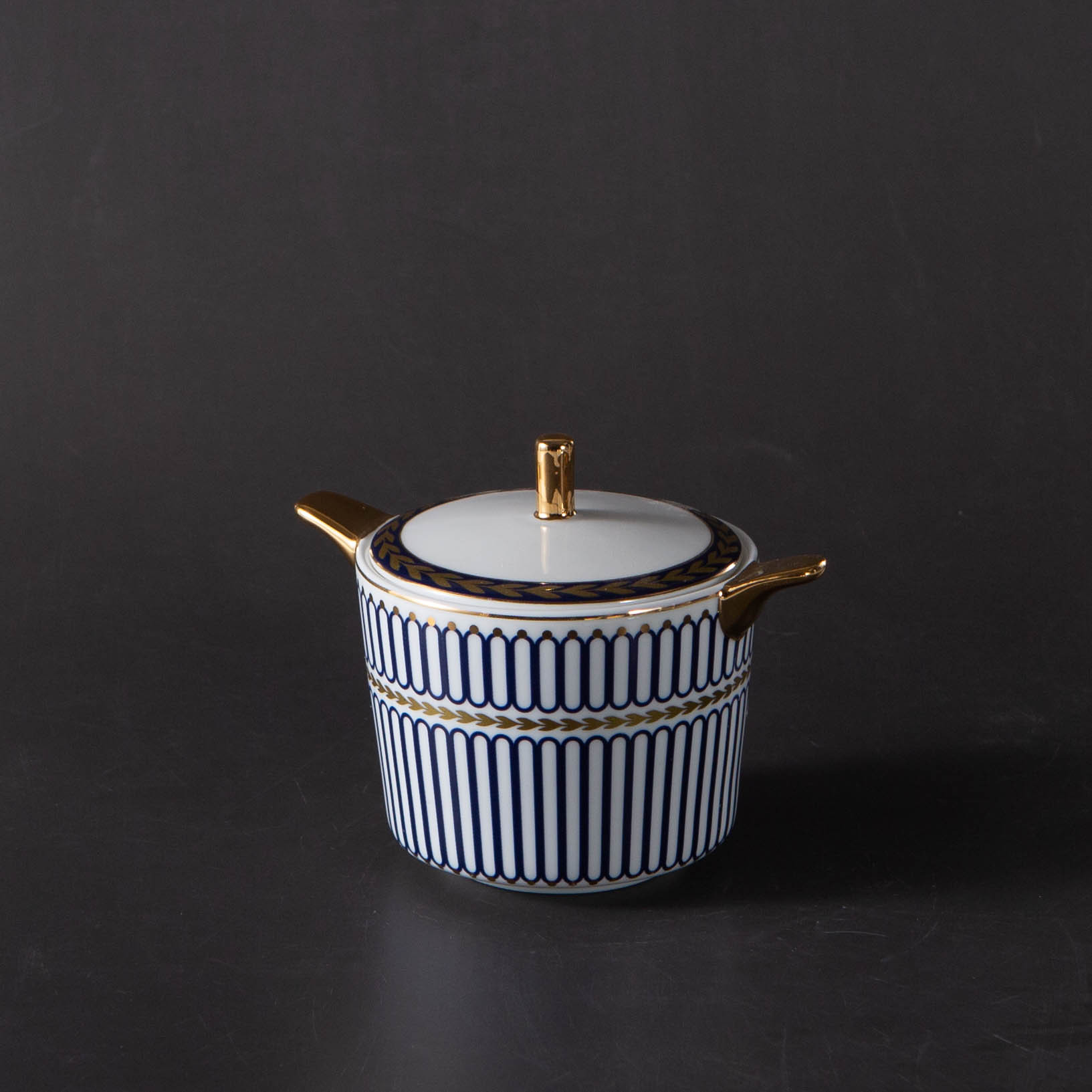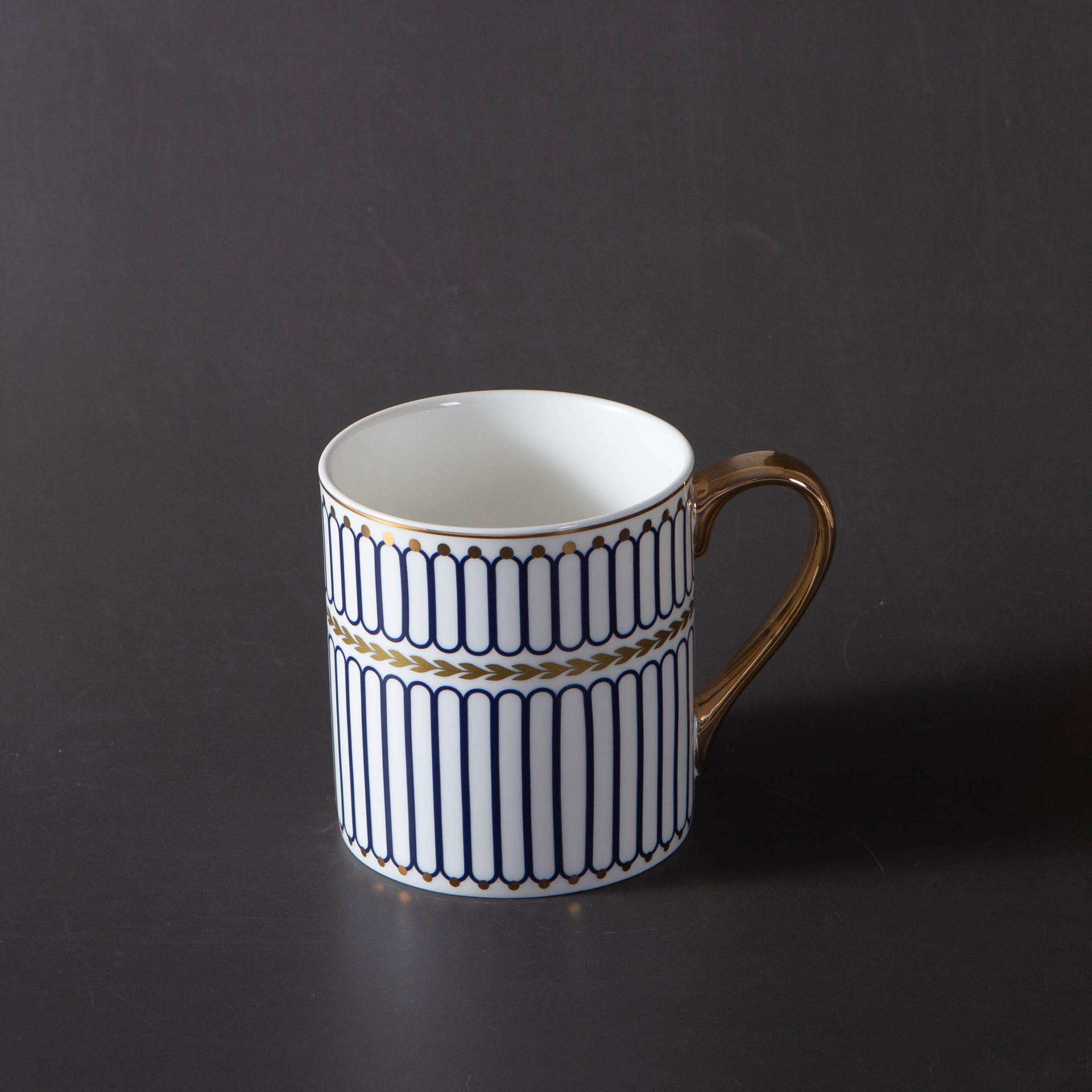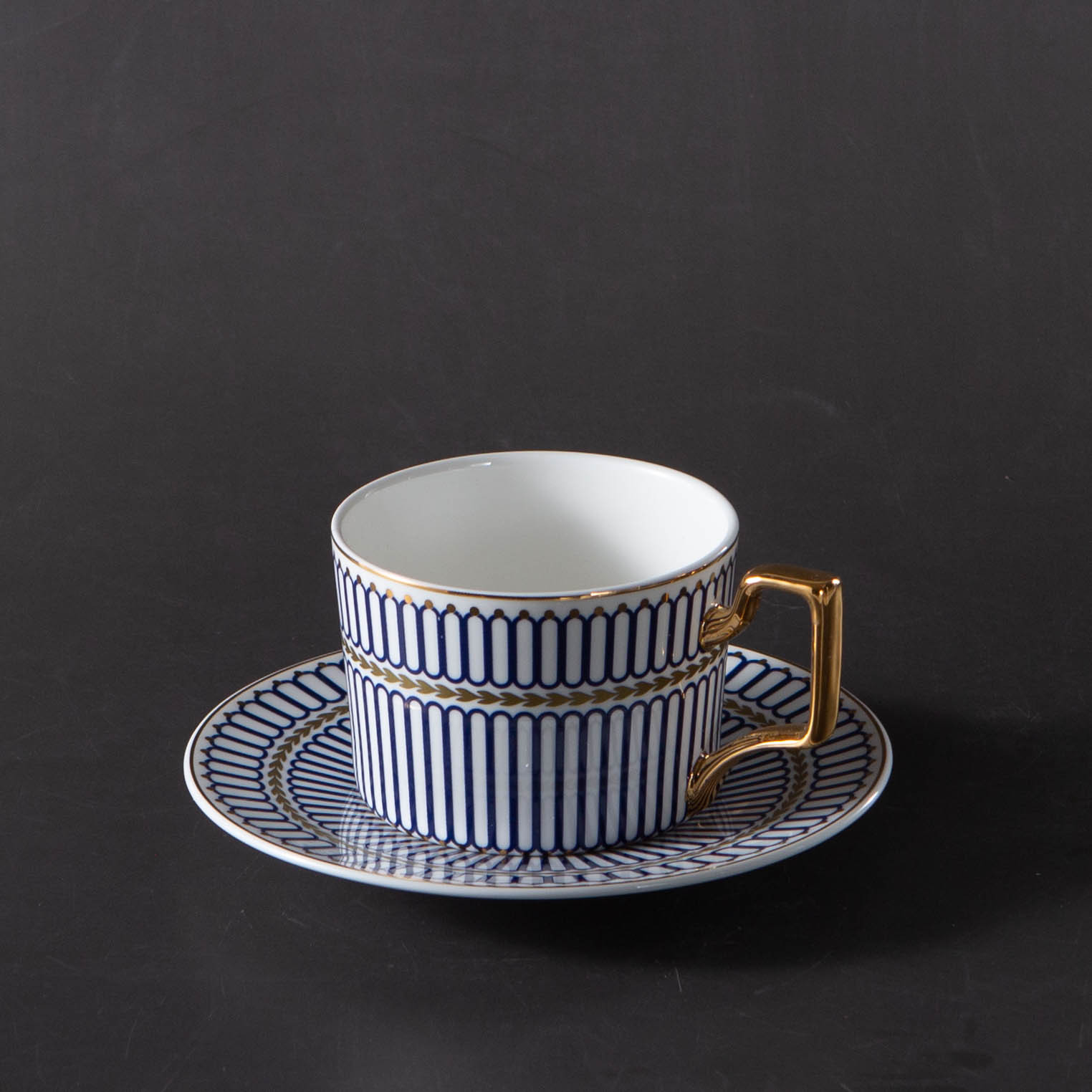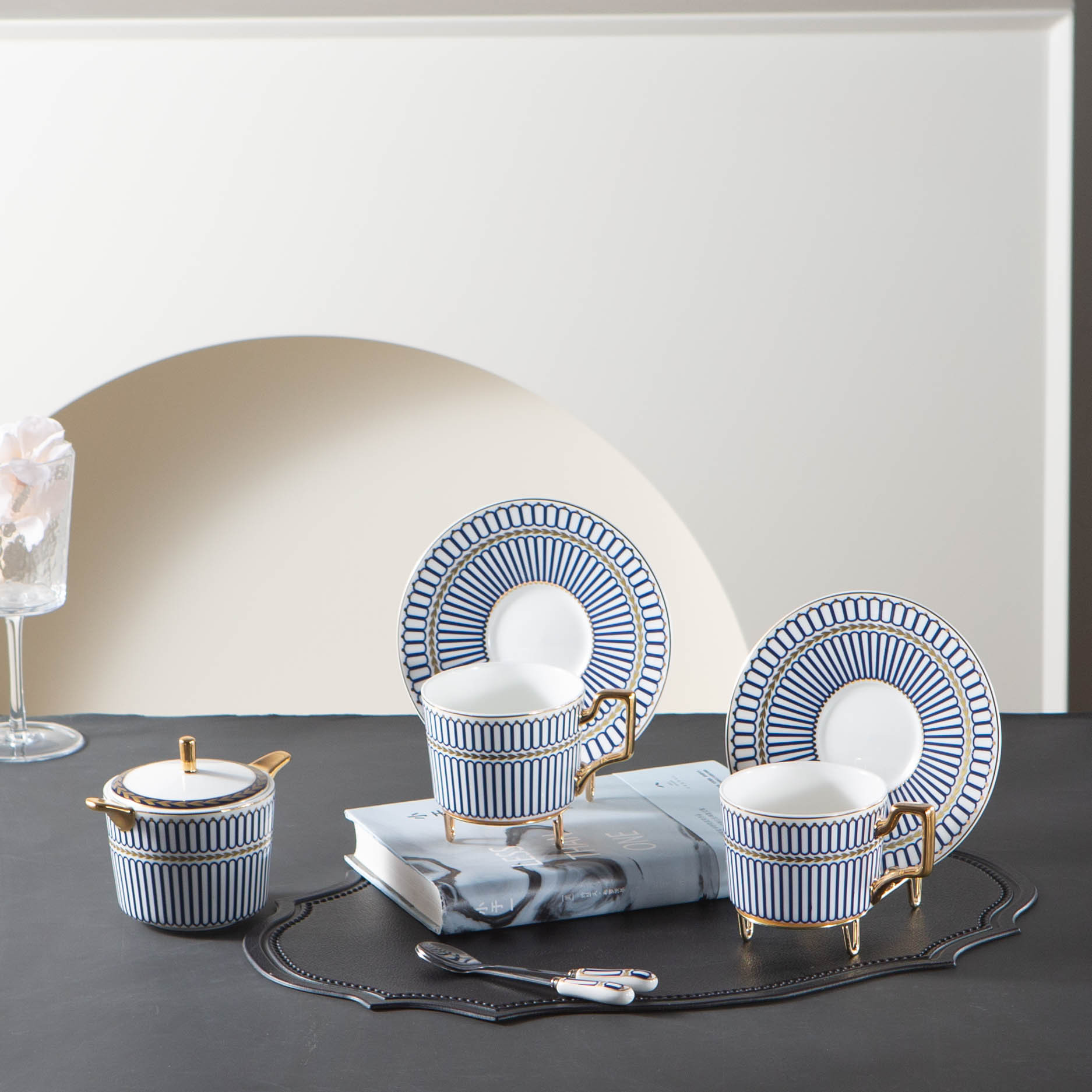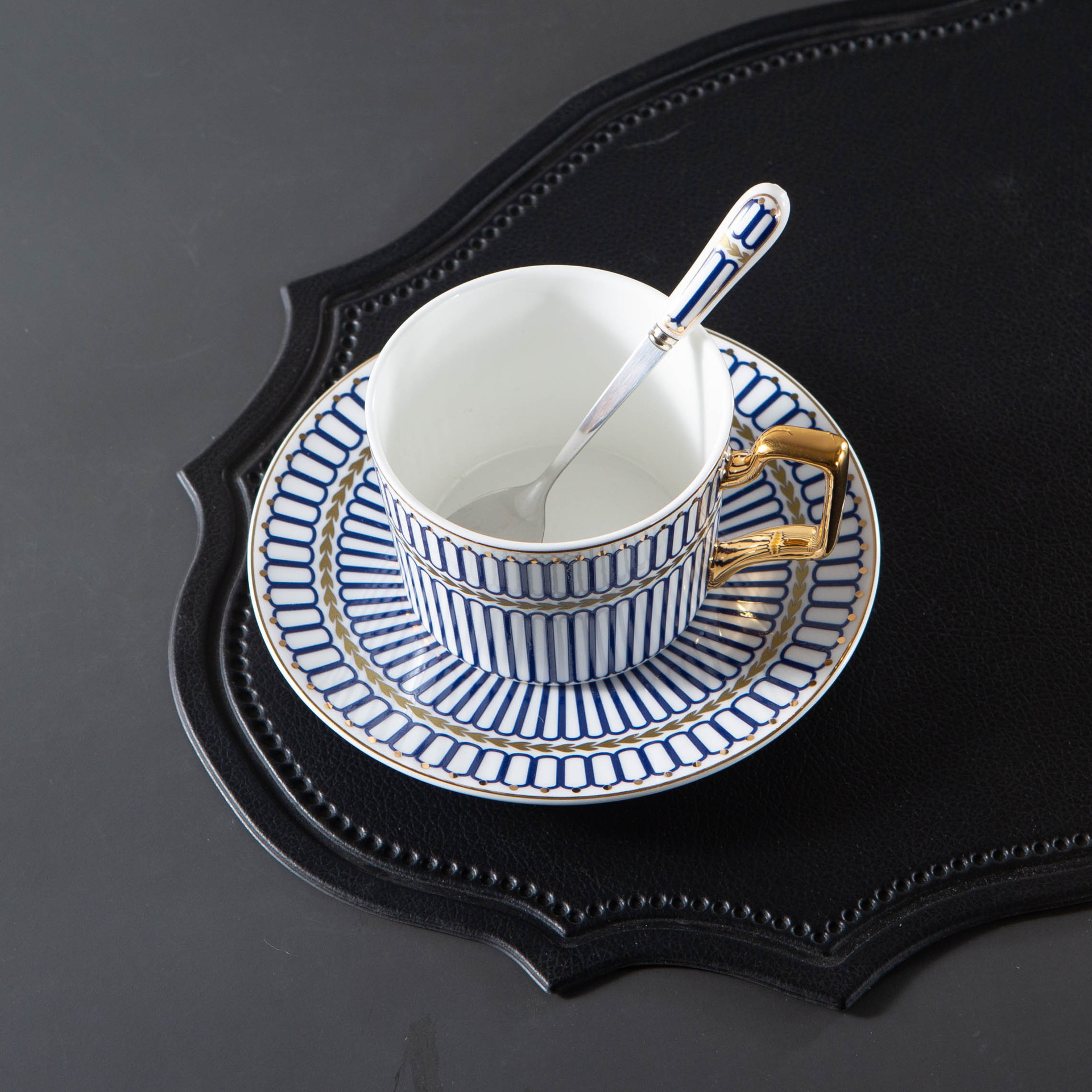 跨境骨瓷杯蓝色条纹拿铁拉花杯情侣杯甜品下午茶具轻奢高级咖啡杯