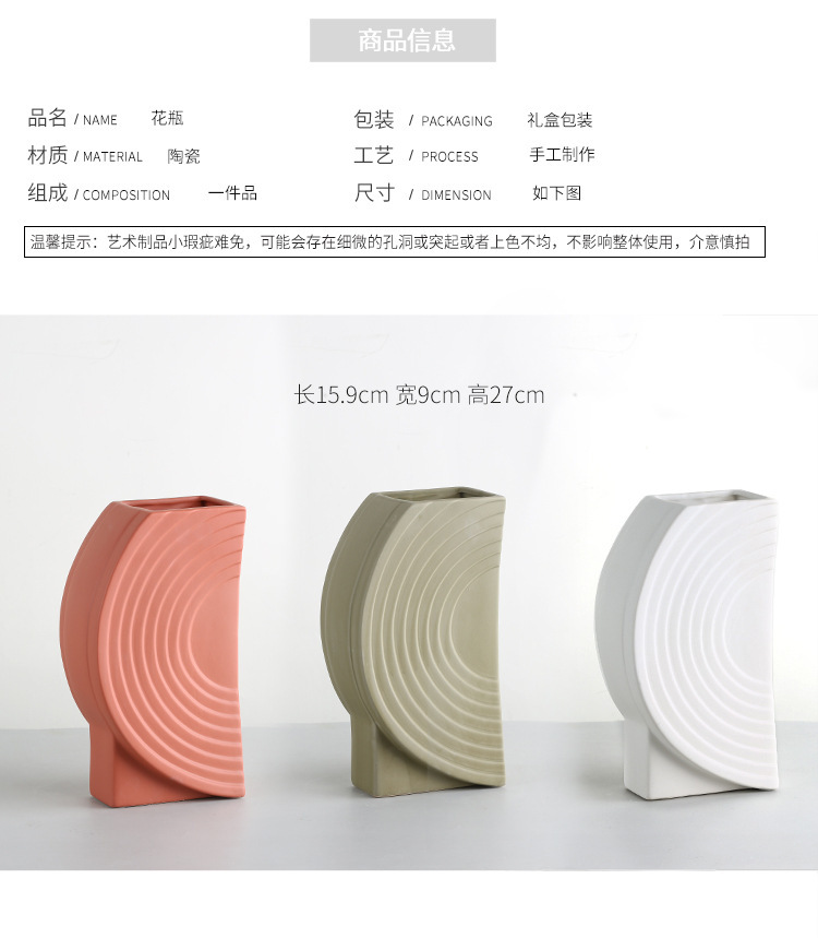 清仓 北欧创意哑光陶瓷花瓶家居装饰玄关餐桌书架摆件艺术品