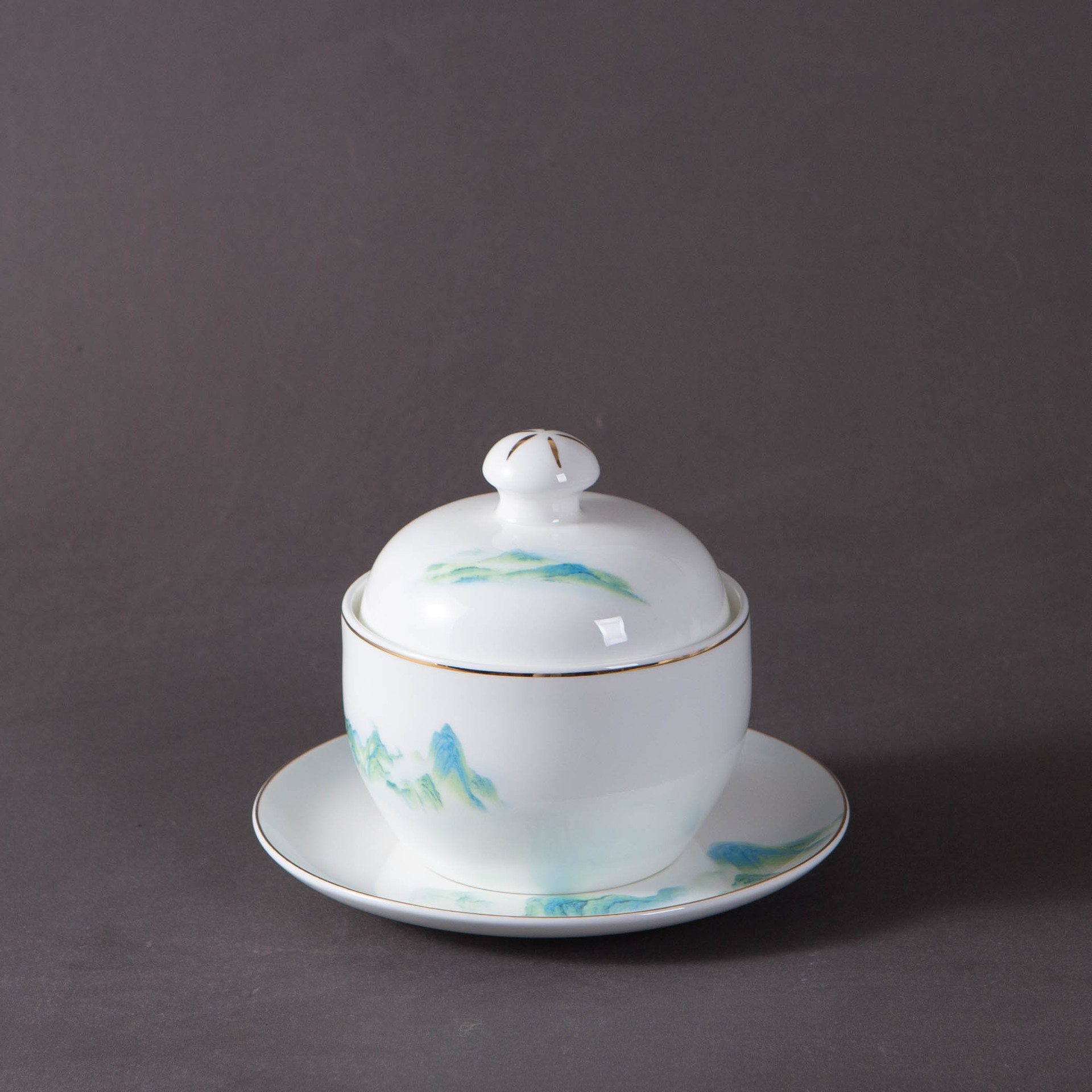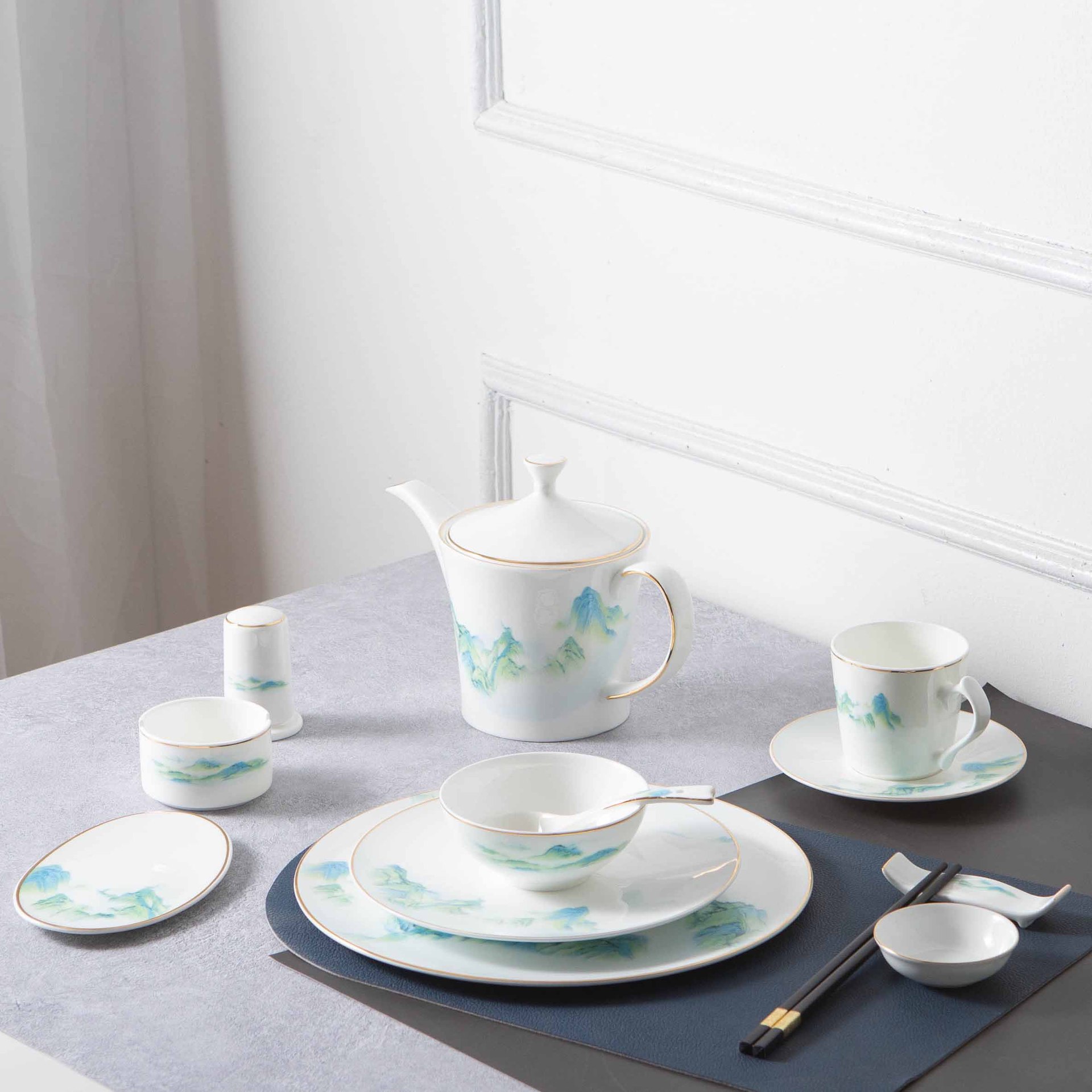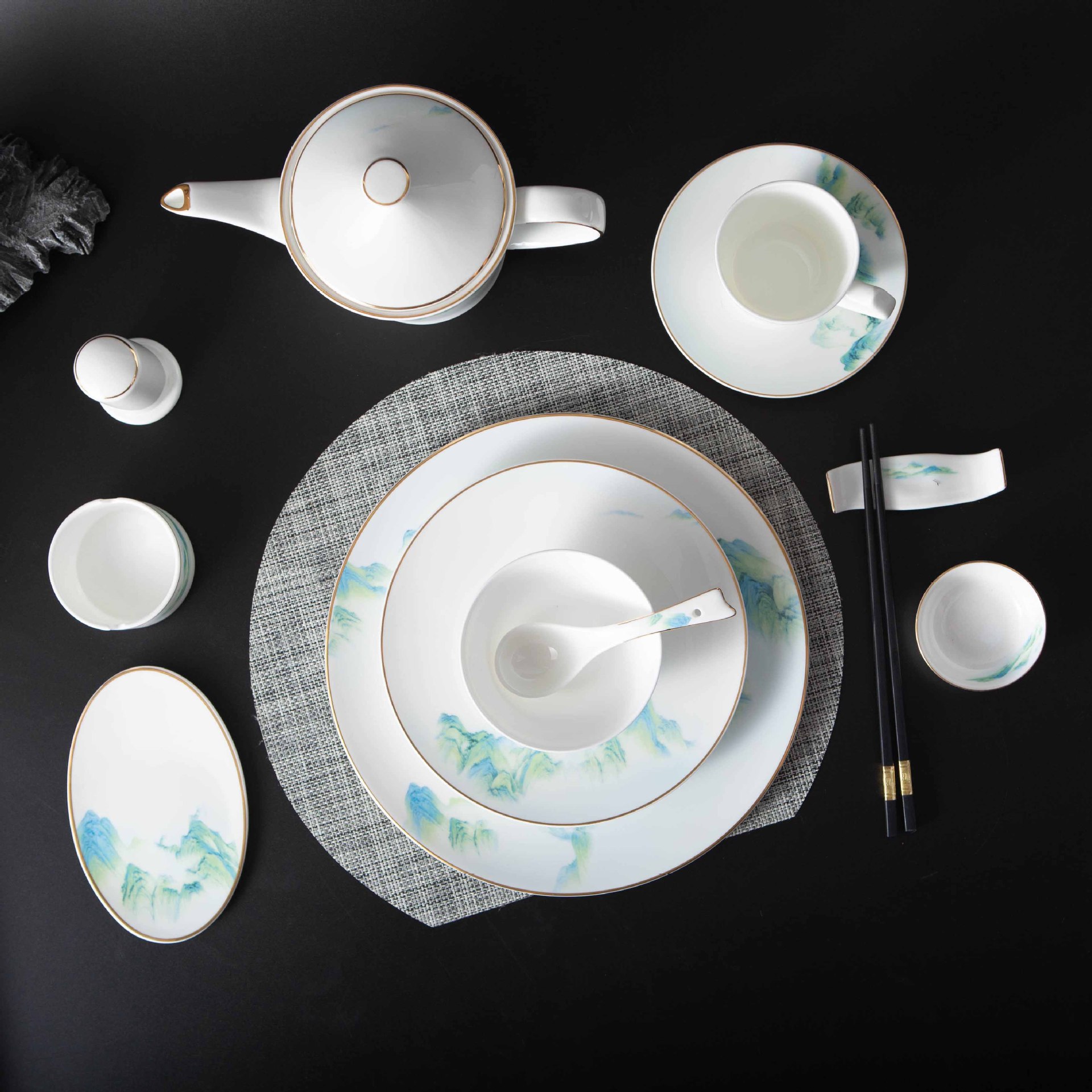 千山暮雪五星级酒店骨瓷餐具新中式描金浮雕碗盘碟包厢酒店摆台