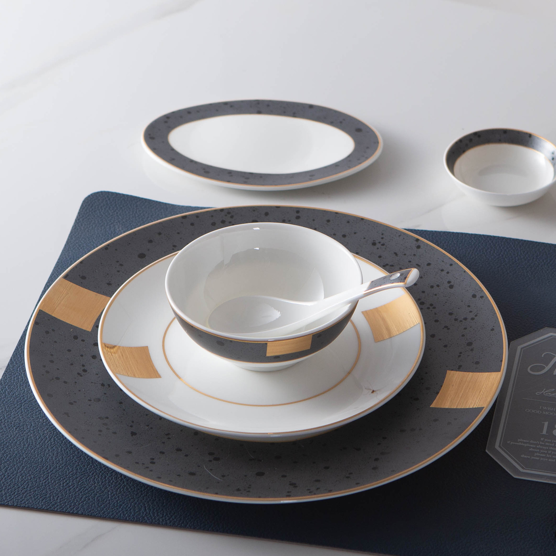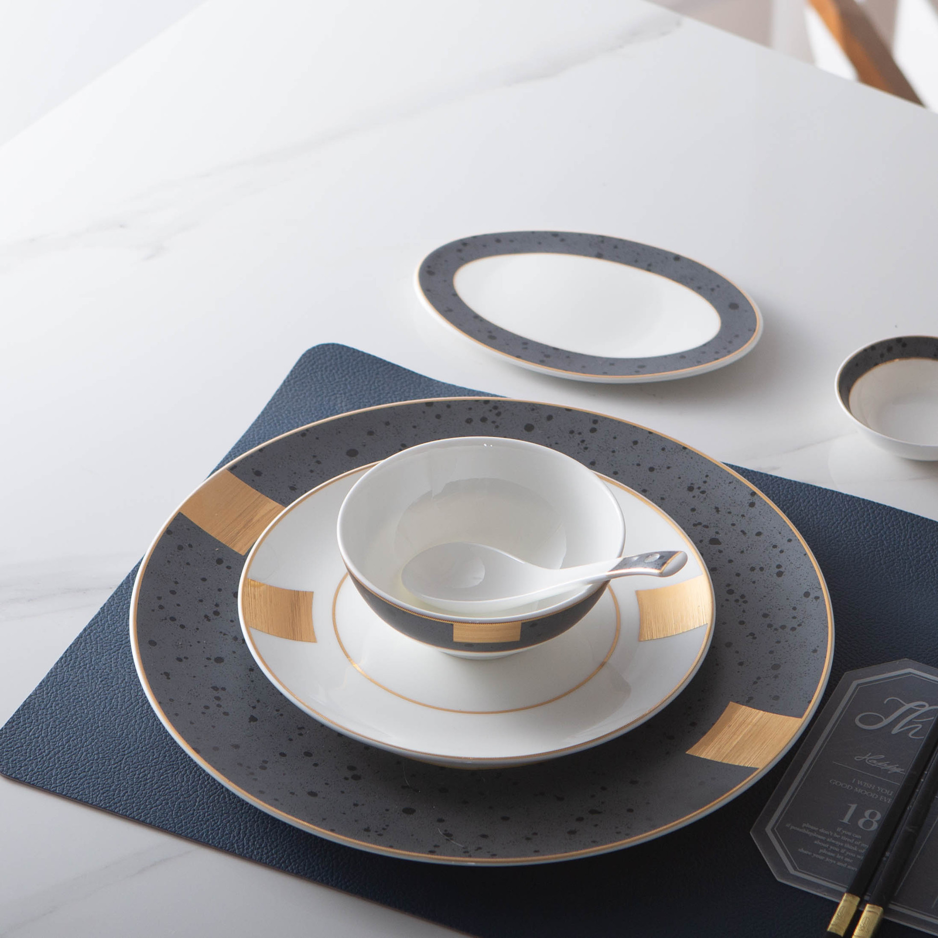 耐磨金哑光骨瓷陶瓷餐具简约西式高端会所包间酒店摆台可定LOGO