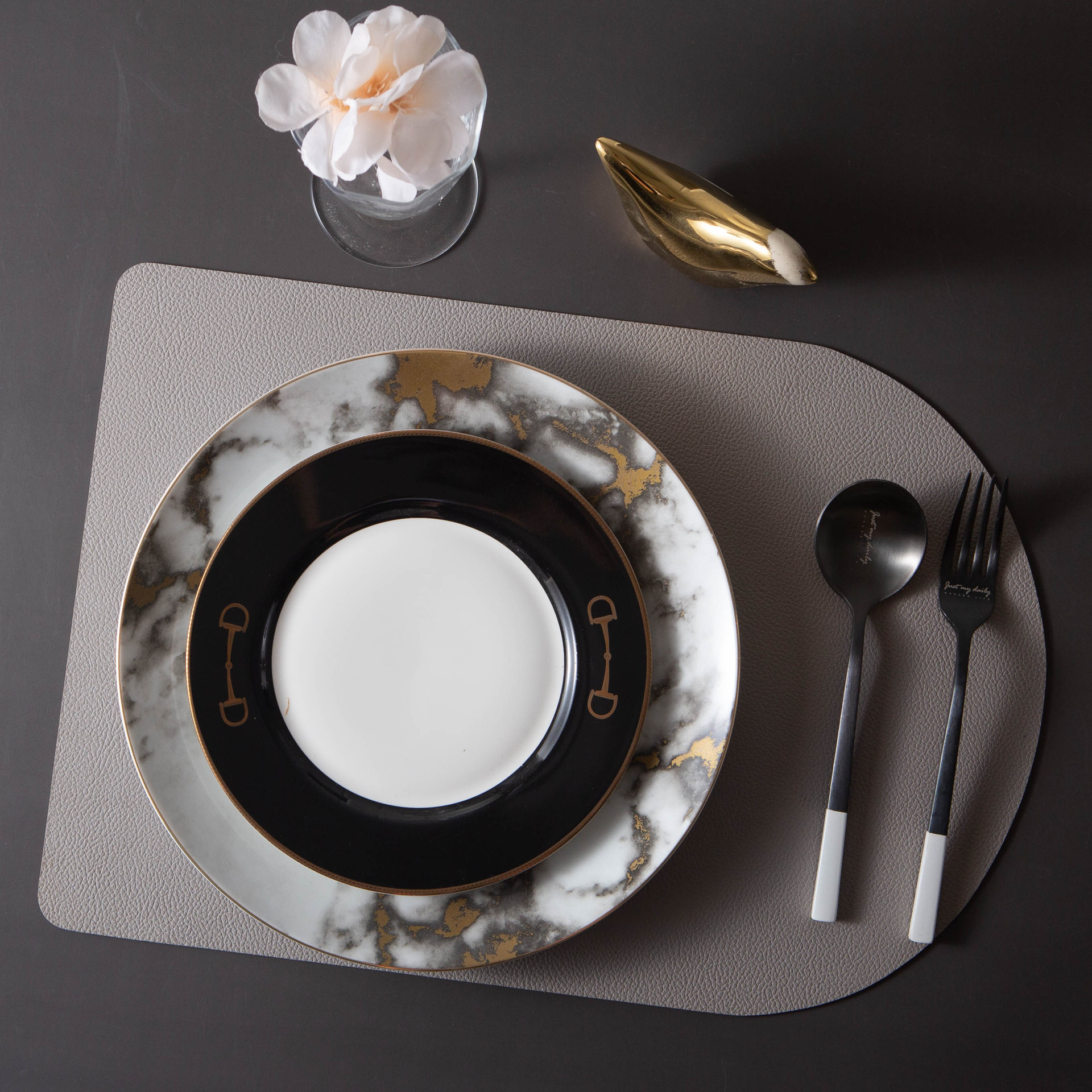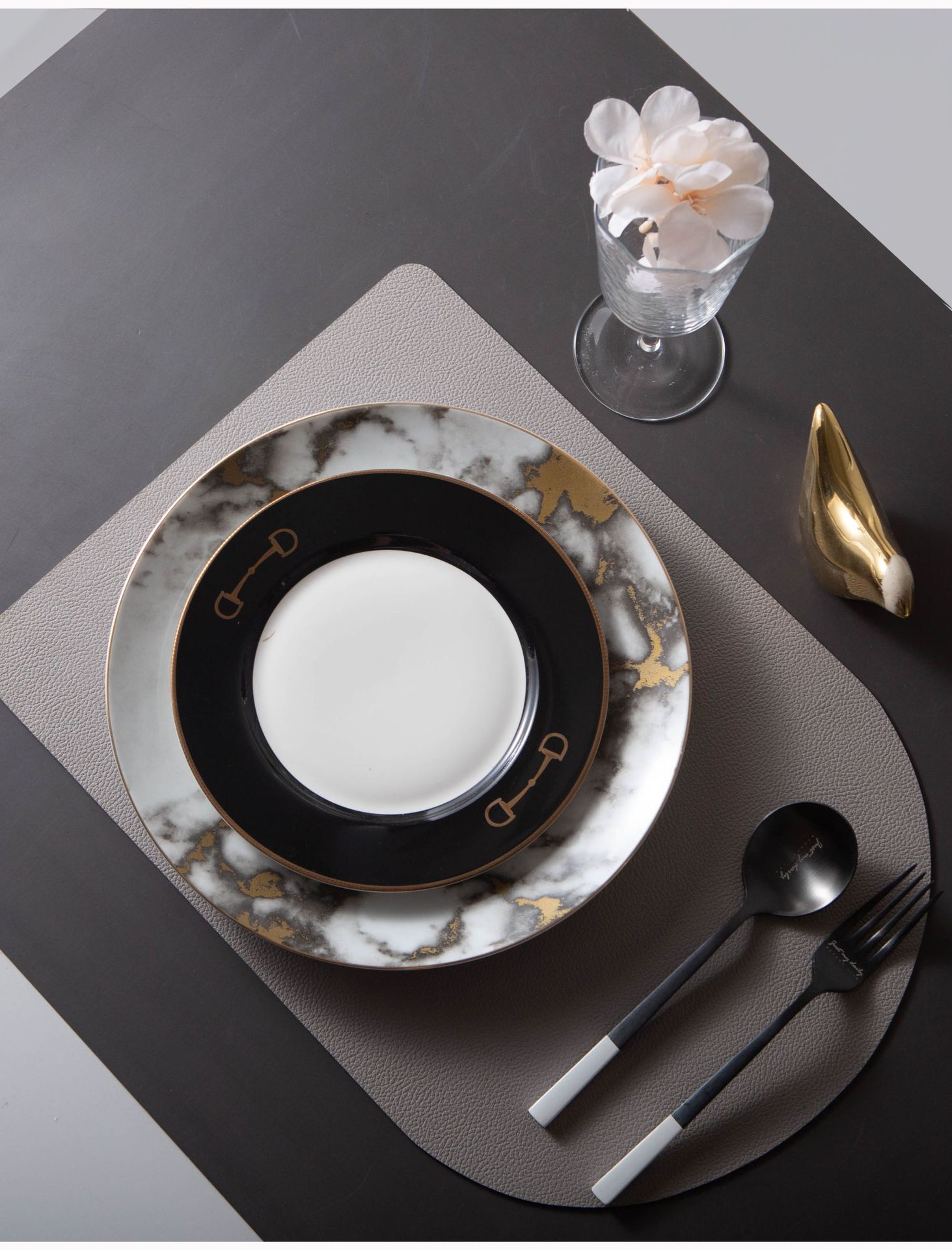 跨境浮雕金边黑色点心盘西餐盘轻奢简约陶瓷盘样板房摆件可定logo