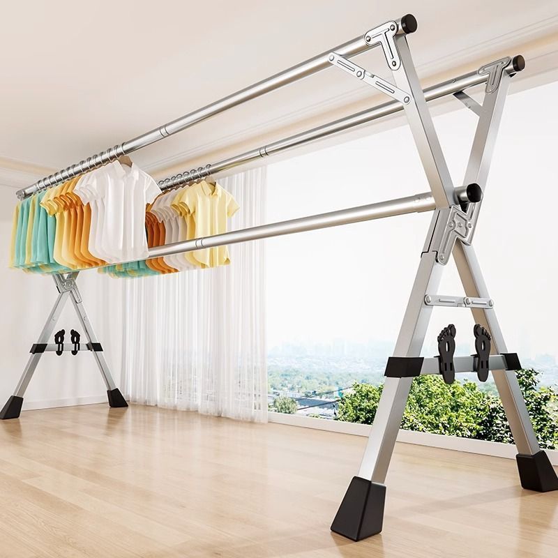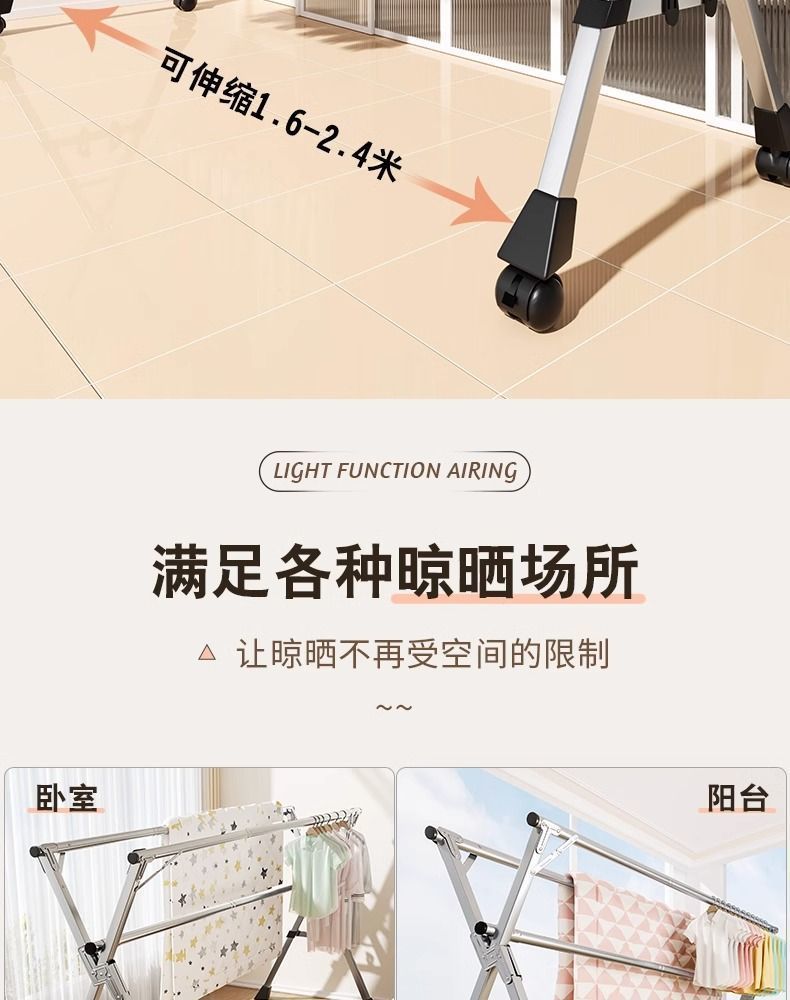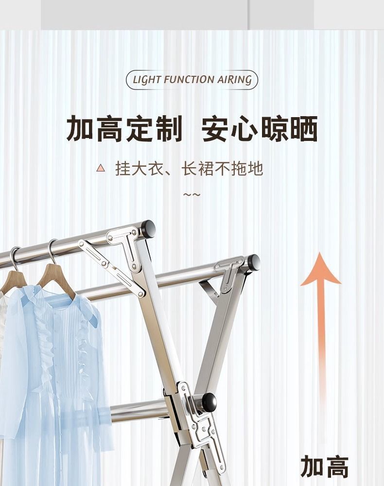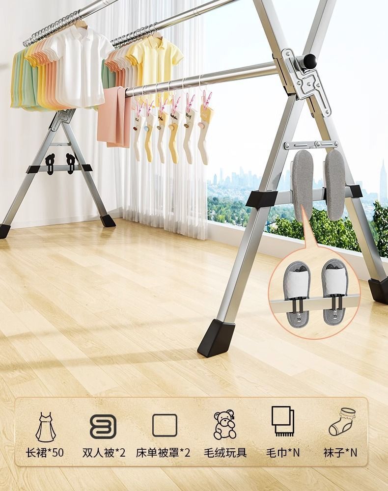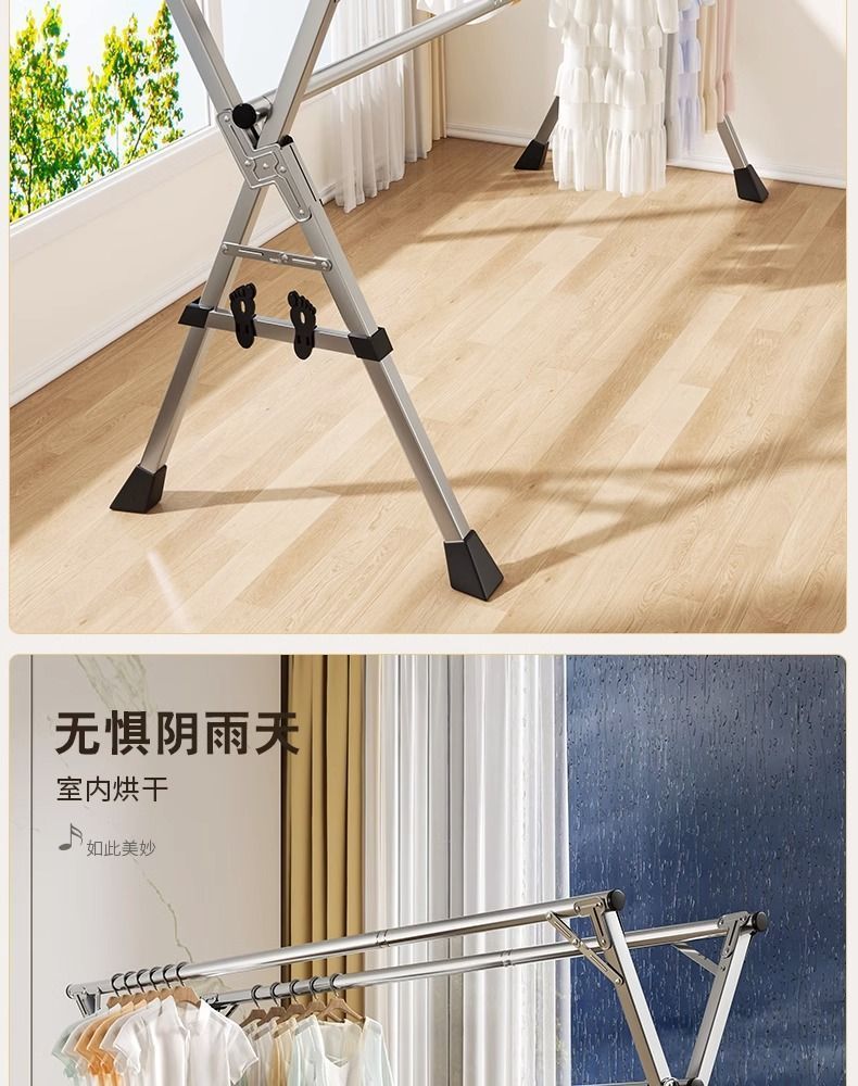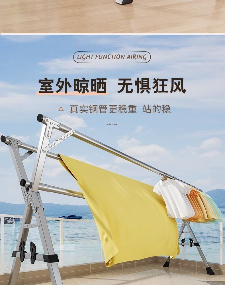 晾衣架落地折叠室内家用阳台卧室不锈钢室外凉伸缩杆式晒被子神器