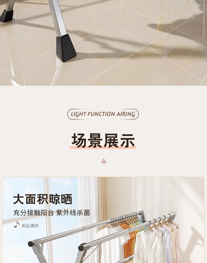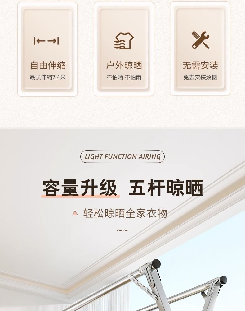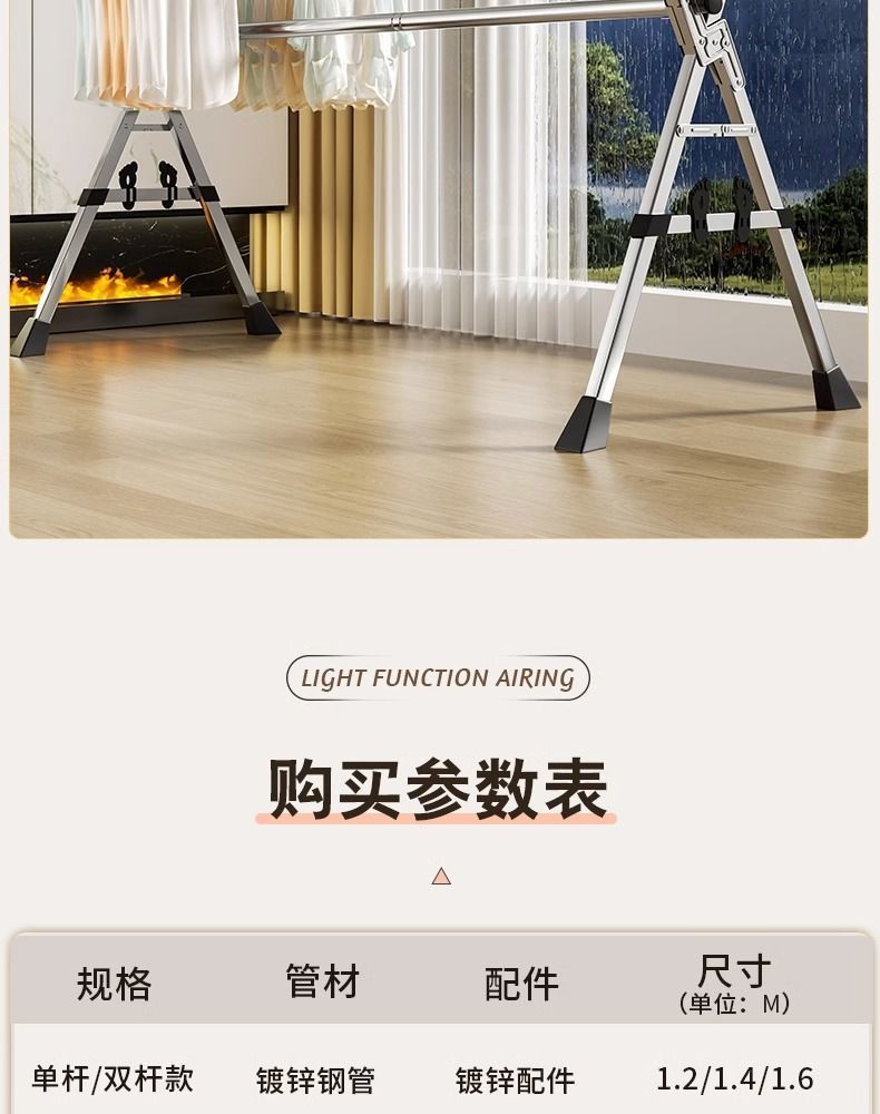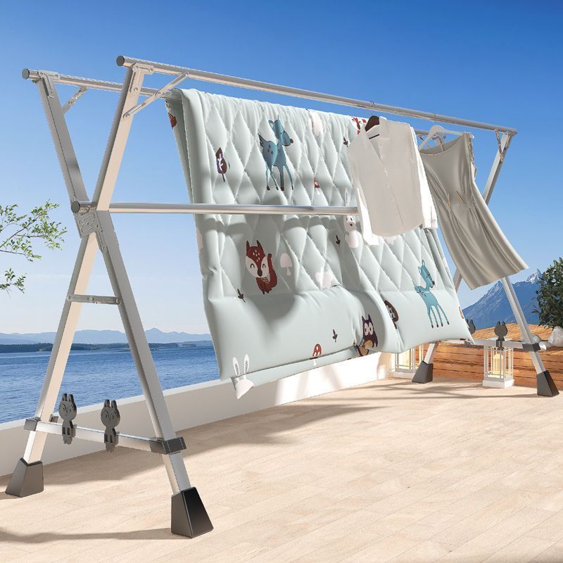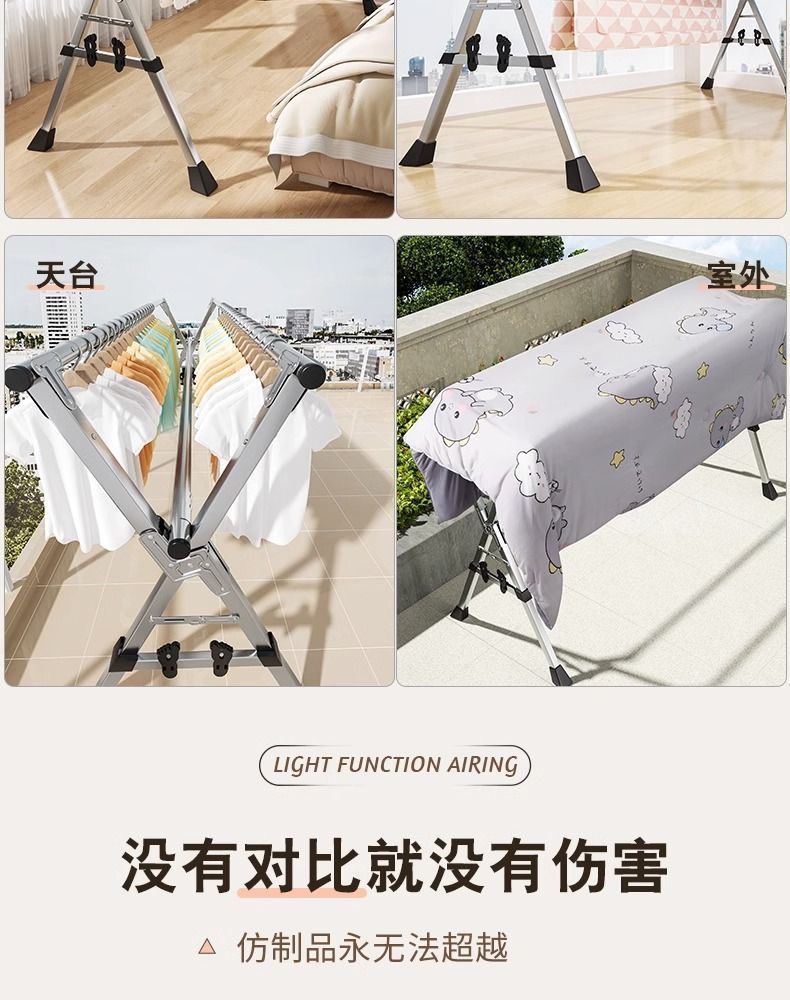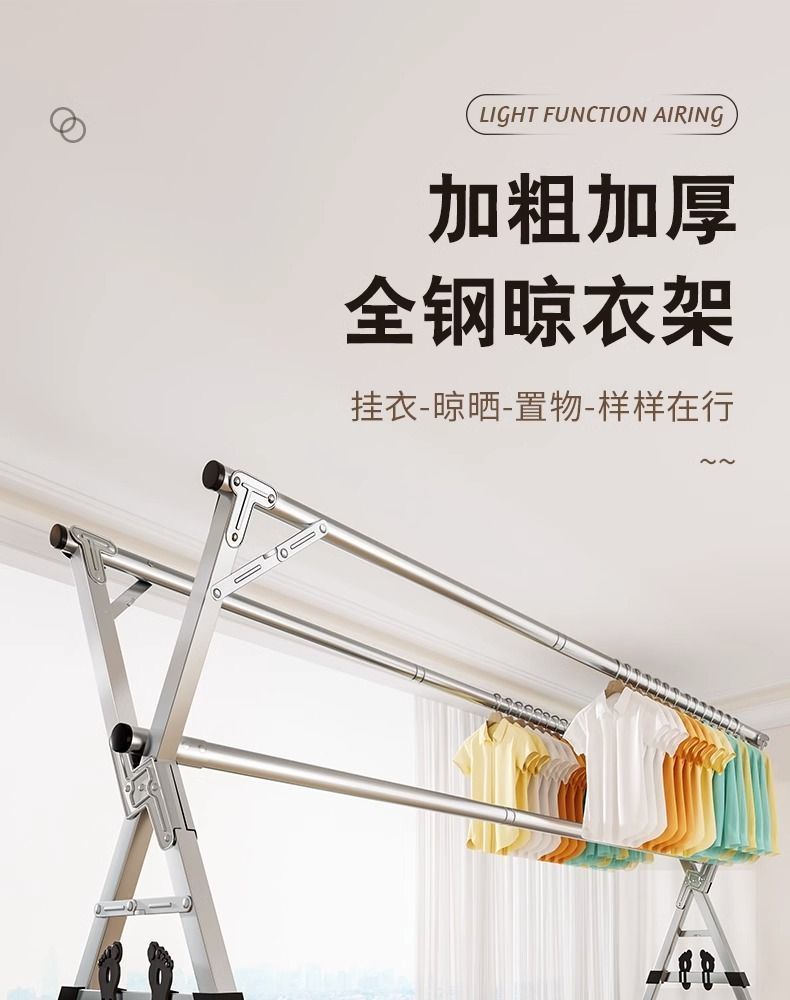 晾衣架落地折叠室内家用阳台卧室不锈钢室外凉伸缩杆式晒被子神器