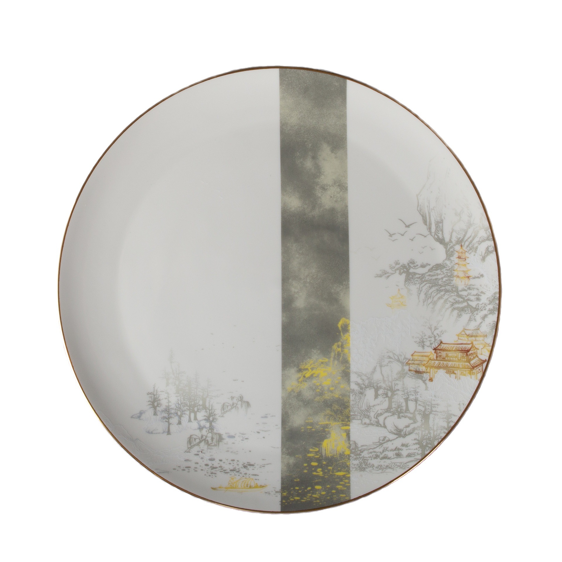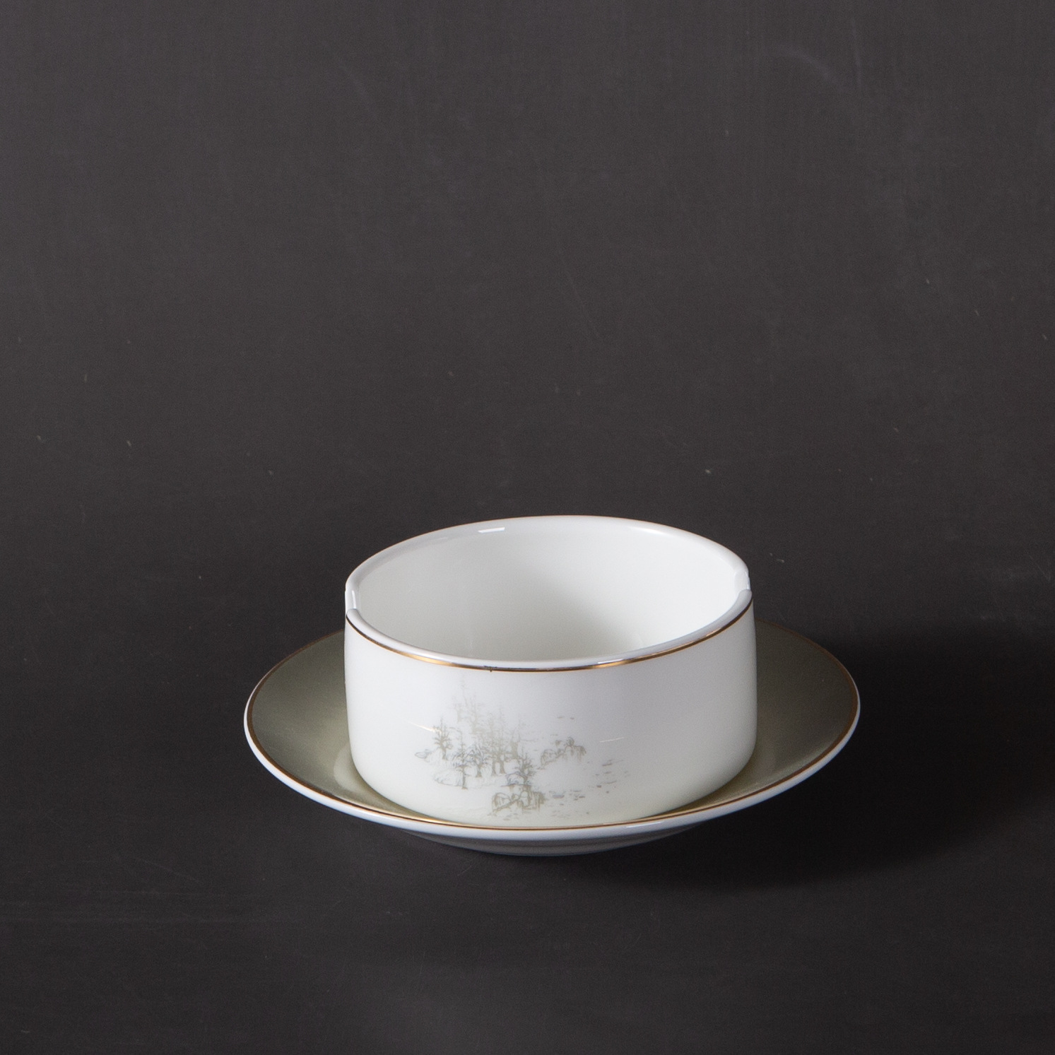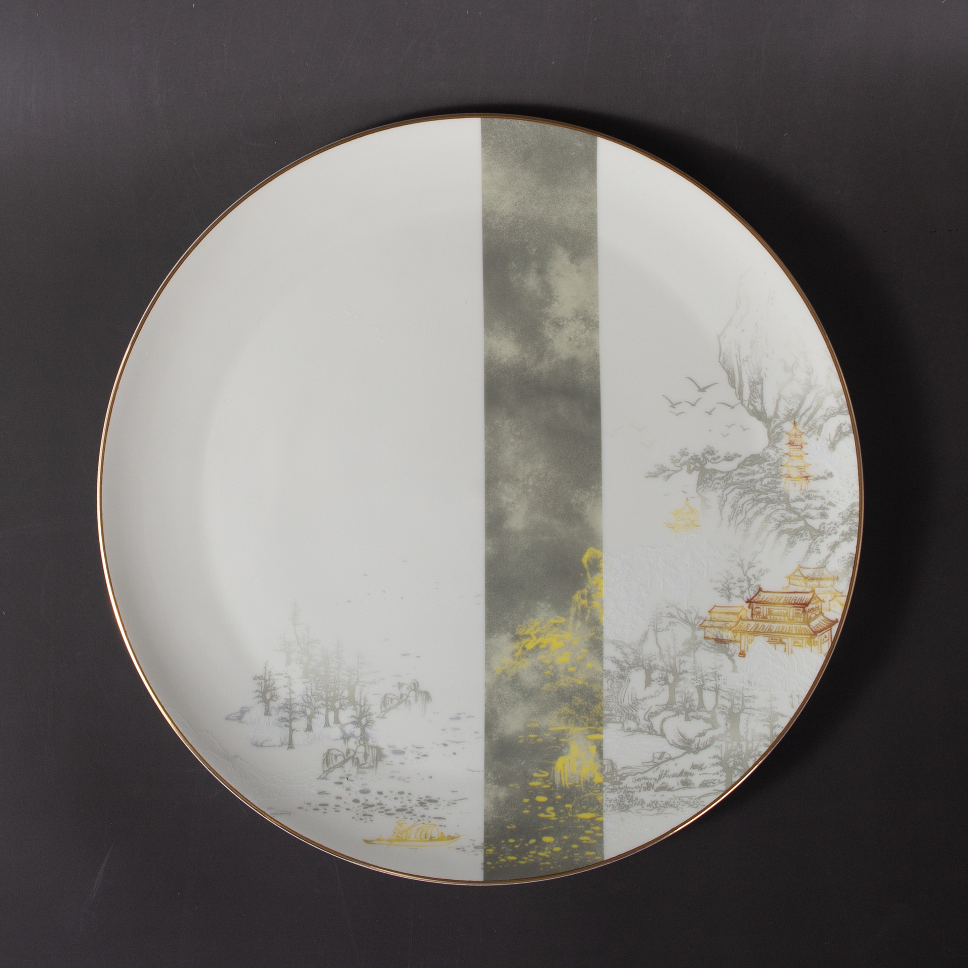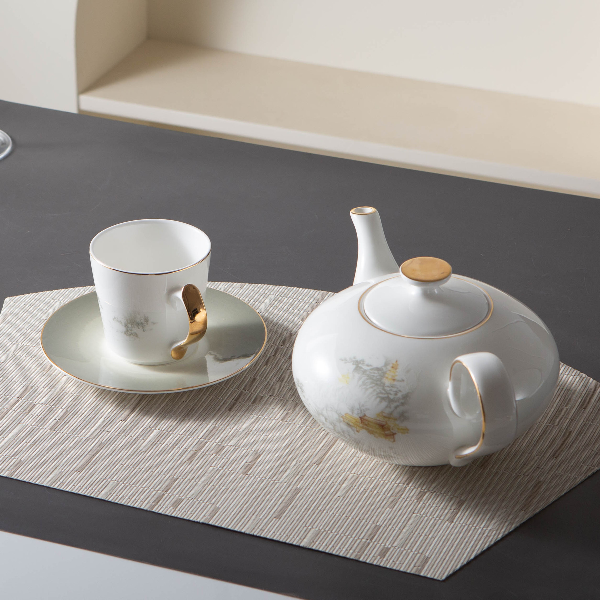 新中式华灯初上骨瓷碗盘碟杯套装手描金边私人会所包厢酒店摆台餐
