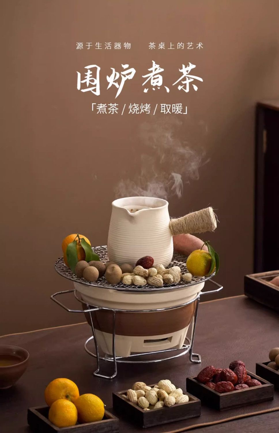 网红罐罐烤奶茶壶中式围炉煮壶耐高温侧把壶家用室内木烤奶套装