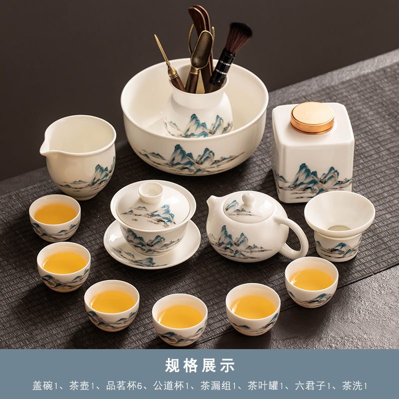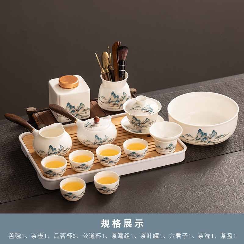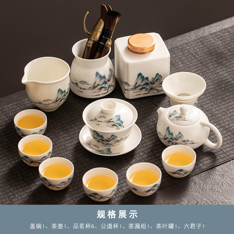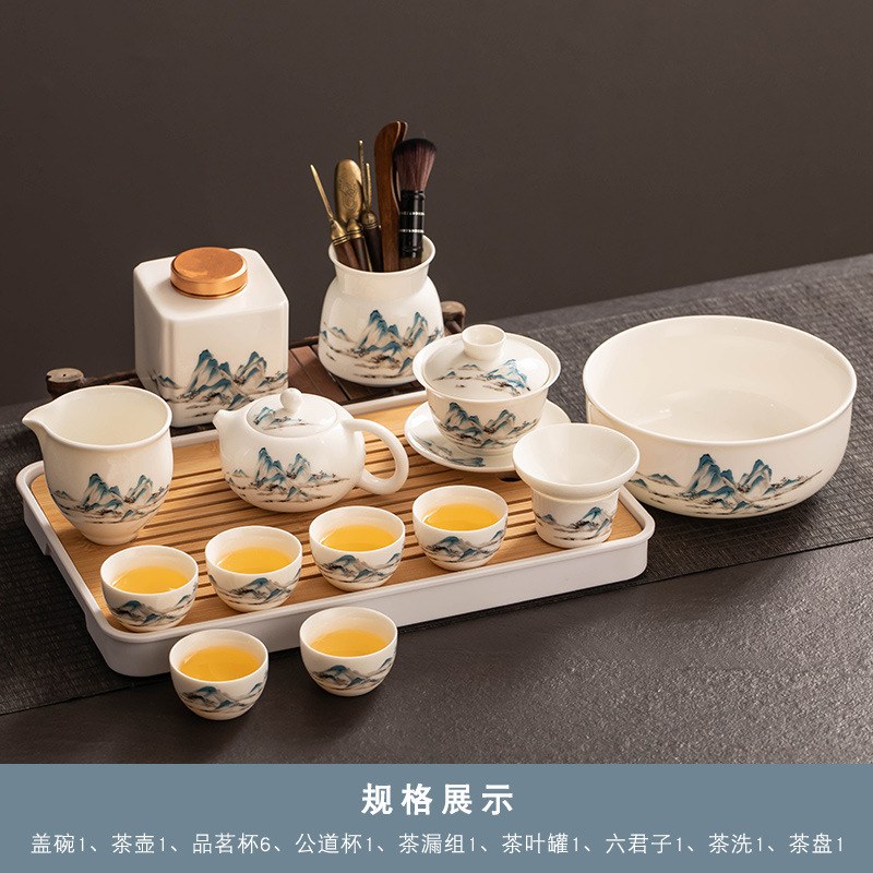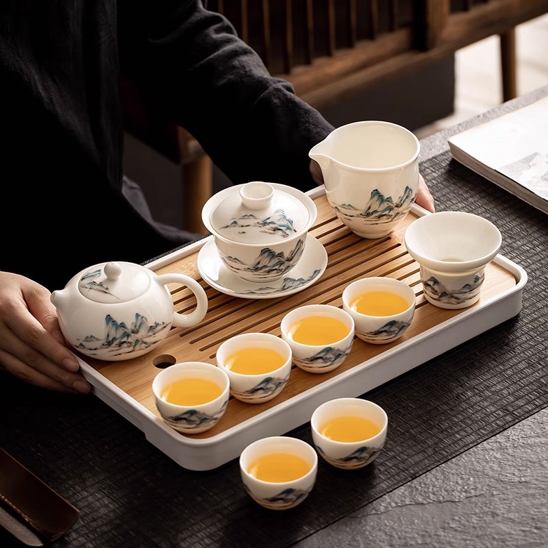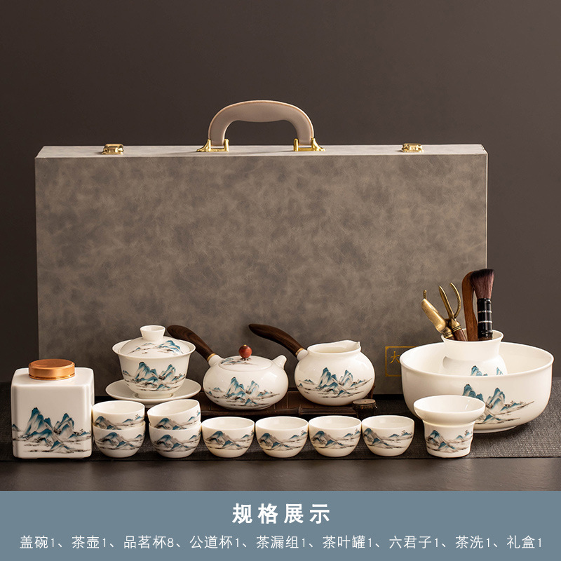 羊脂玉白瓷茶具套装家用会客泡茶功夫茶杯陶瓷茶壶高档轻奢送礼盒