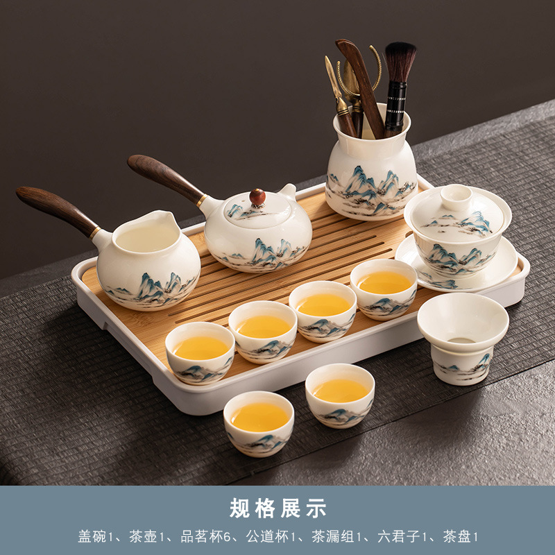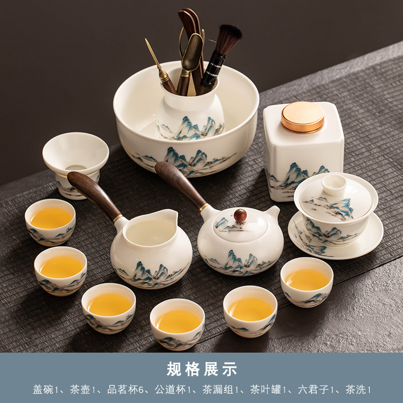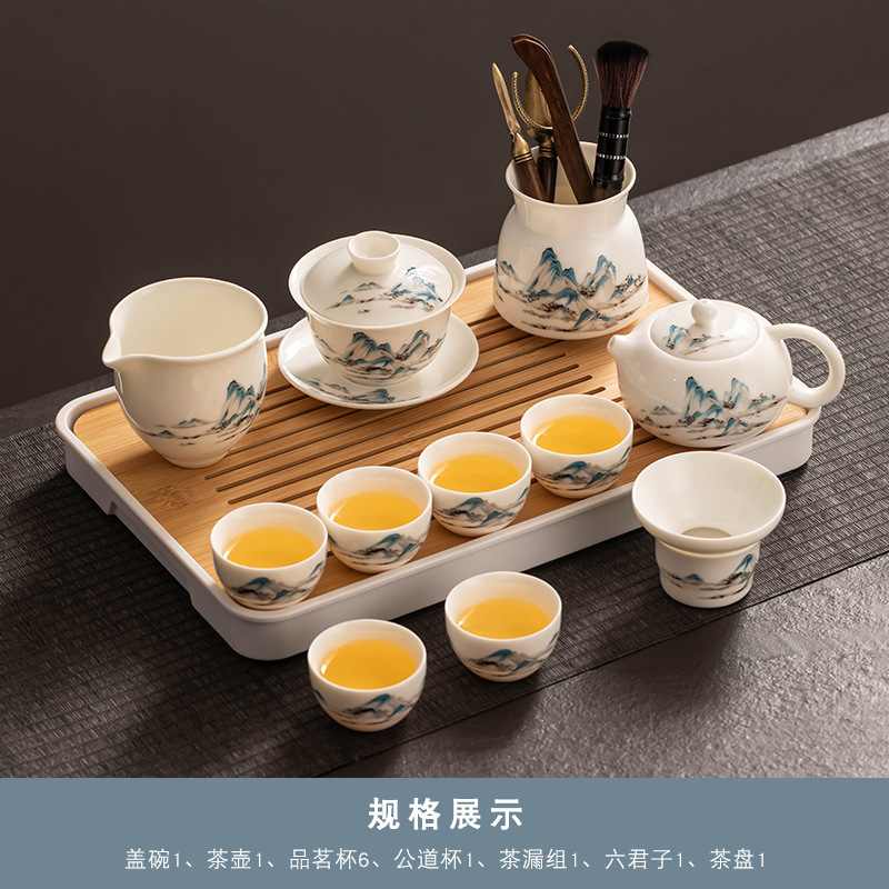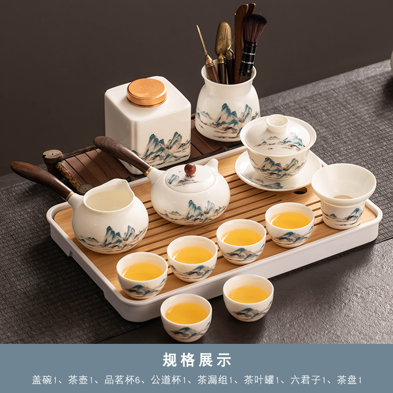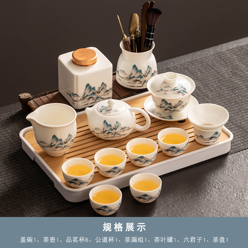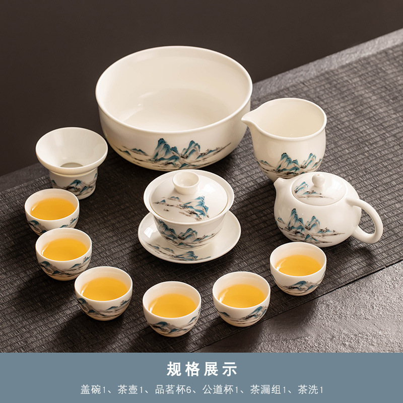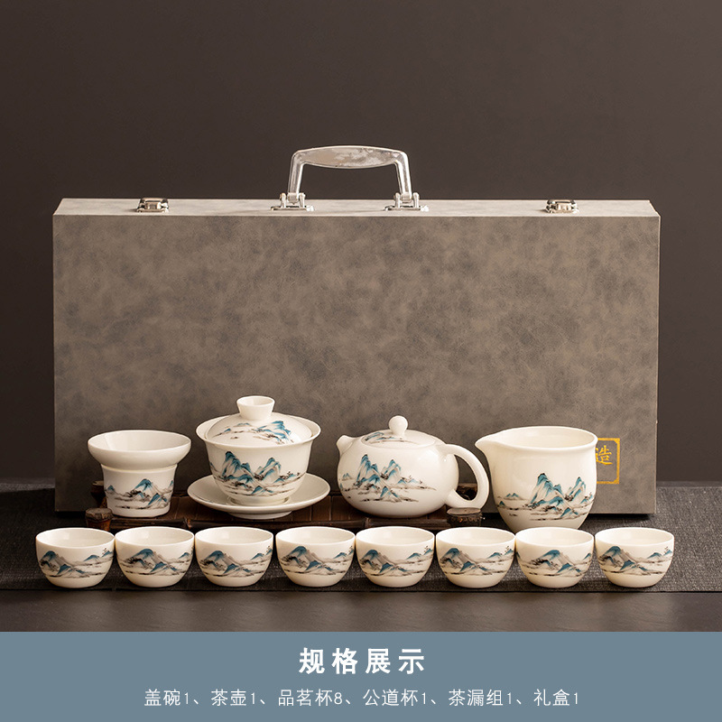 羊脂玉白瓷茶具套装家用会客泡茶功夫茶杯陶瓷茶壶高档轻奢送礼盒