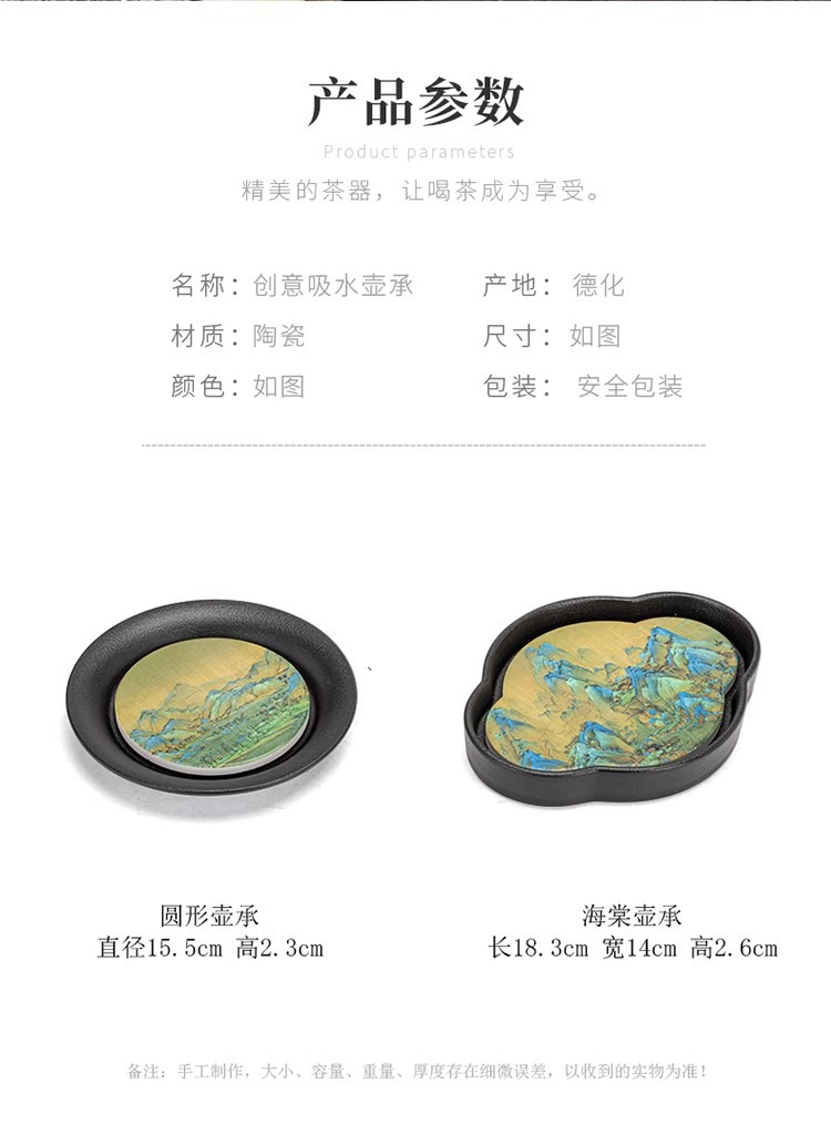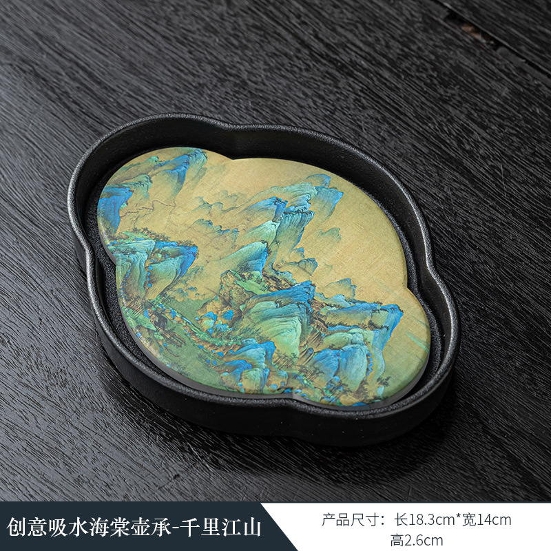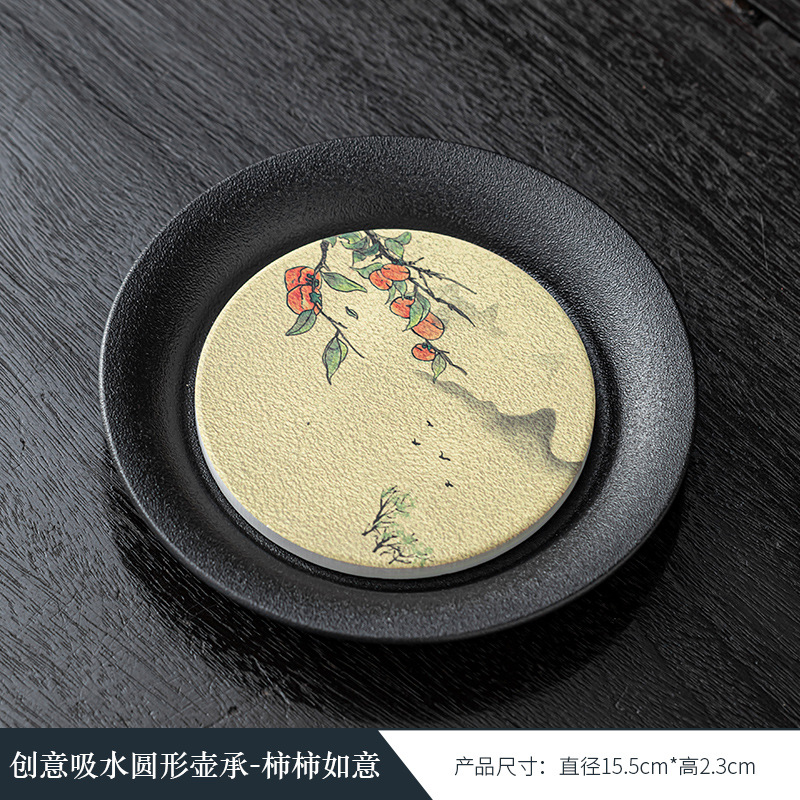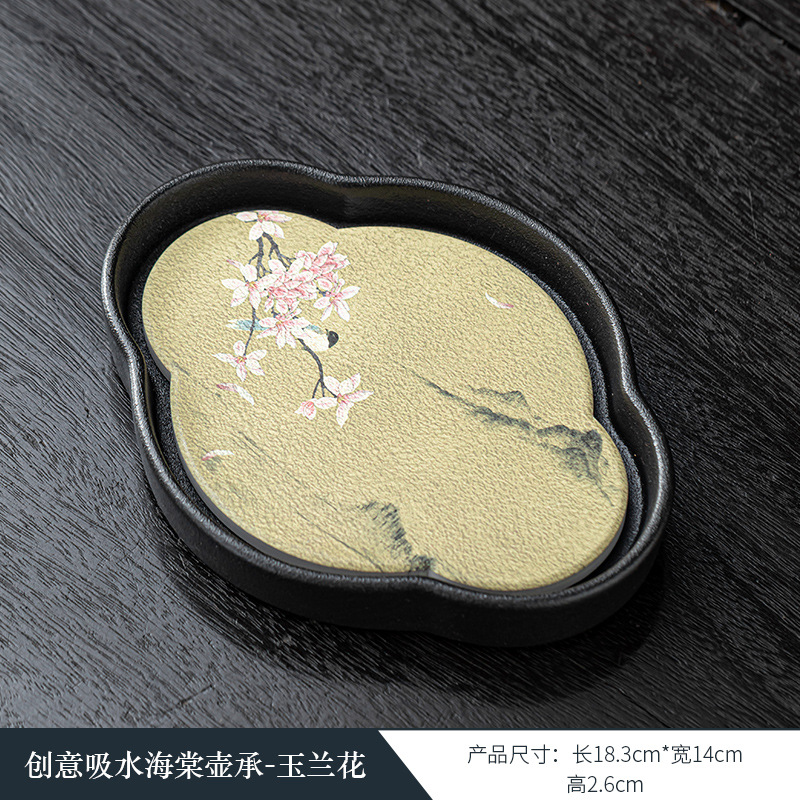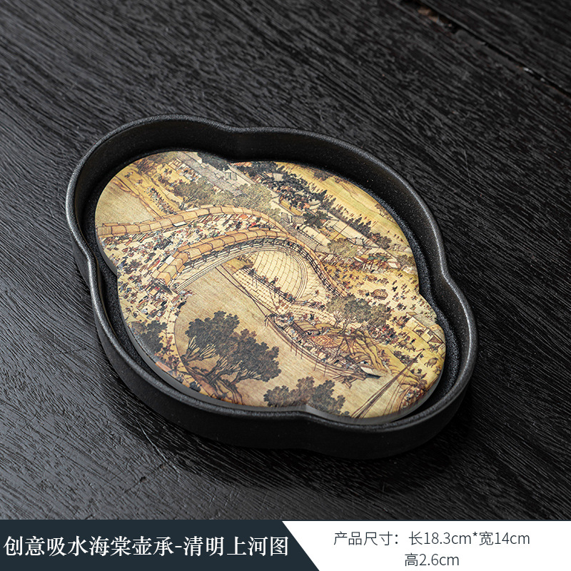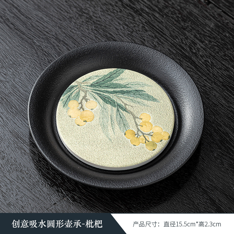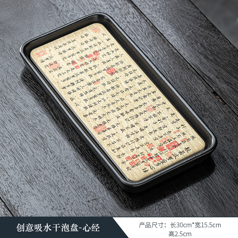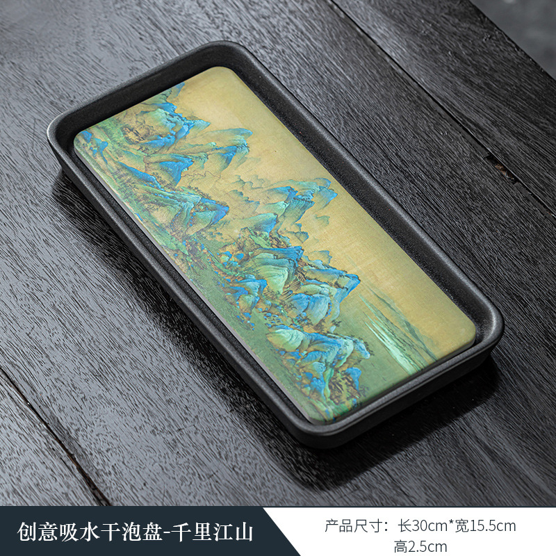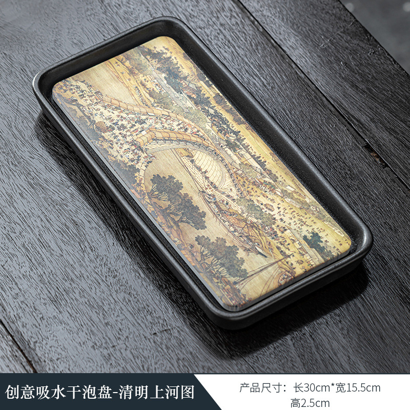 黑陶复古吸水壶承干泡台中式速干小型茶盘 国潮功夫茶具茶托盘