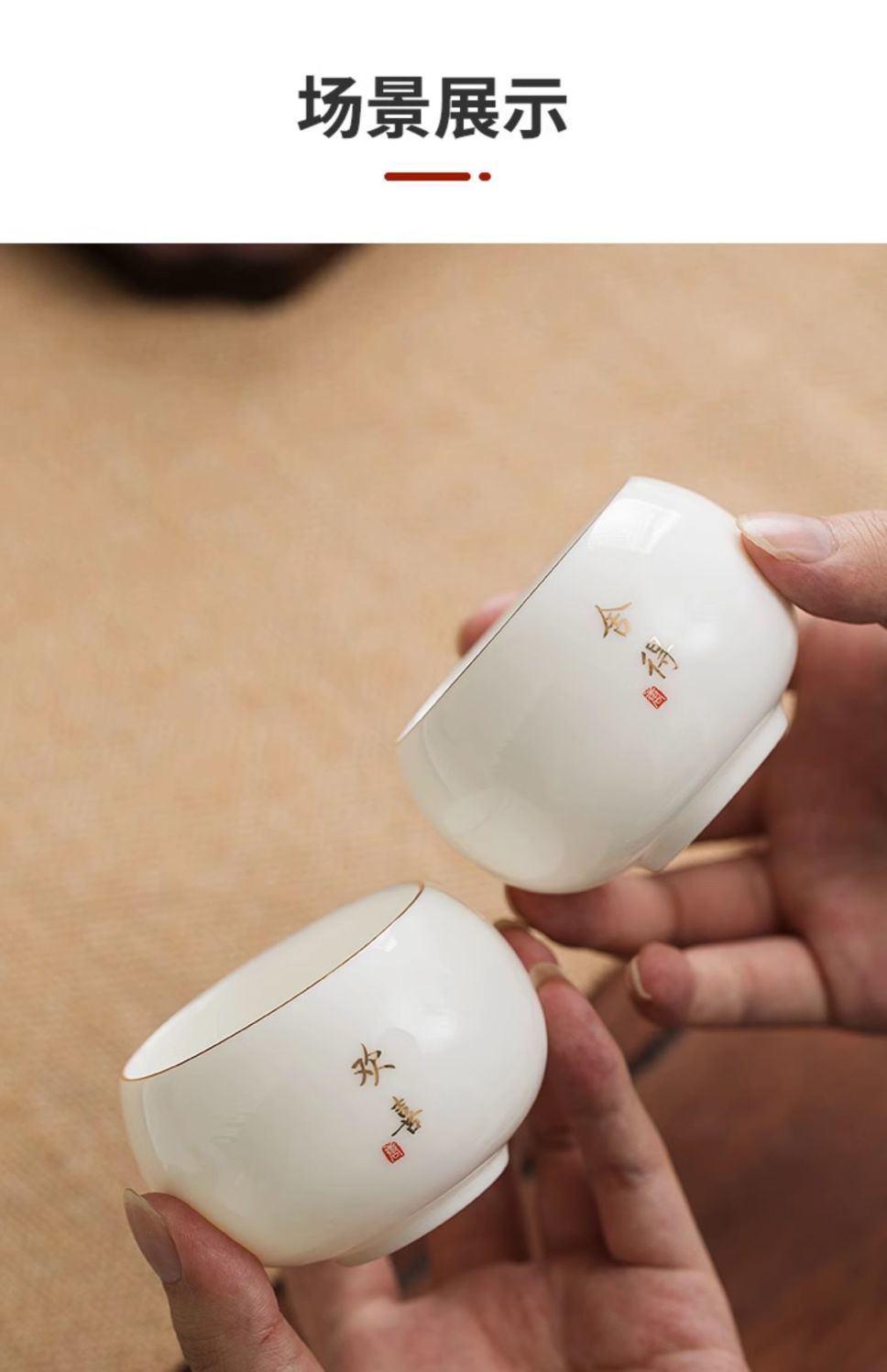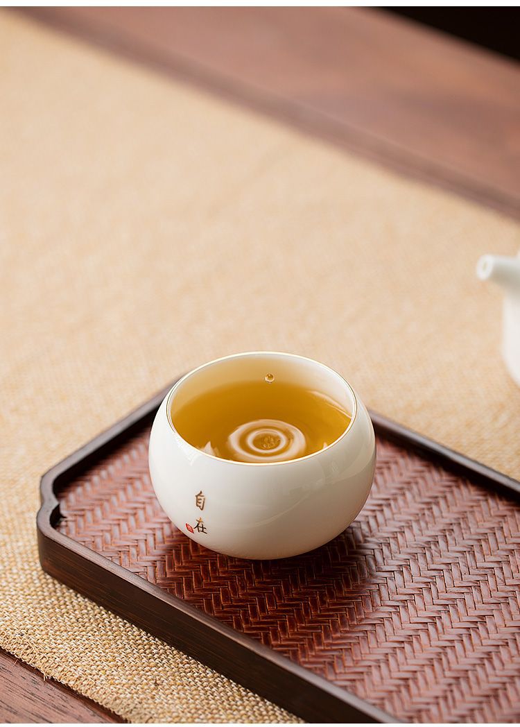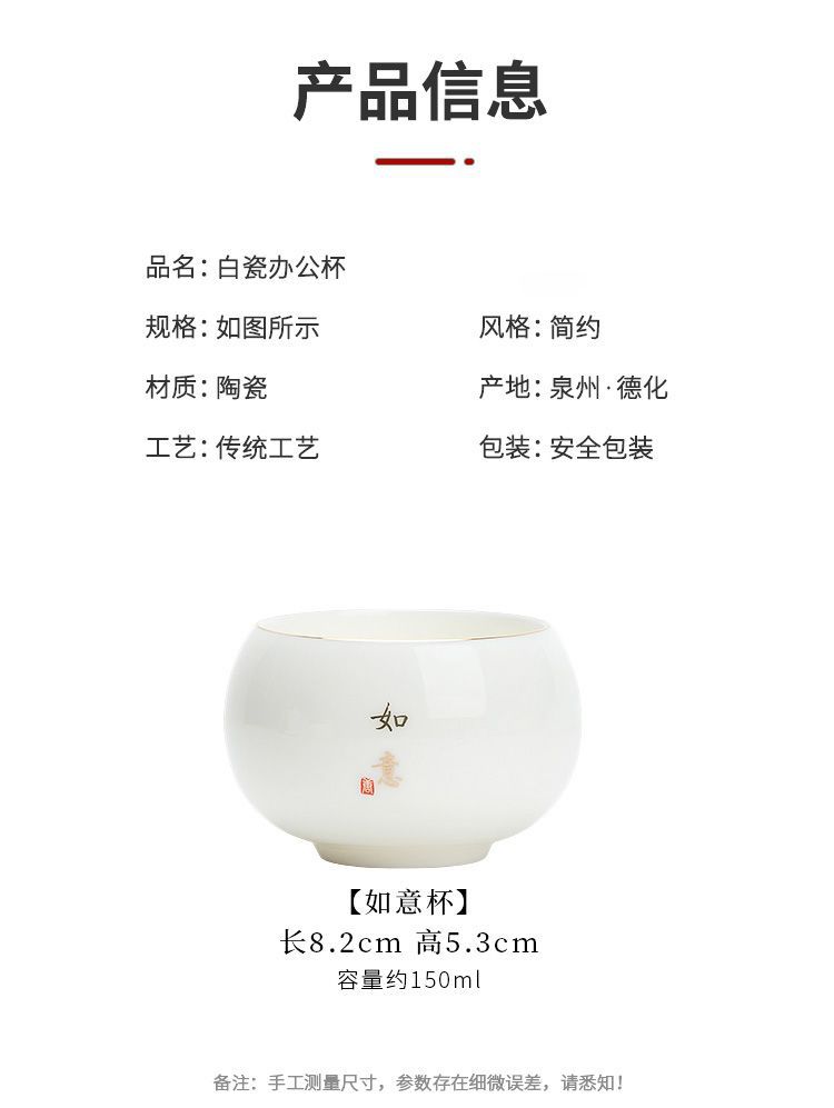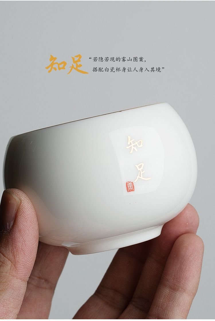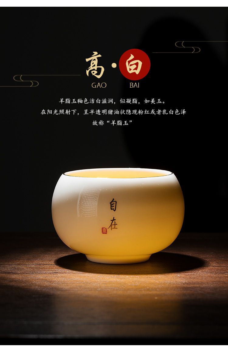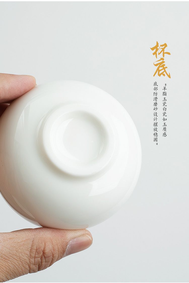 德化羊脂玉白瓷茶杯个人专用手绘主人杯高档陶瓷家用单杯品茗杯