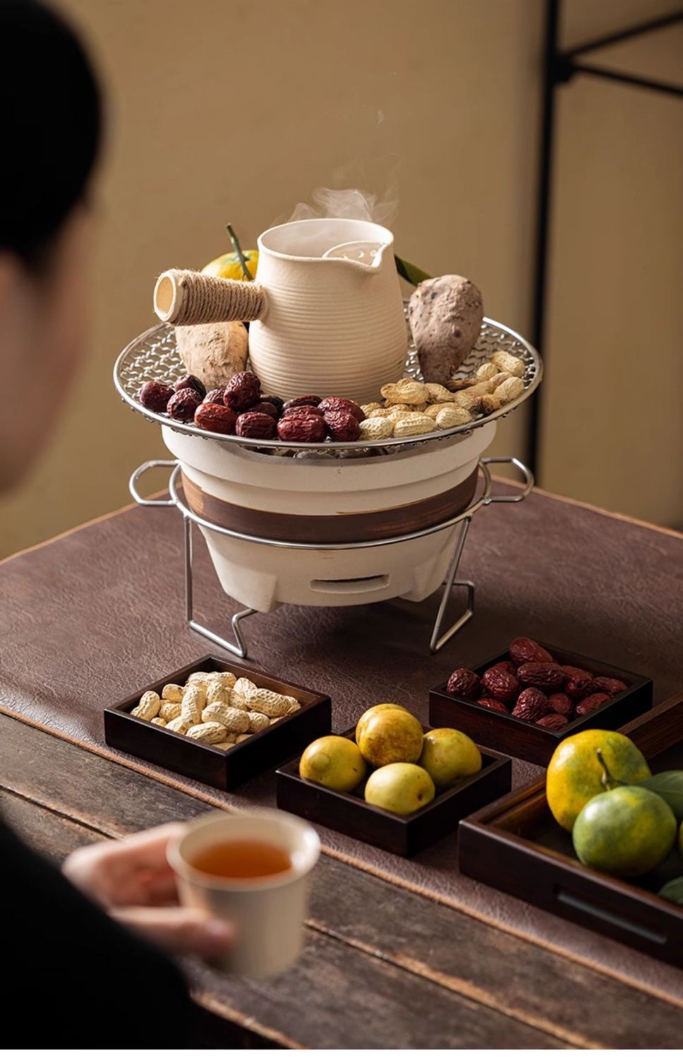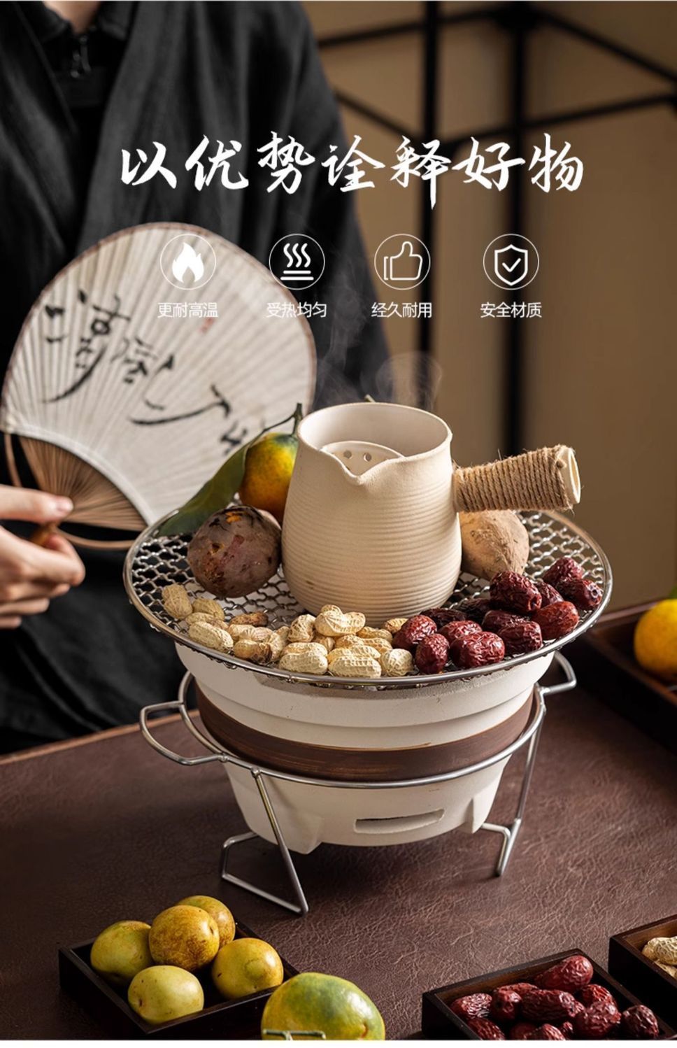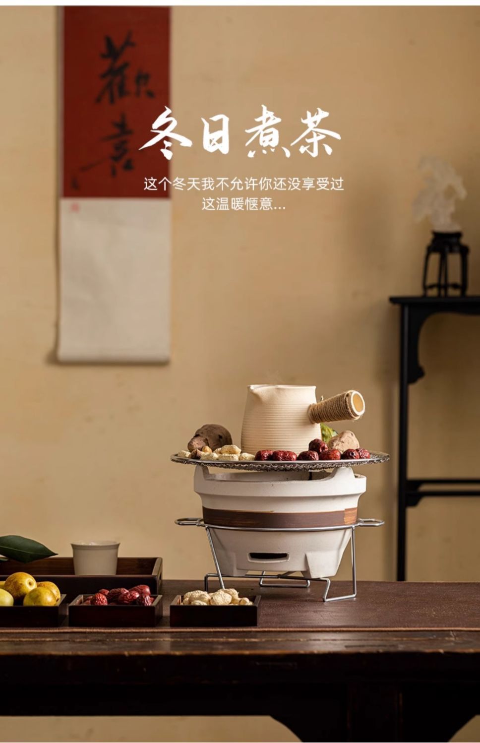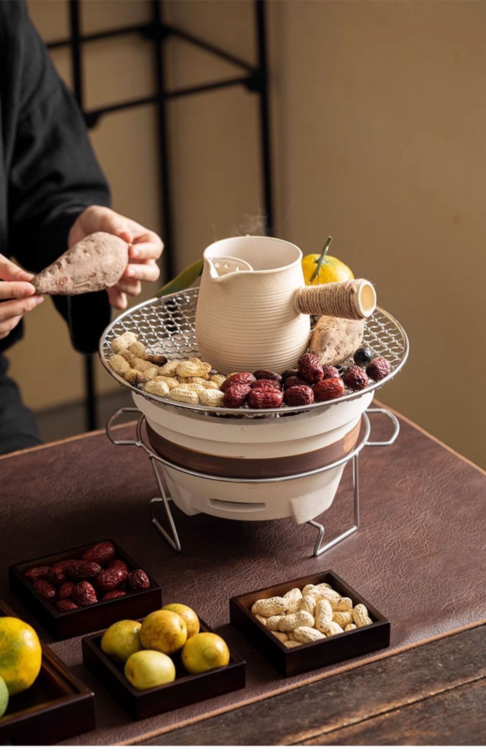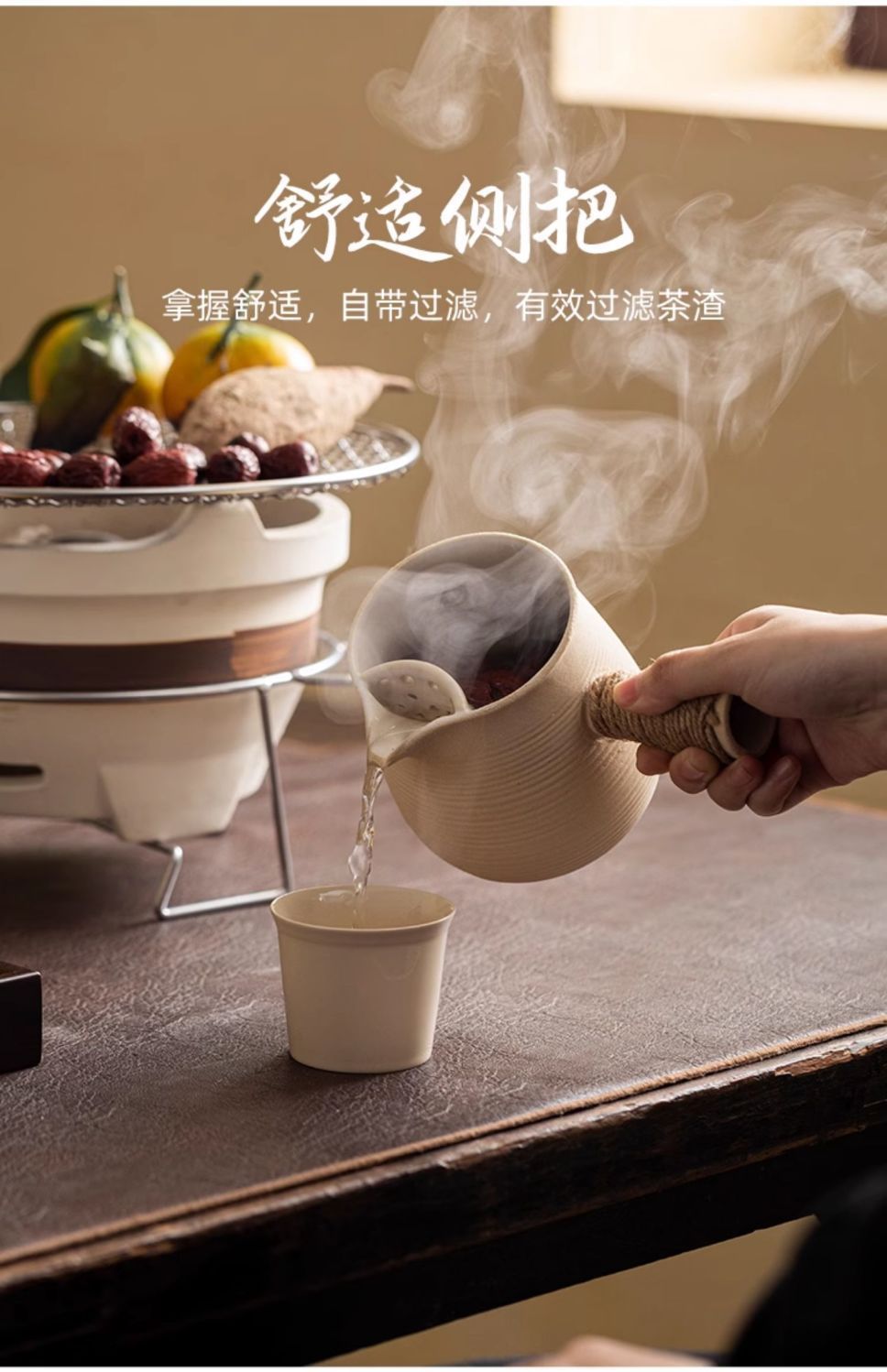 围炉煮茶烤奶茶罐罐茶家用室内中式烤炉陶壶侧把壶耐高温可干烧