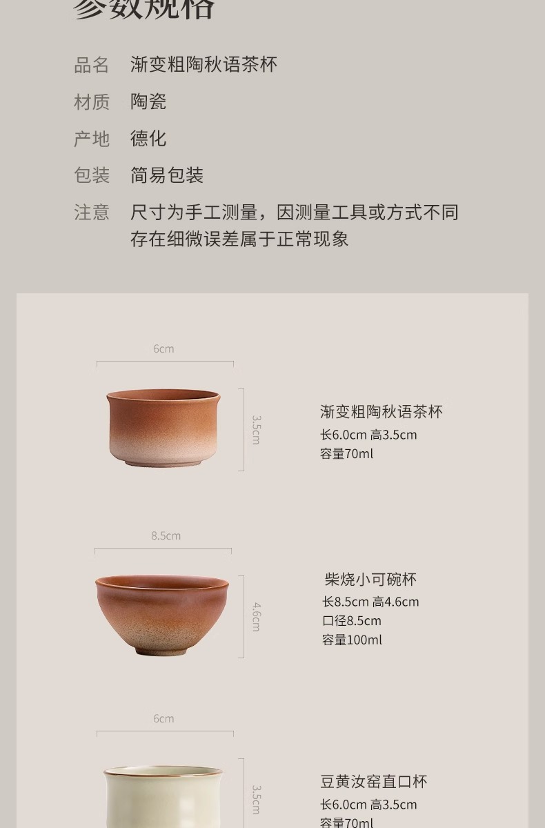 围炉煮茶配件茶杯家用炭炉泡茶杯陶瓷喝茶杯中式复古小茶杯品茗杯