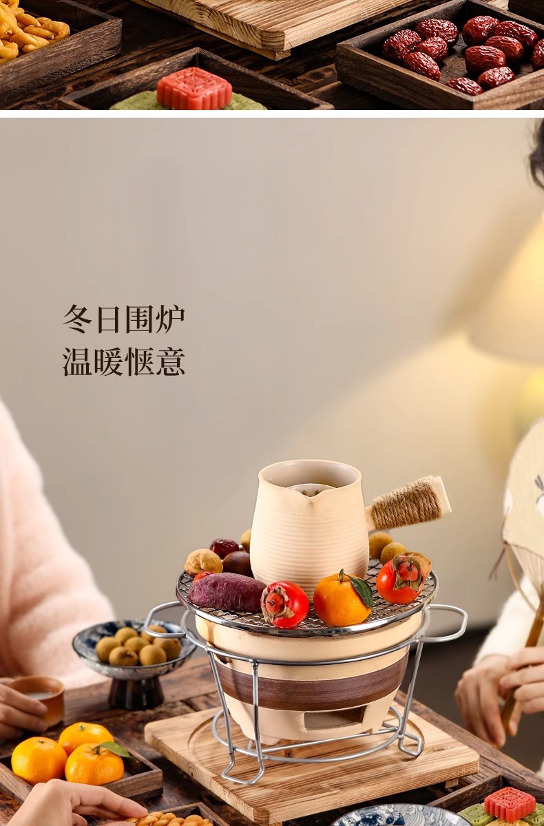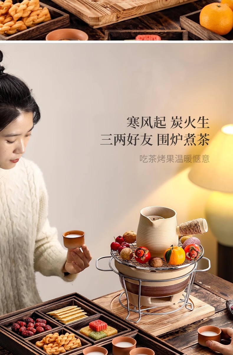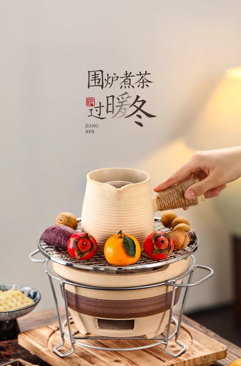 户外冬天围炉煮茶器具全套家用室内烤炉陶土炭火炉烤火全套器具