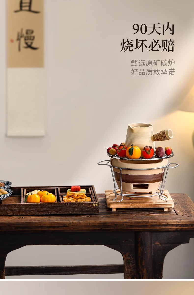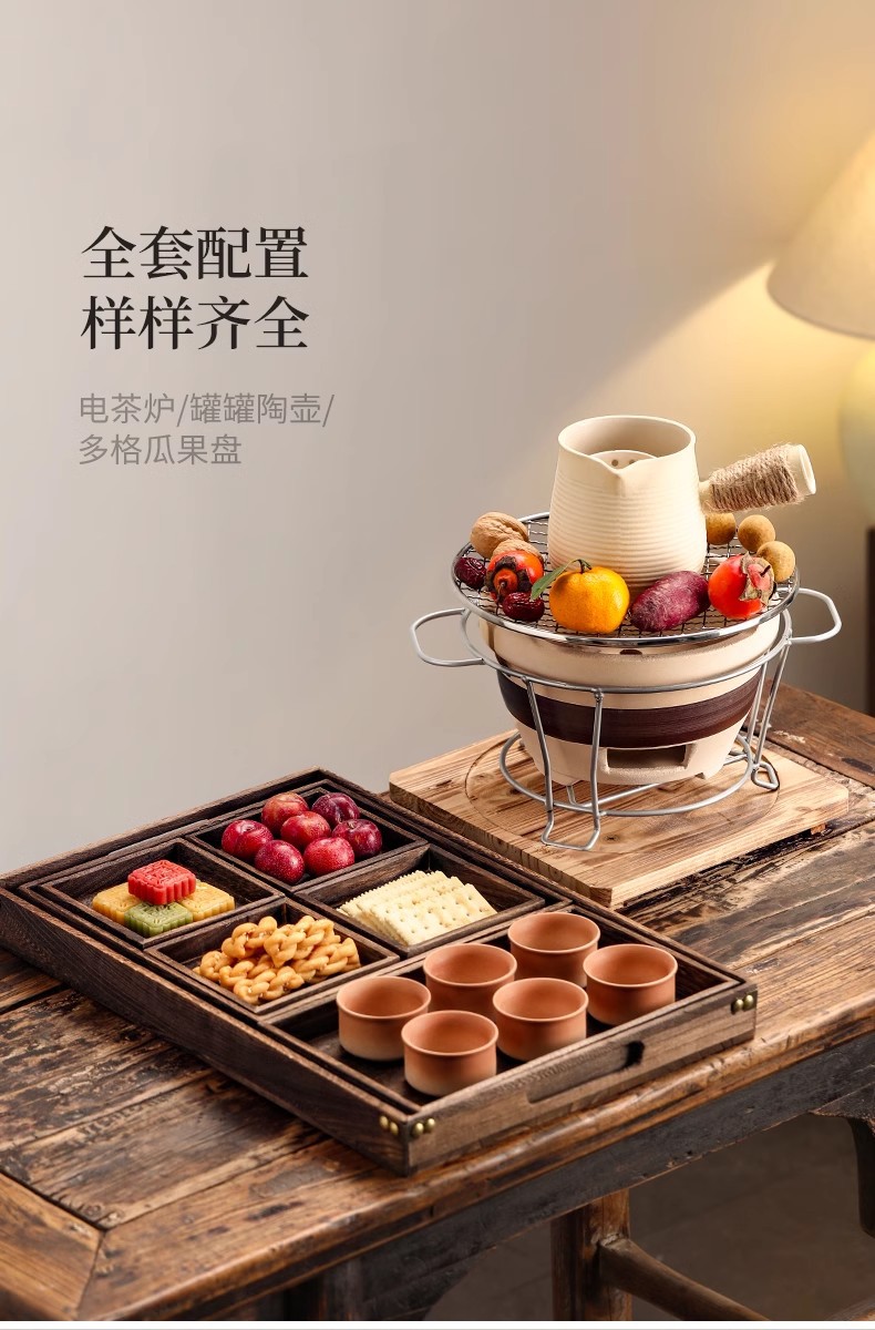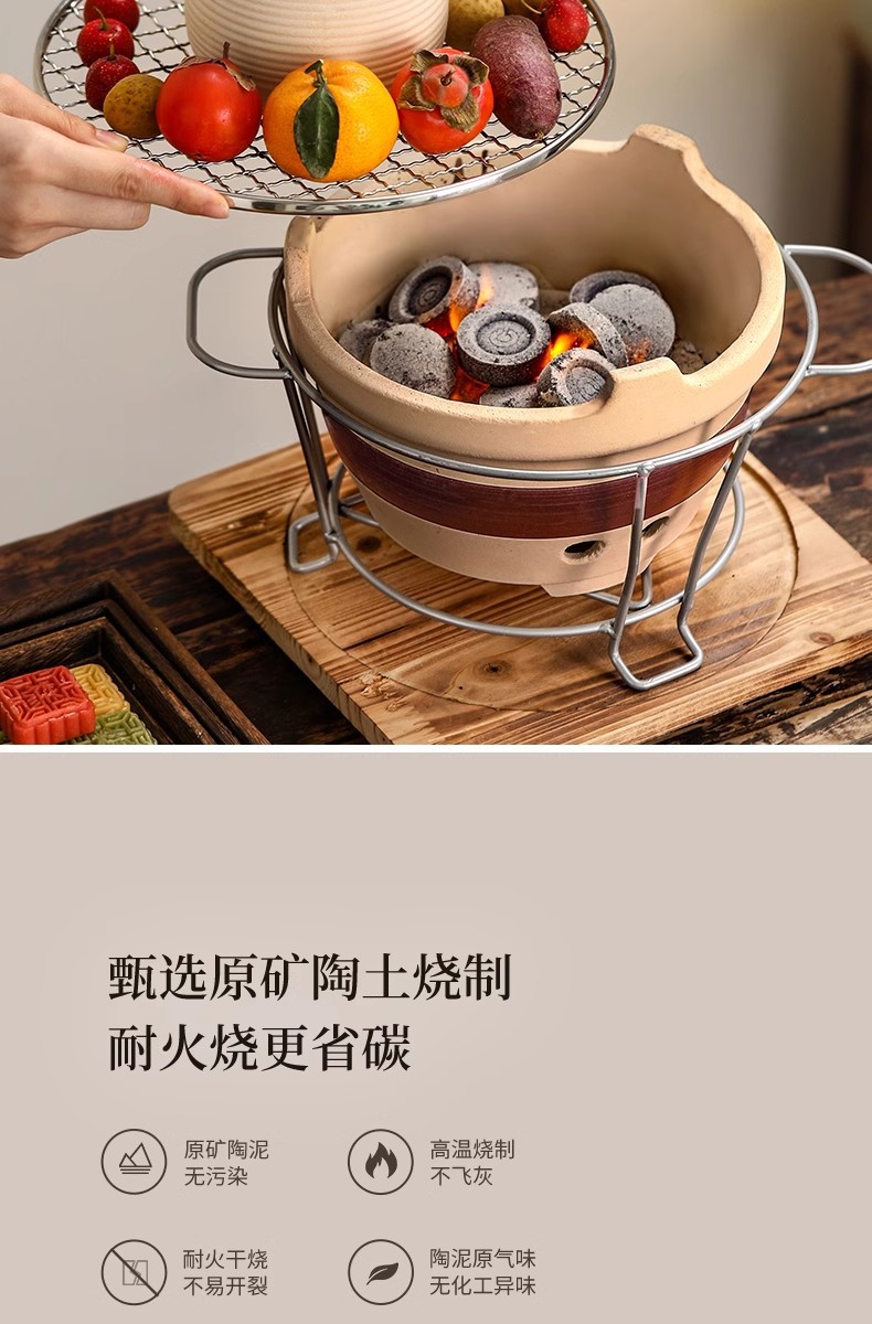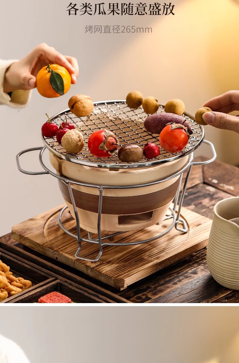 户外冬天围炉煮茶器具全套家用室内烤炉陶土炭火炉烤火全套器具