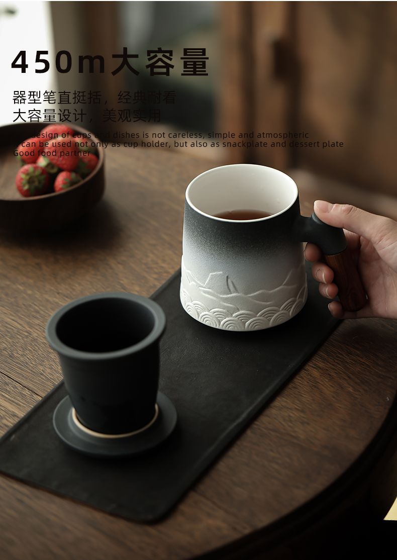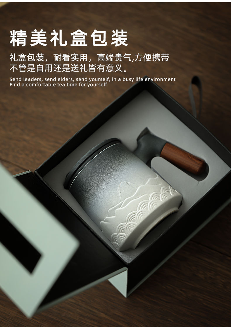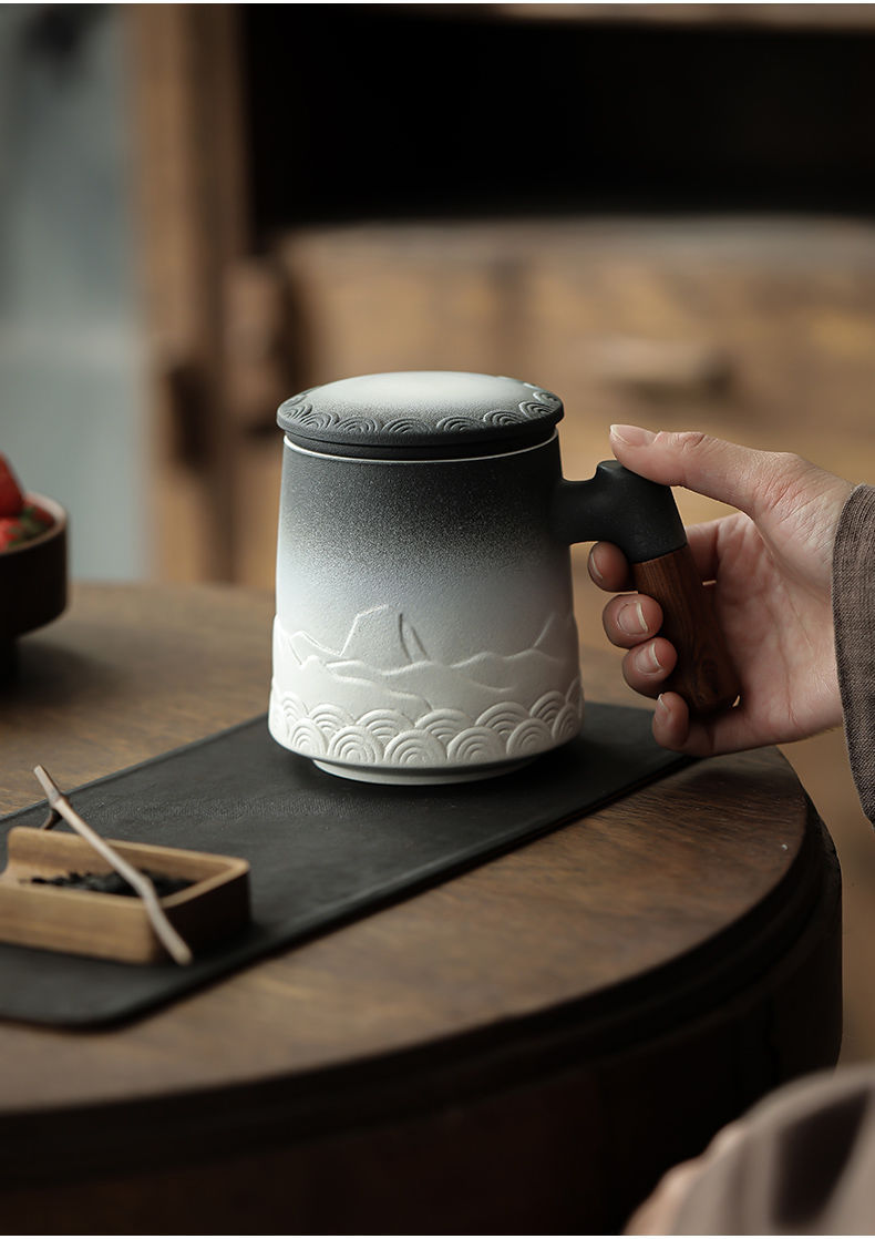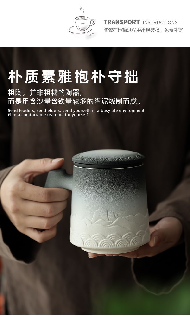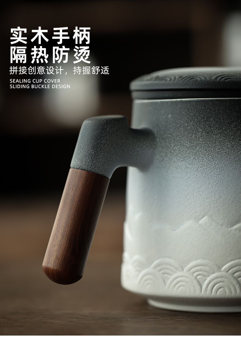 远山行陶瓷过滤泡茶杯马克杯茶水分离茶杯办公带盖个人专用杯批发