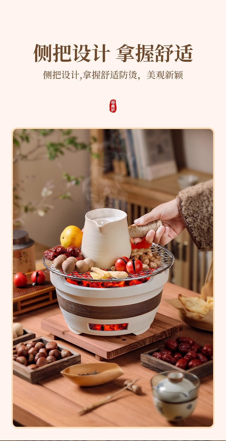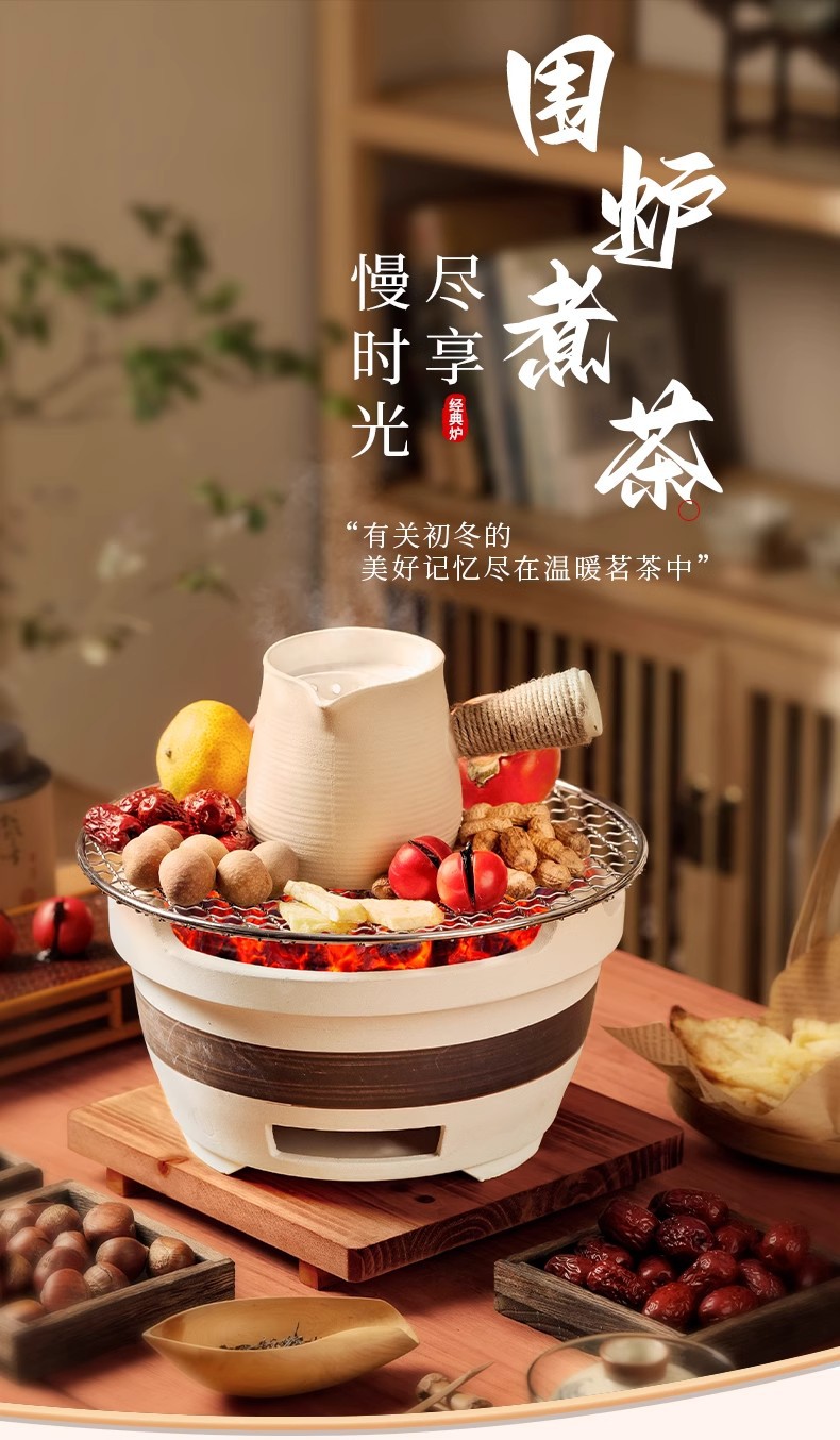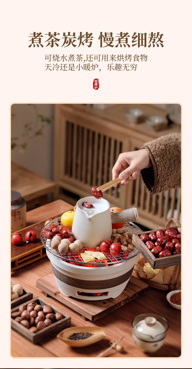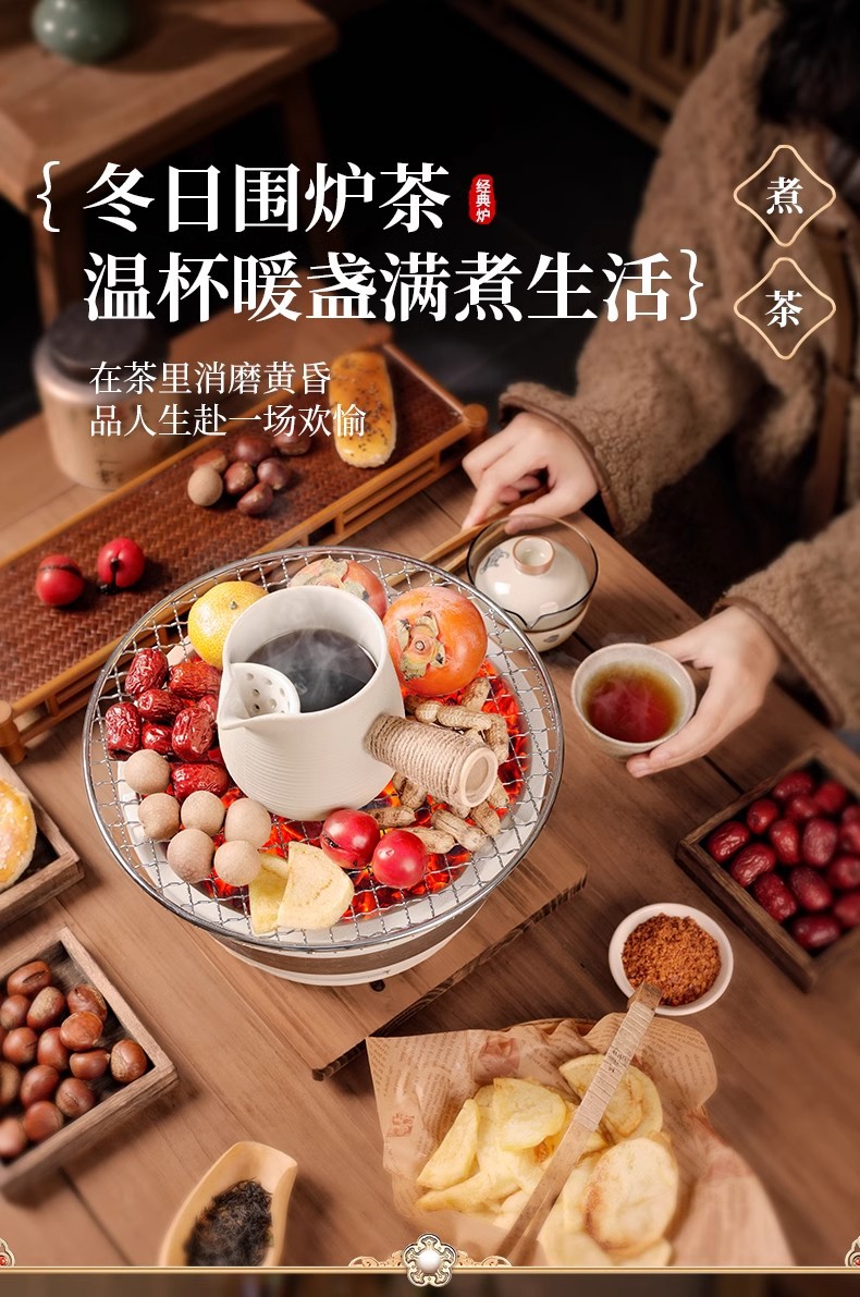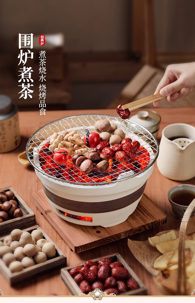 围炉煮茶室内家用户外烧烤炉陶土炭火炉烤火罐罐茶壶器具全套套装