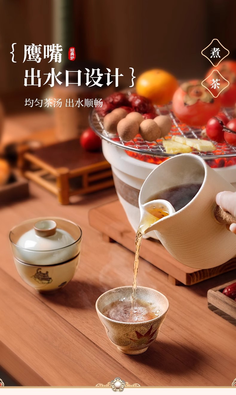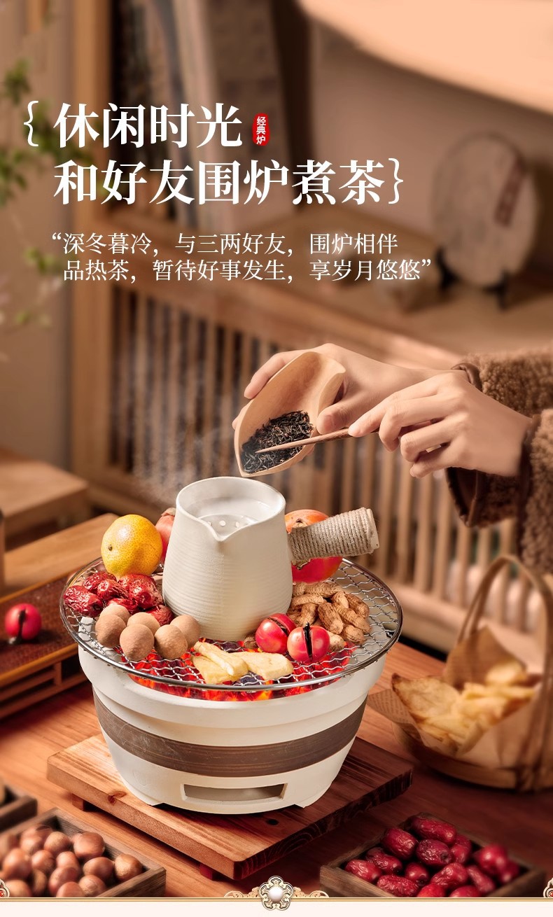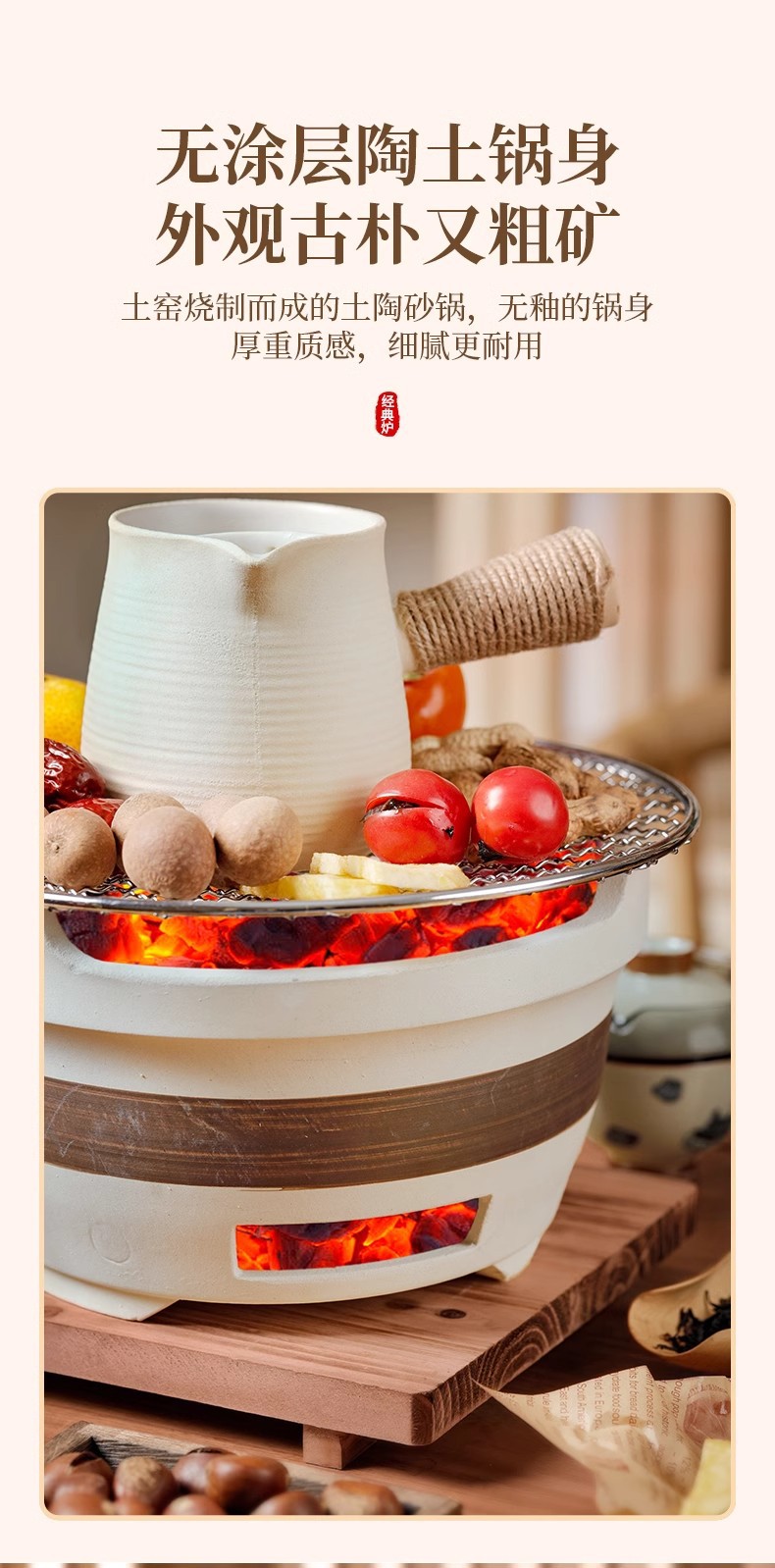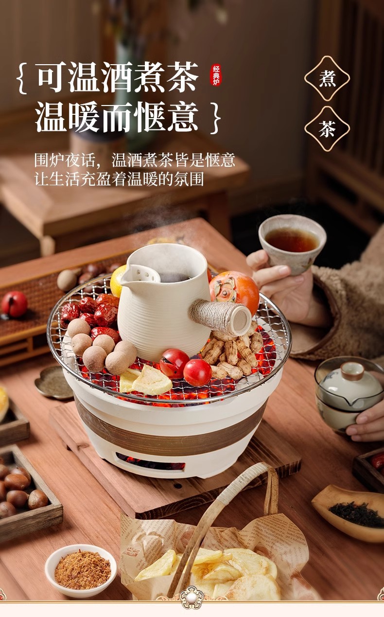 围炉煮茶室内家用户外烧烤炉陶土炭火炉烤火罐罐茶壶器具全套套装