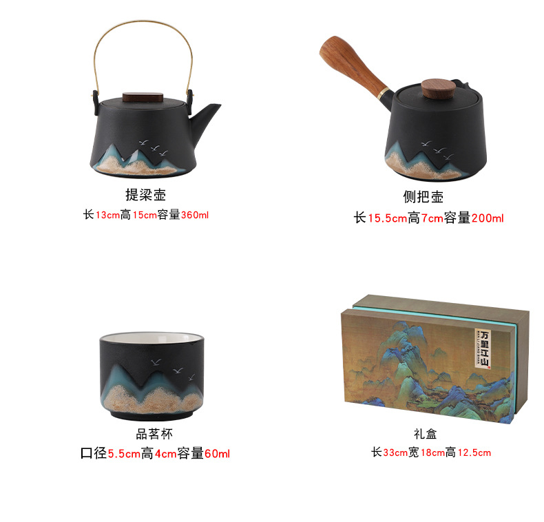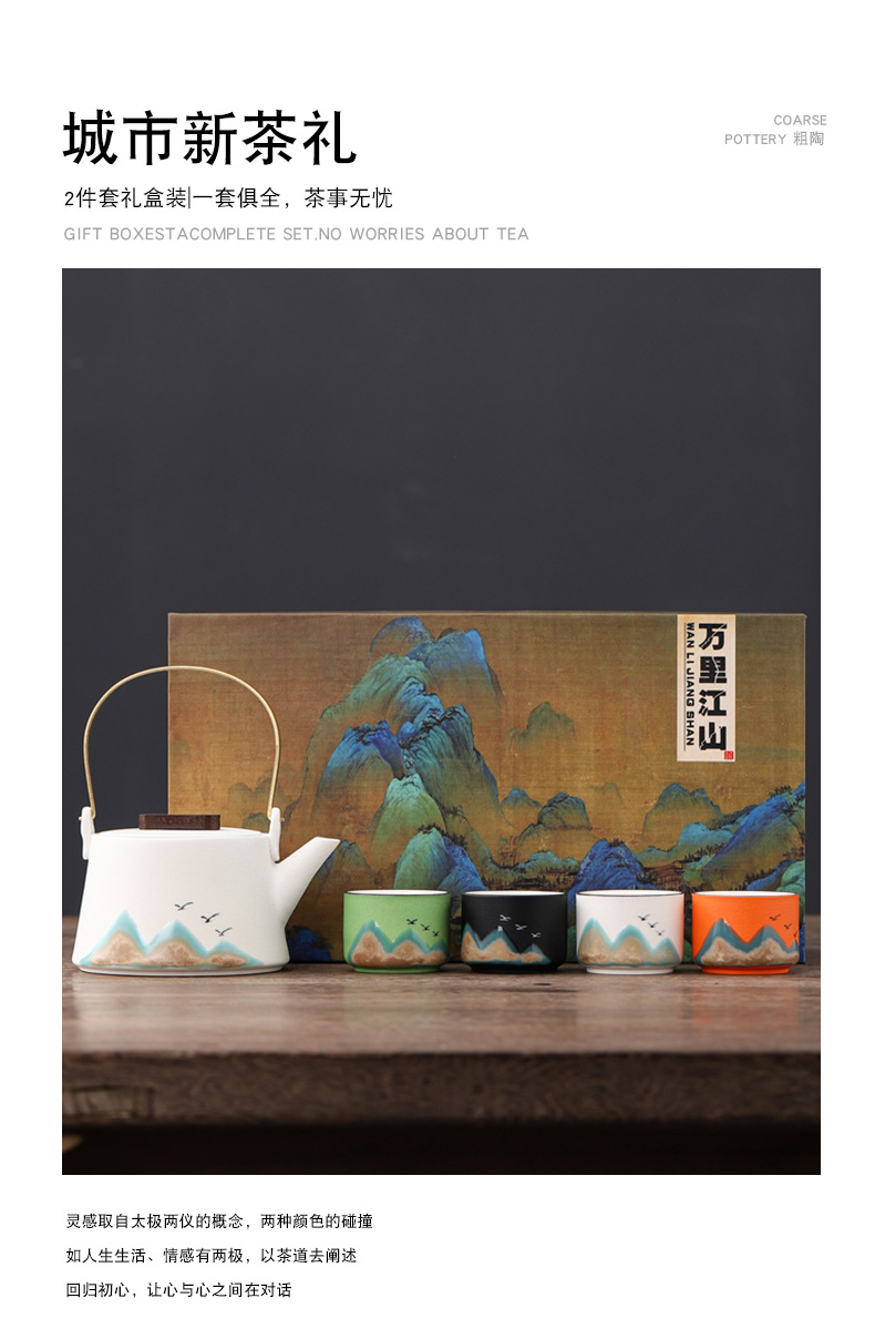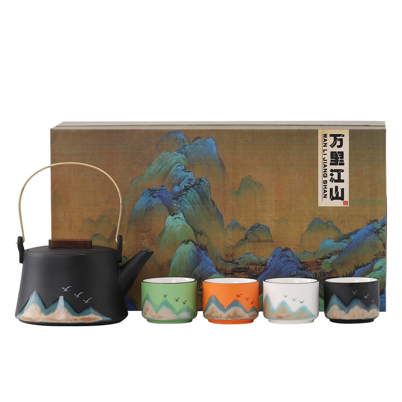 故宫文创国潮提梁壶侧把壶茶具万里江山一壶四杯商务庆会议伴手礼