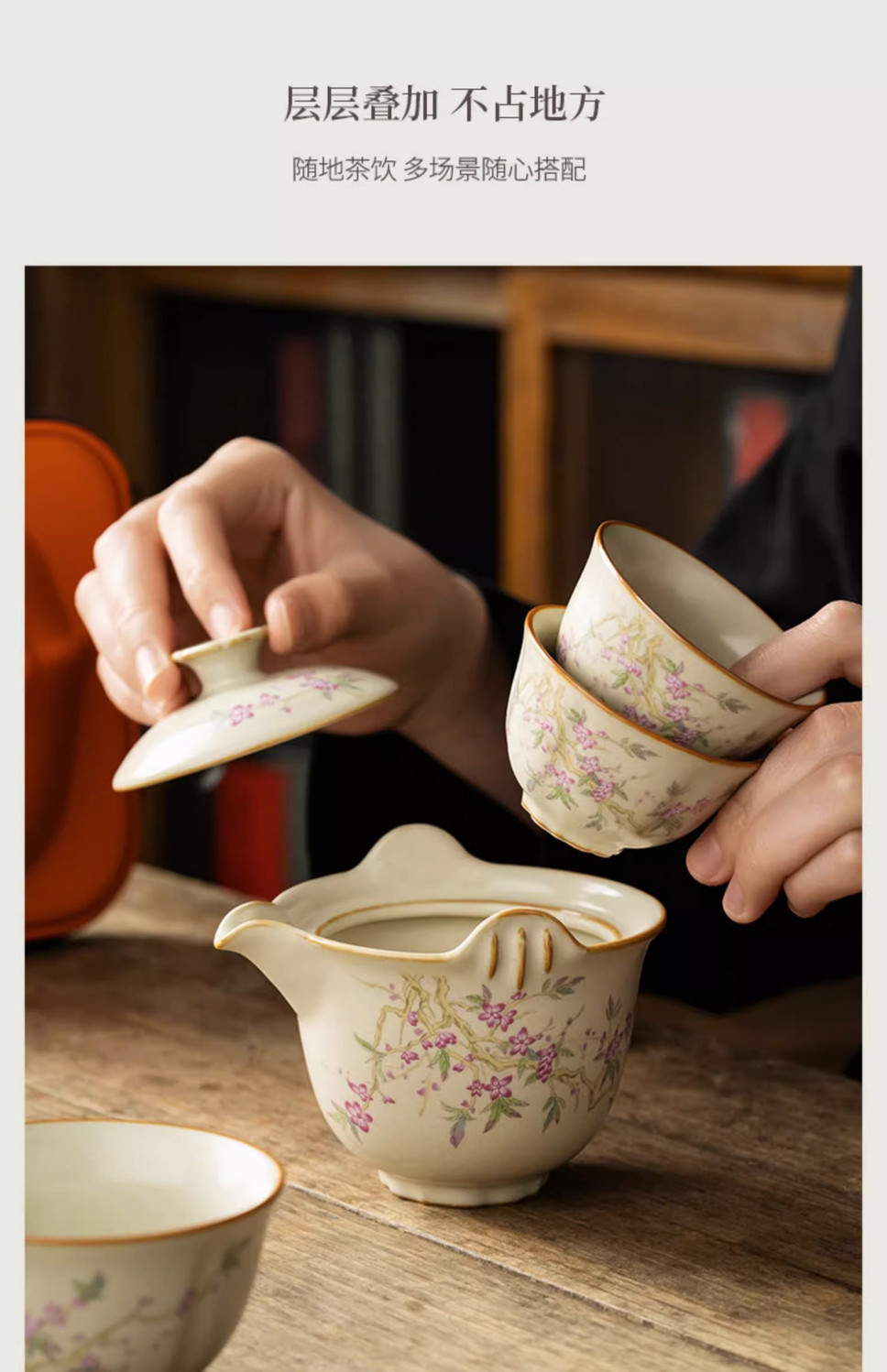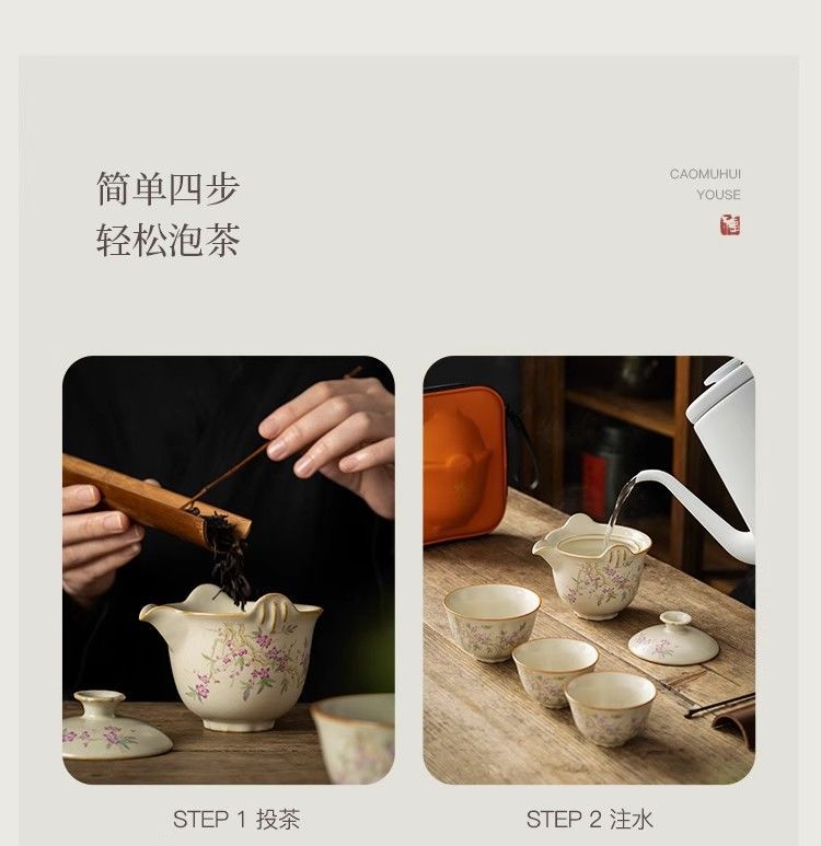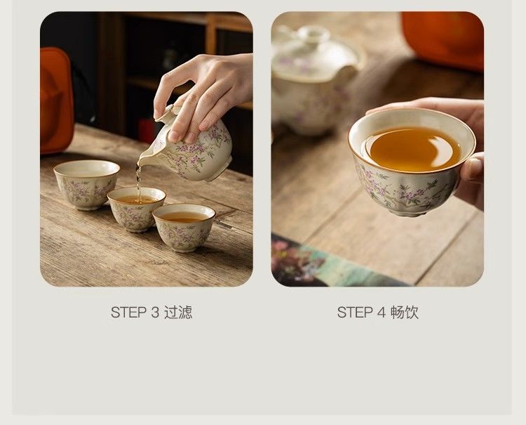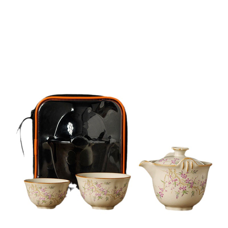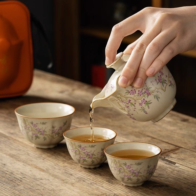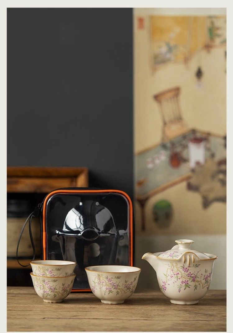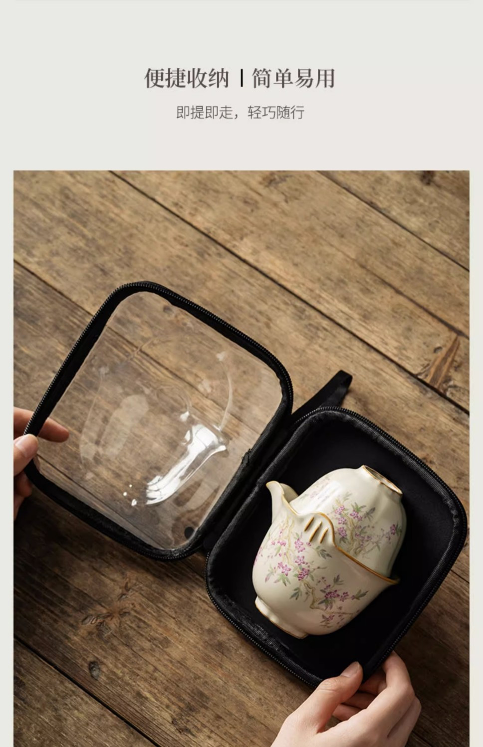 汝窑旅行茶具套装快客杯一壶二杯陶瓷户外喝茶装备便携茶具收纳包