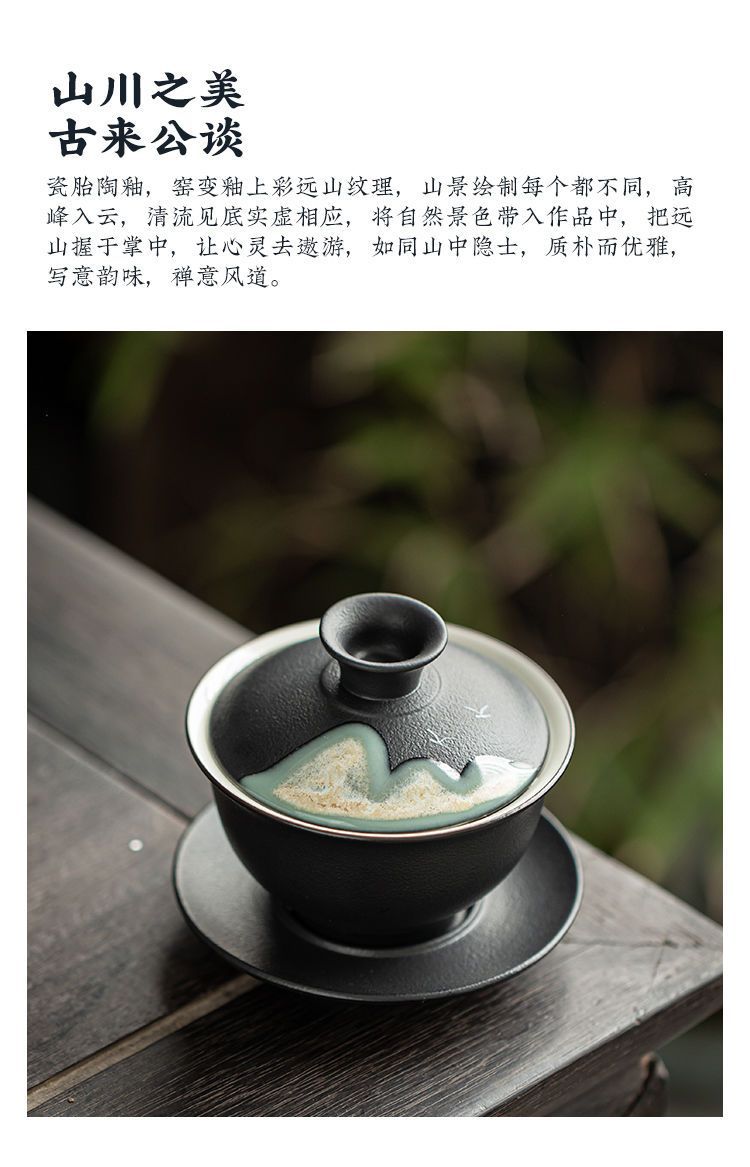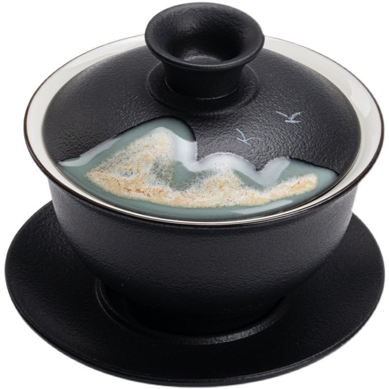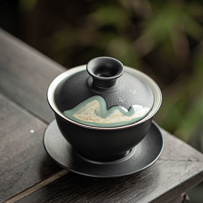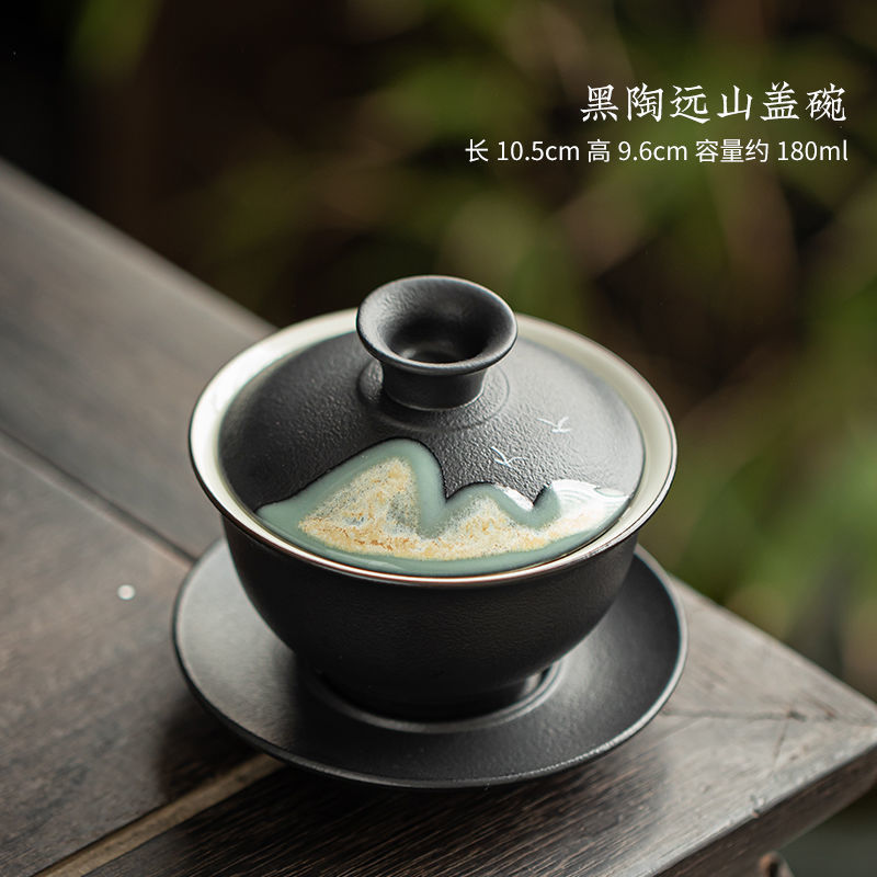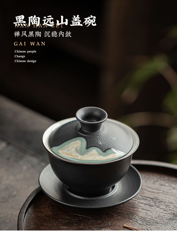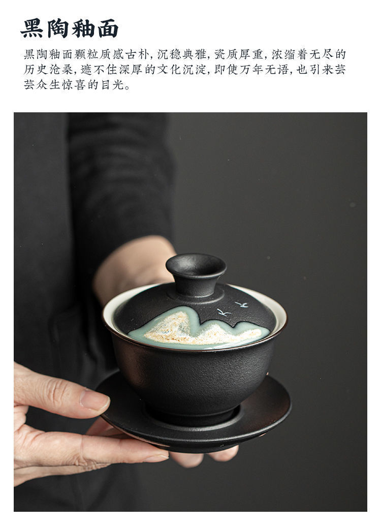 黑陶纯手绘三才盖碗批发防烫手敬茶碗家用复古陶瓷功夫茶具泡茶碗