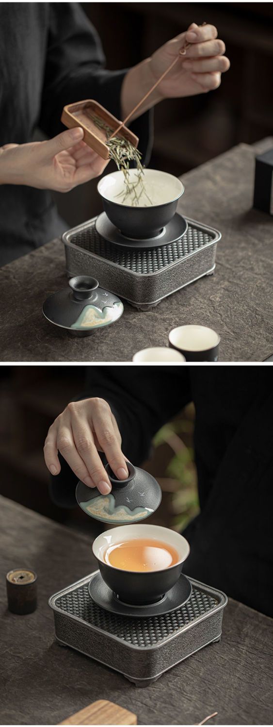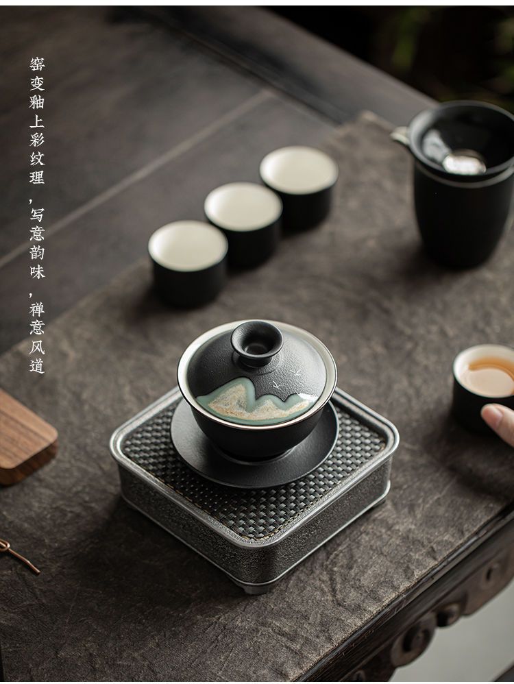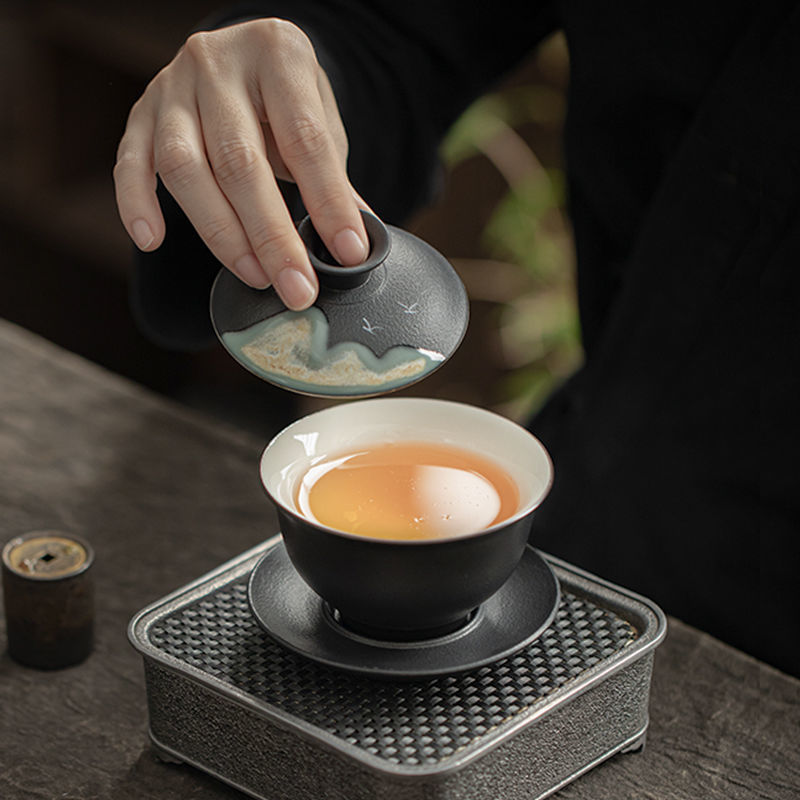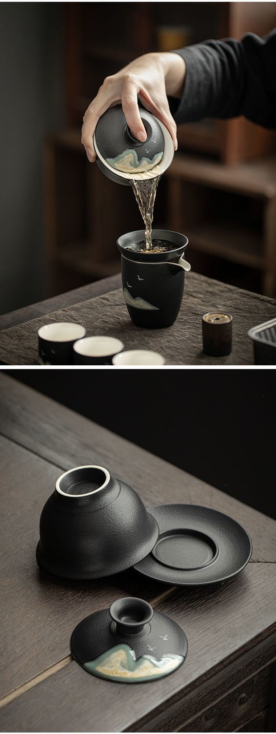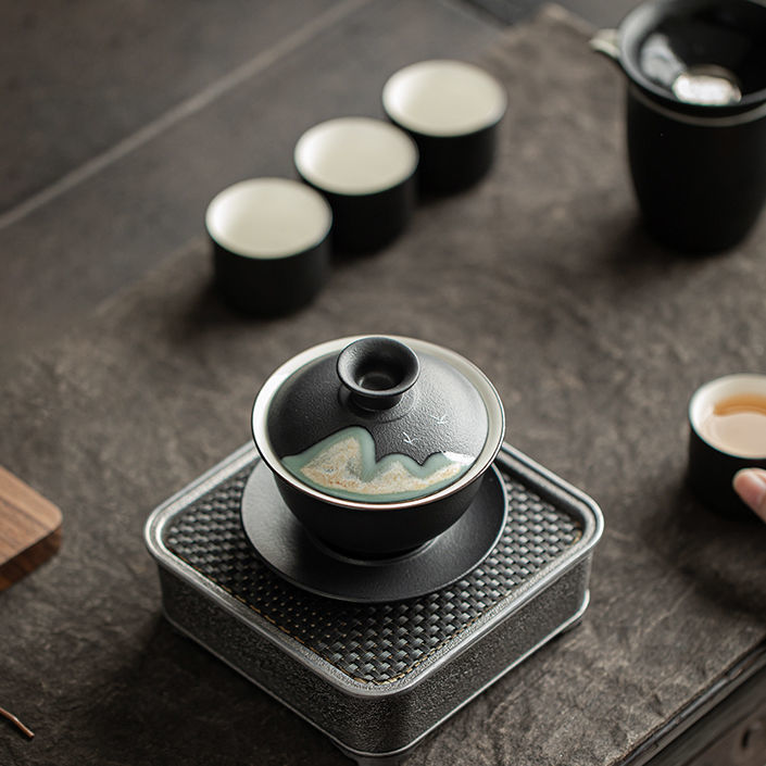 黑陶纯手绘三才盖碗批发防烫手敬茶碗家用复古陶瓷功夫茶具泡茶碗