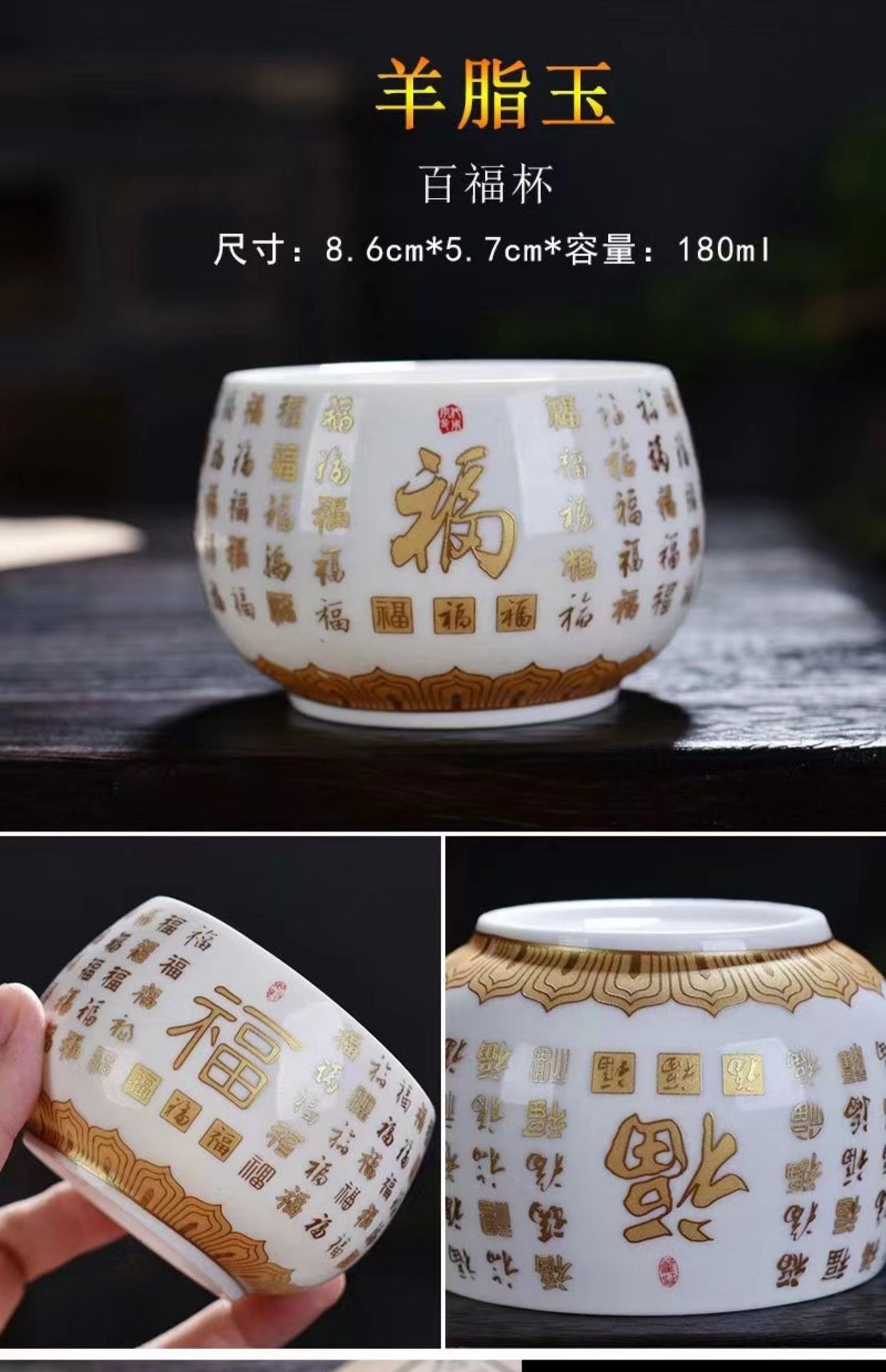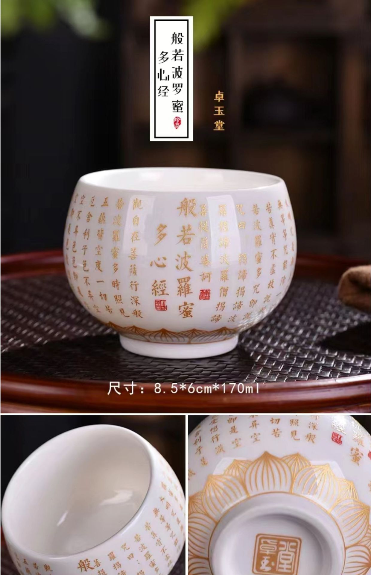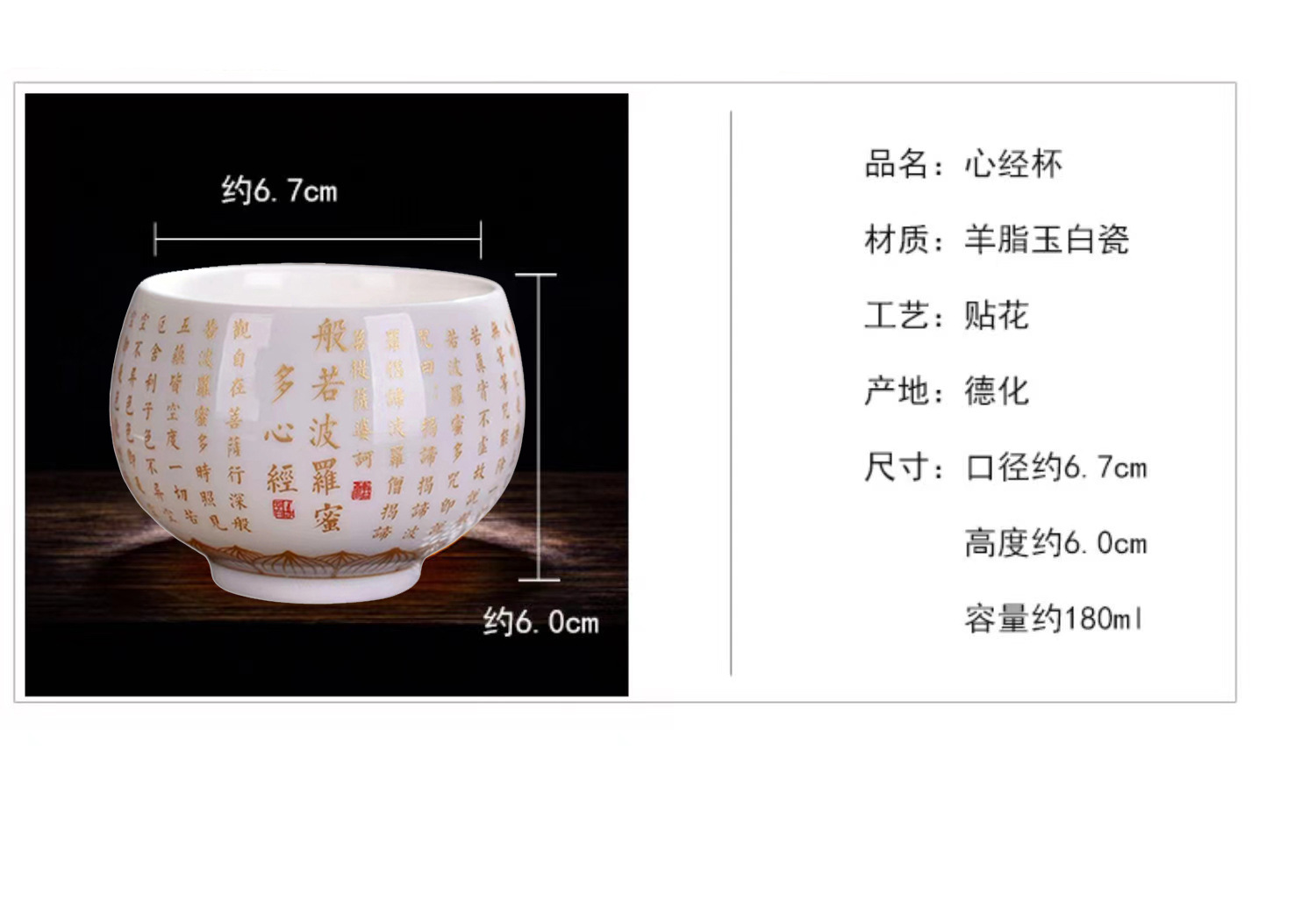 羊脂玉白瓷主人杯心经杯个人杯中式陶瓷品茗杯喝茶水杯大号茶碗盏