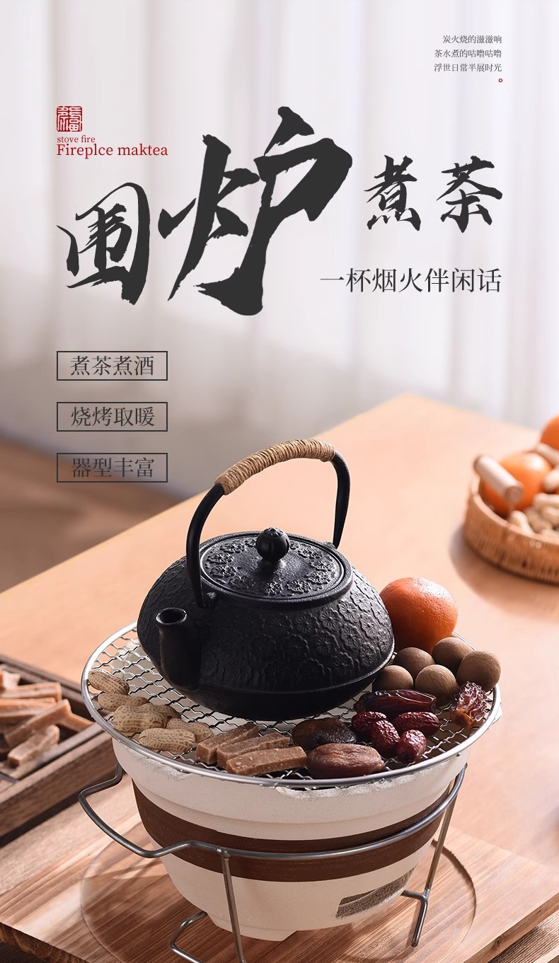 围炉煮茶烤火炉套装器具全套家用室内炭炉烧烤炉碳炉户外煮茶炉子