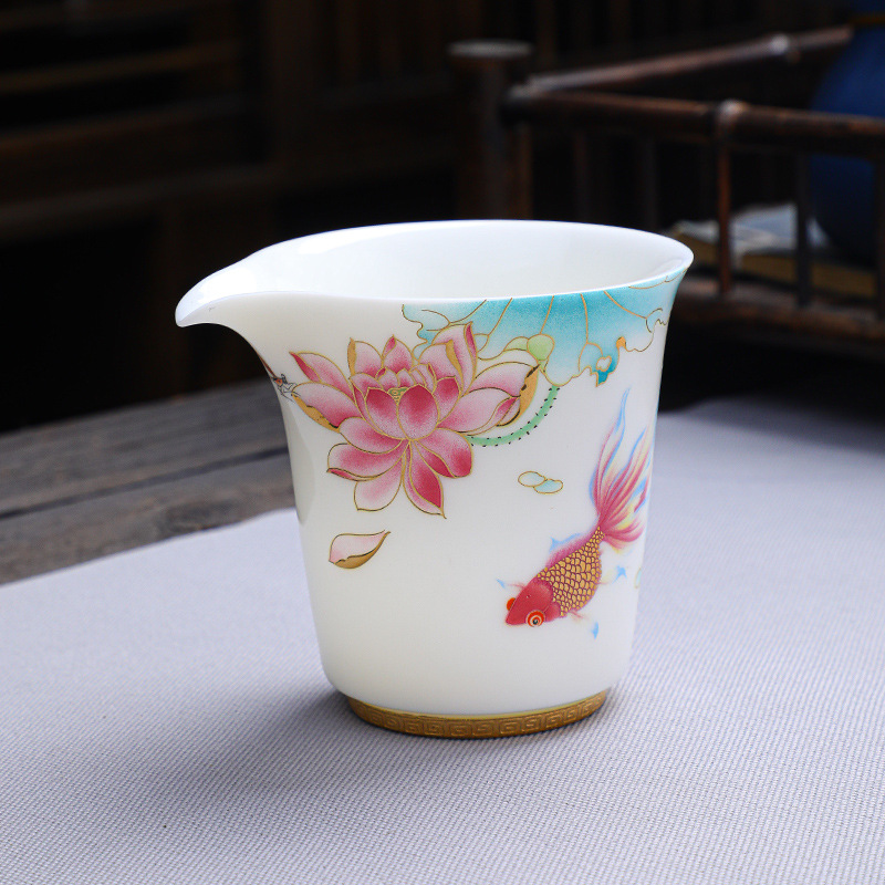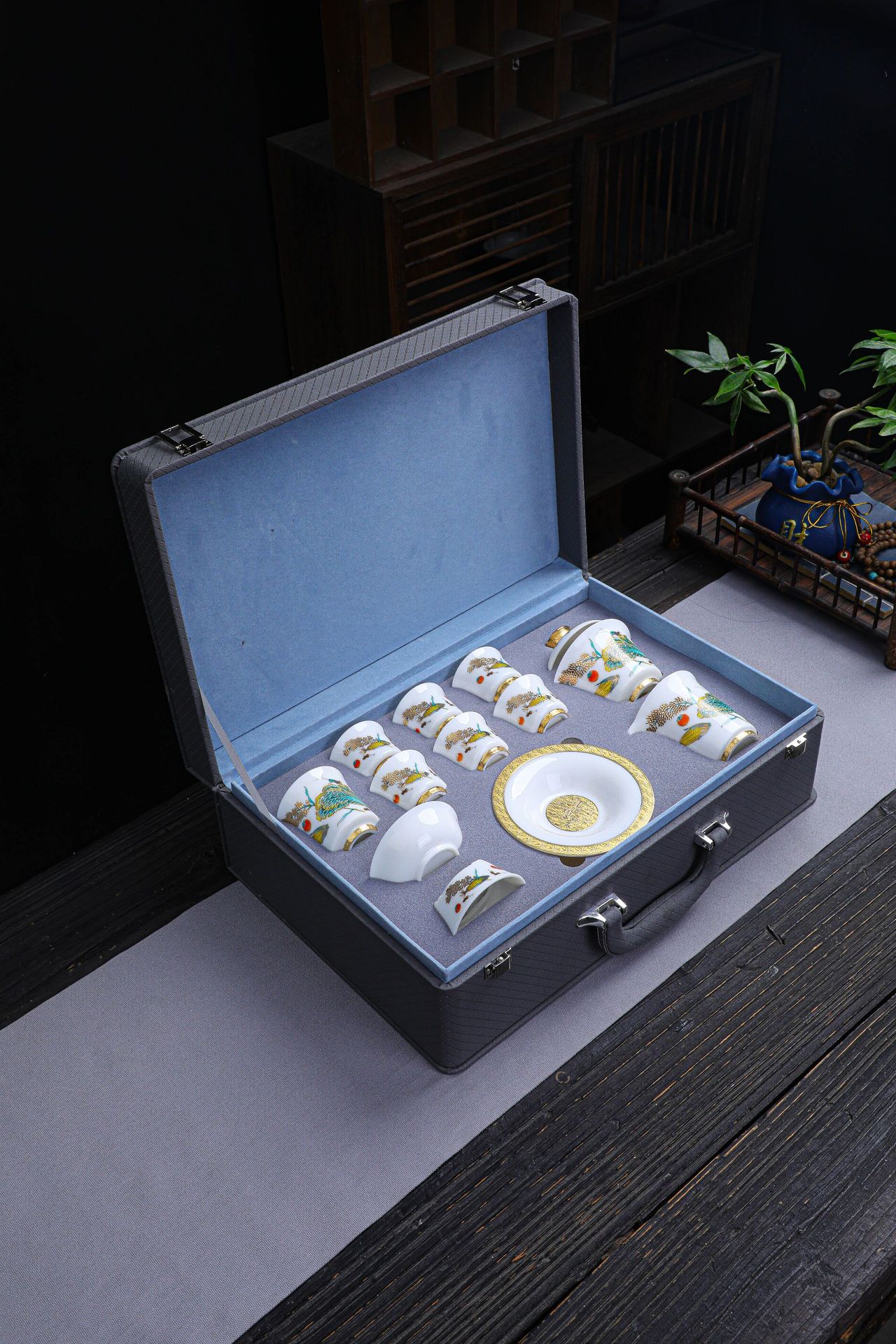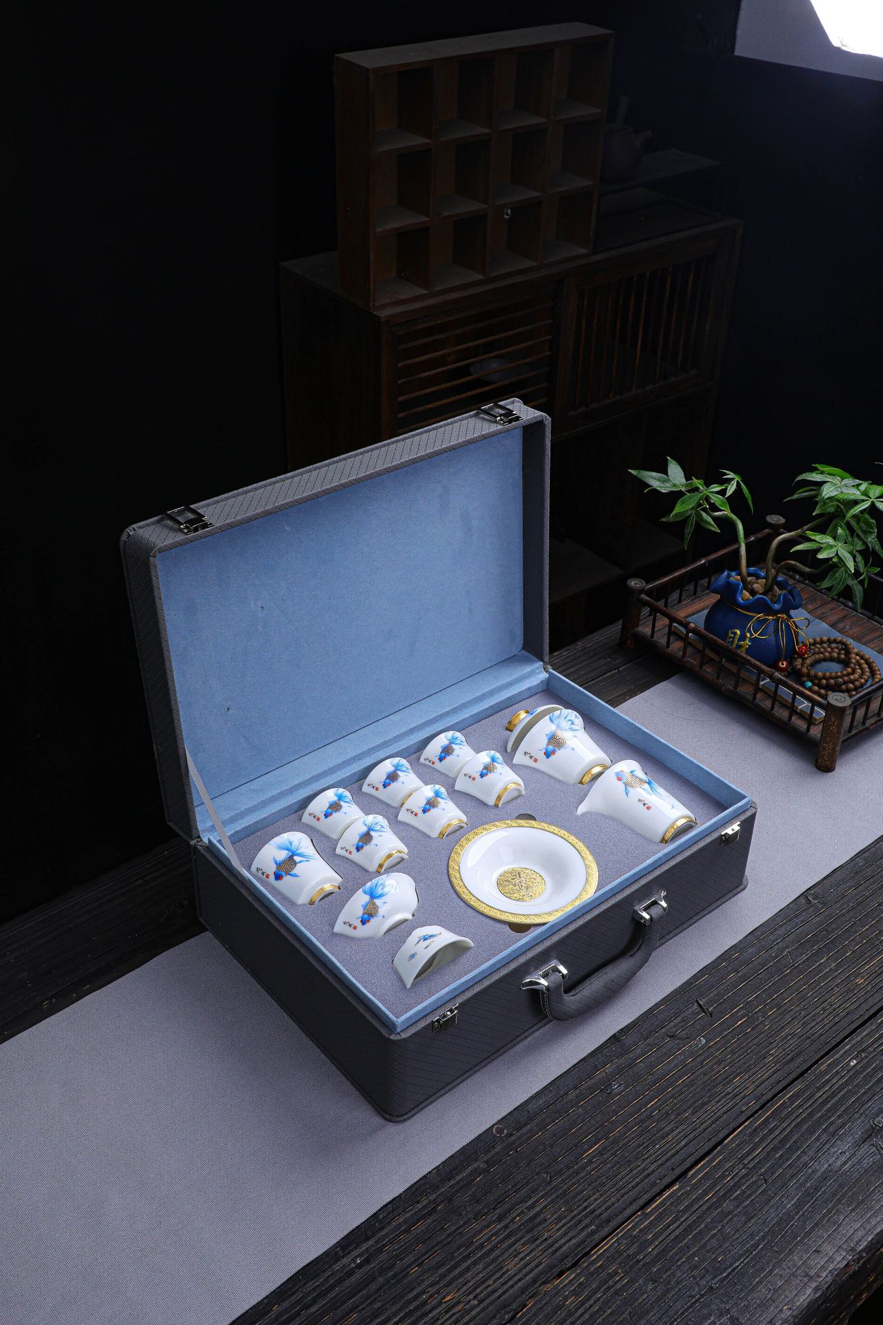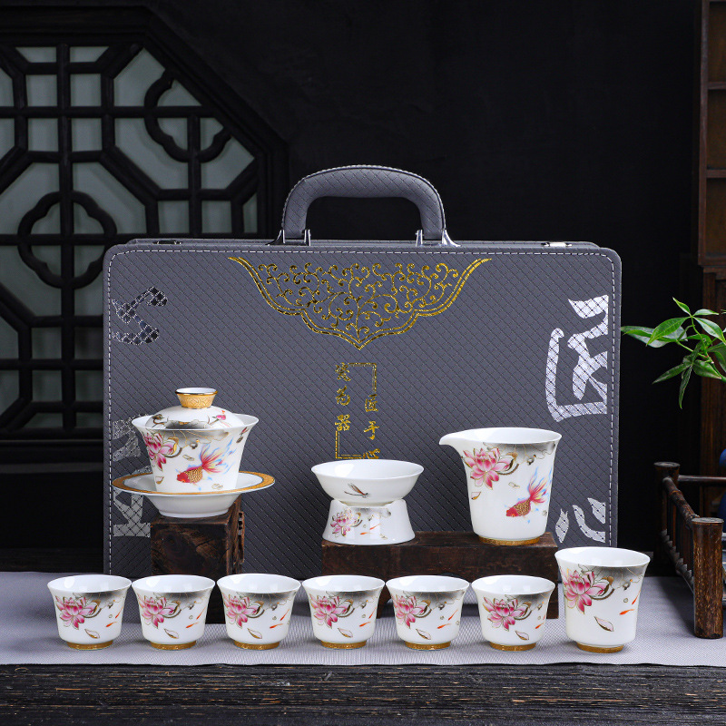 畅发鸿运莲年高端羊脂玉功夫茶具套装 盖碗茶杯送礼家用茶具全套