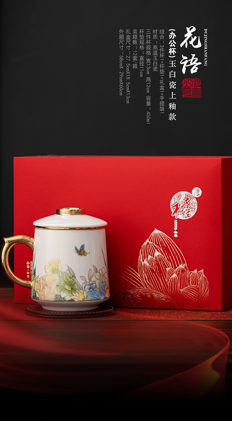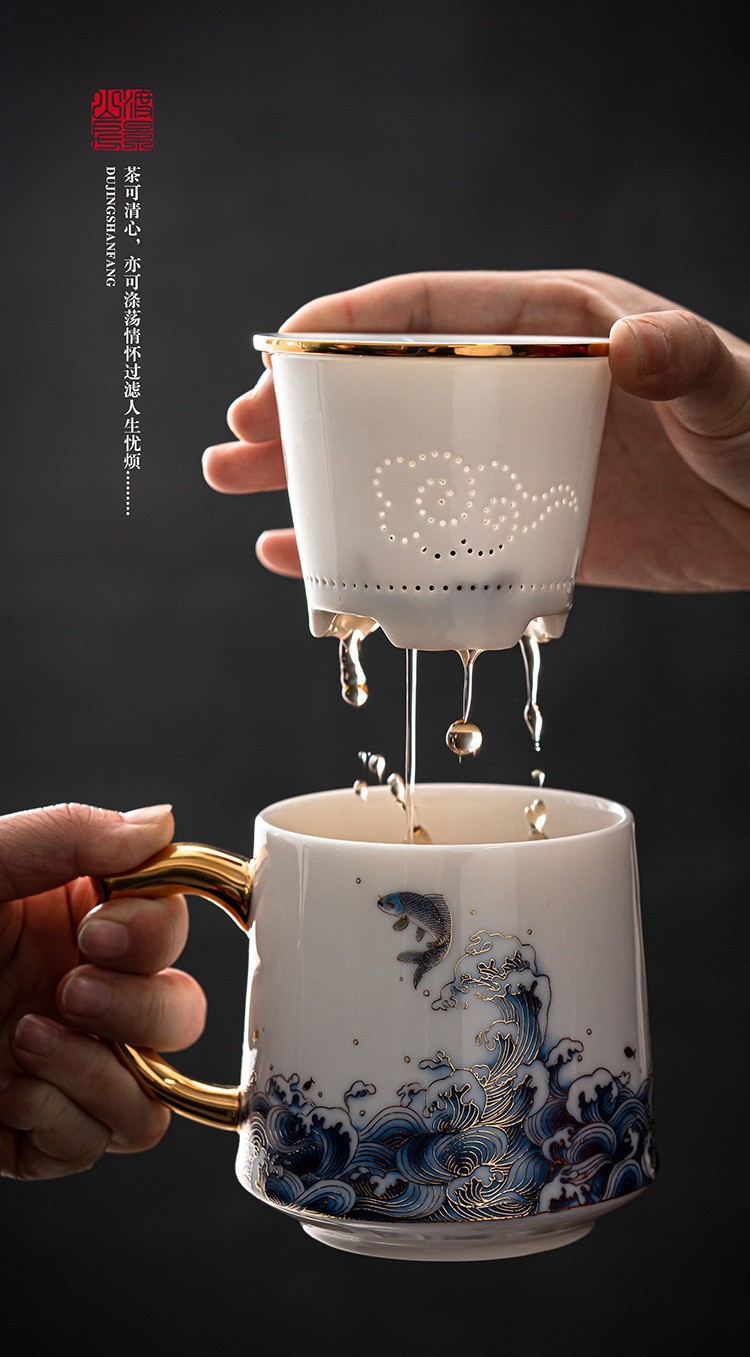 德化白瓷手工高档老板茶杯带盖过滤泡茶羊脂玉办公杯陶瓷个人水杯