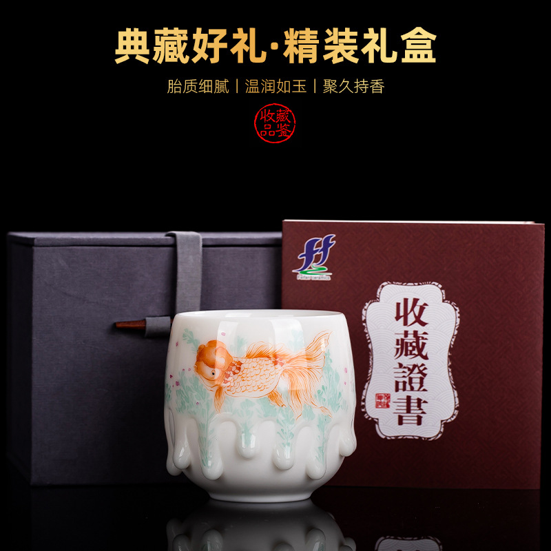 徐福坤大师玉瓷杯瓷白透亮杯身流釉德化羊脂玉瓷白瓷茶杯品茗杯